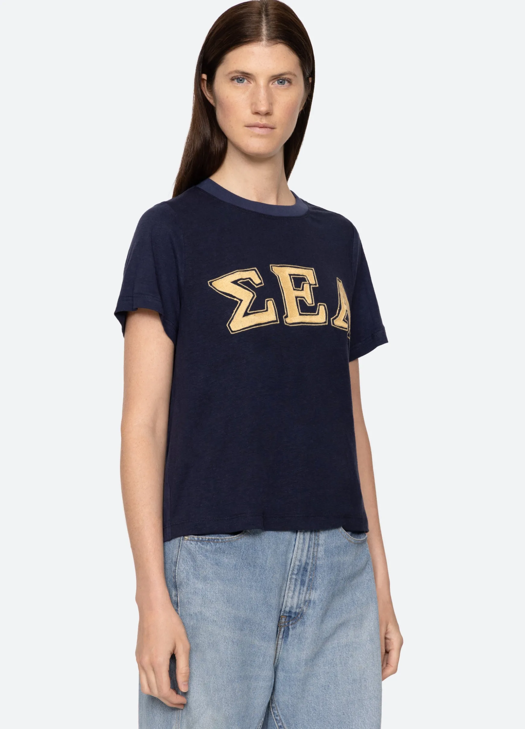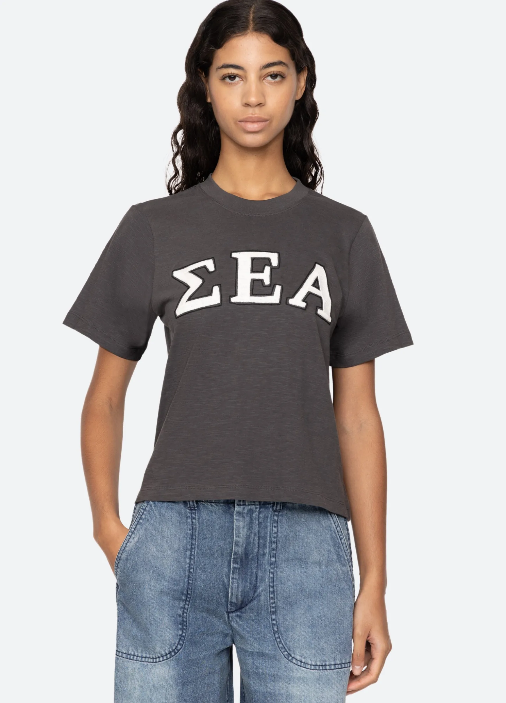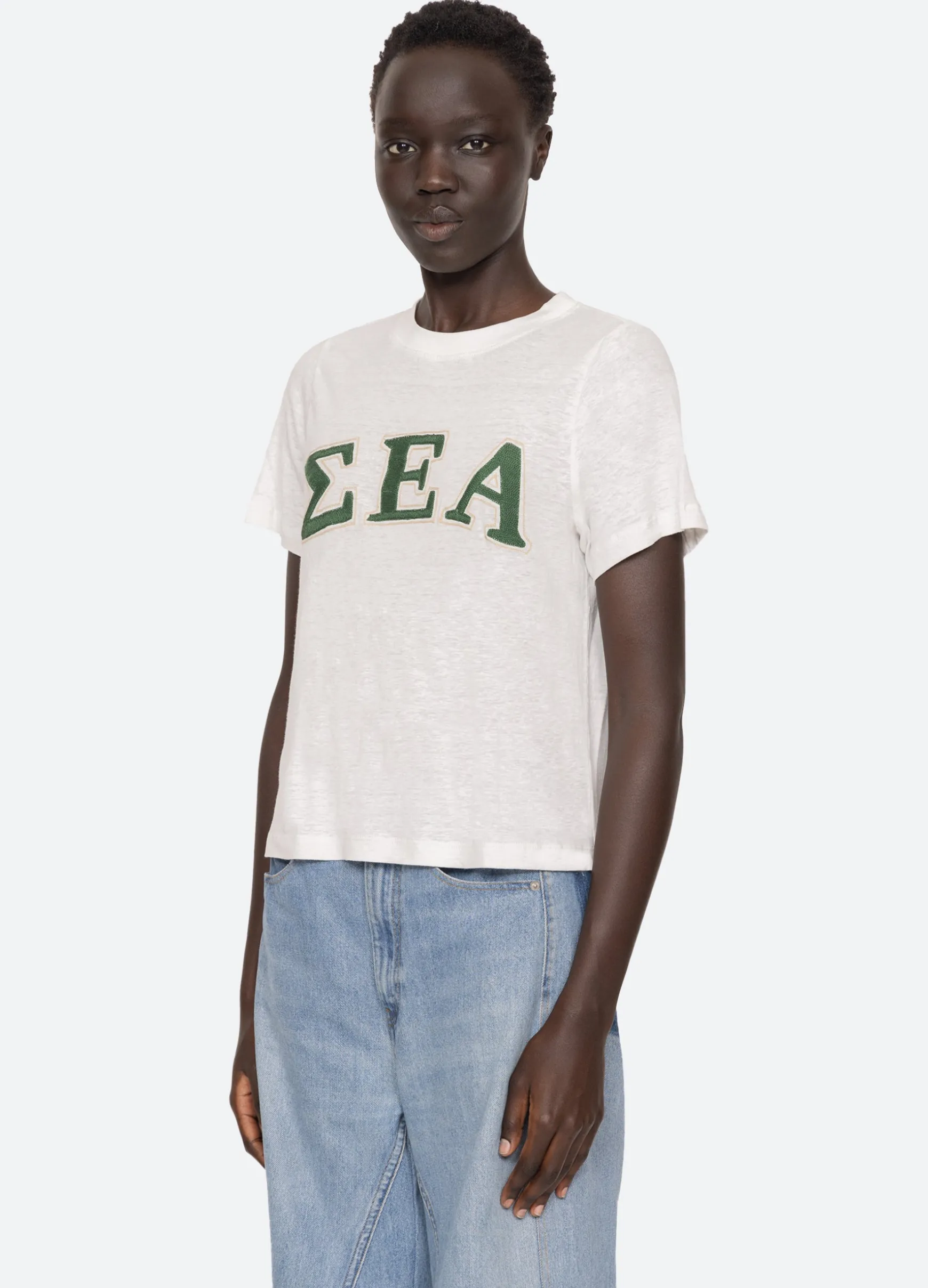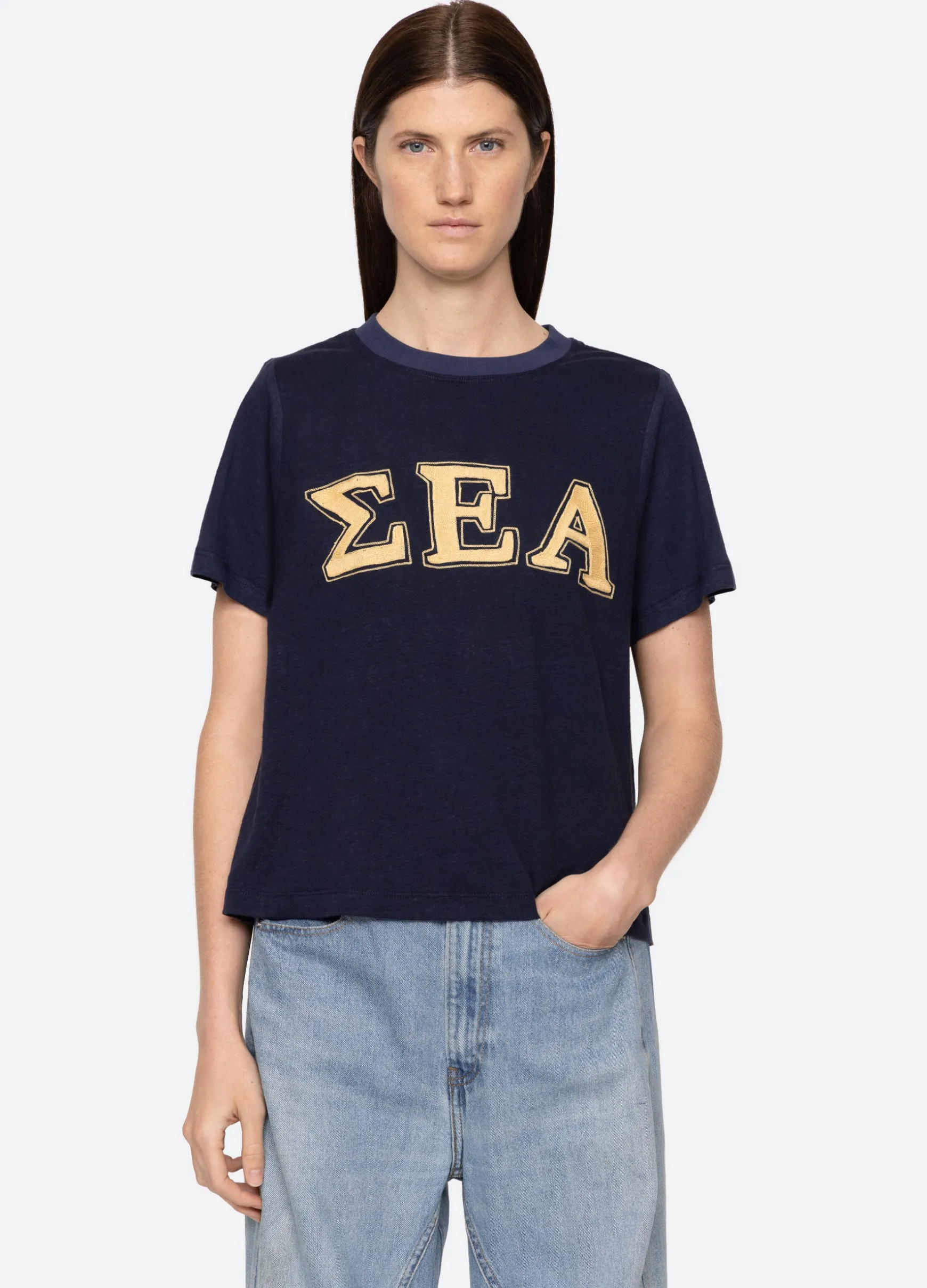 The Adonis t-shirt features an embroidered ‘Sea’ logo in Greek letters. Designed for an easy, relaxed fit.