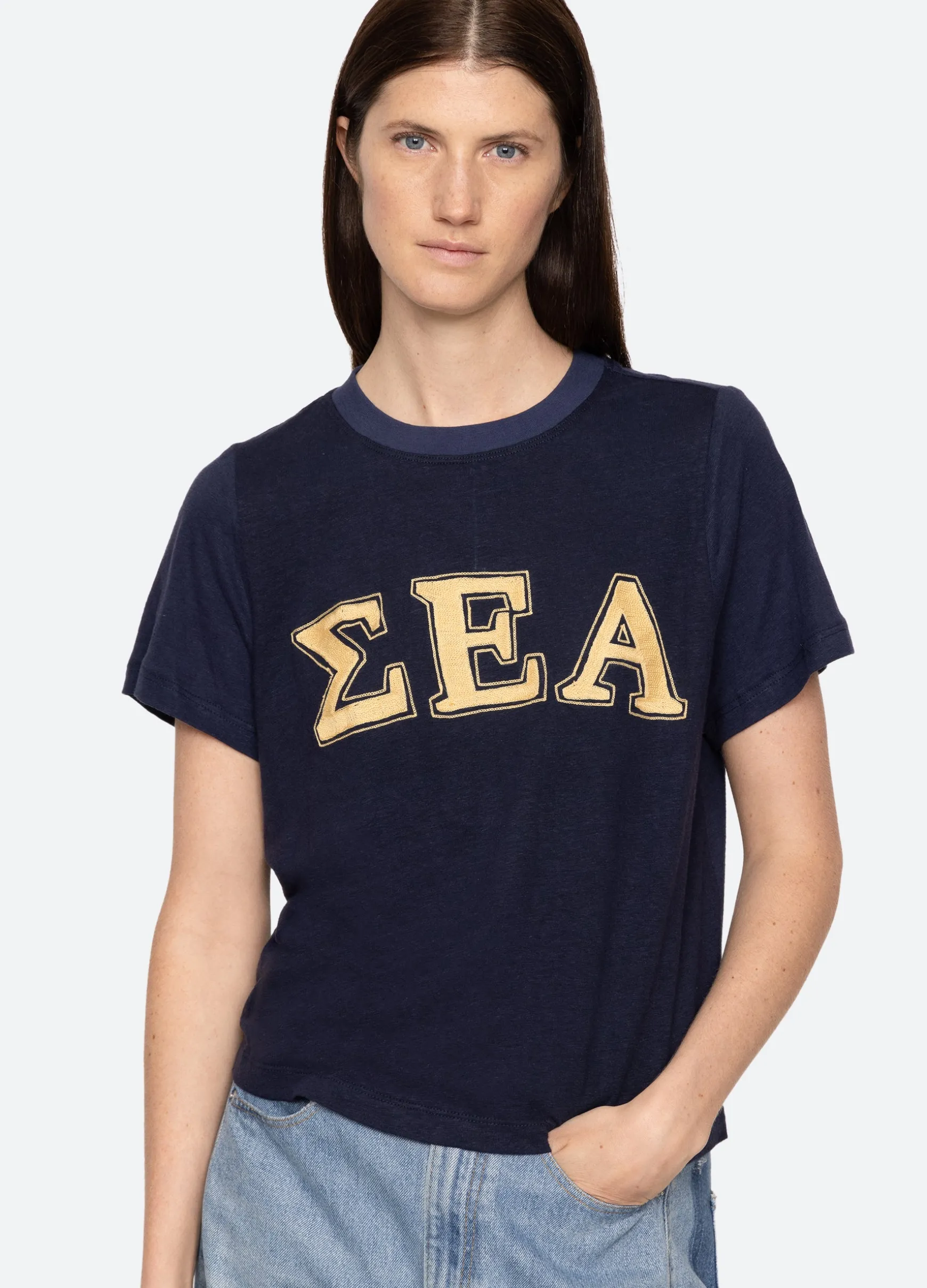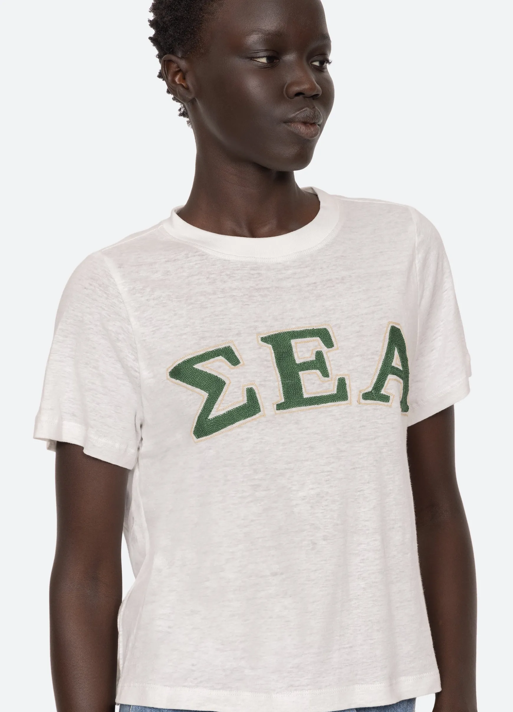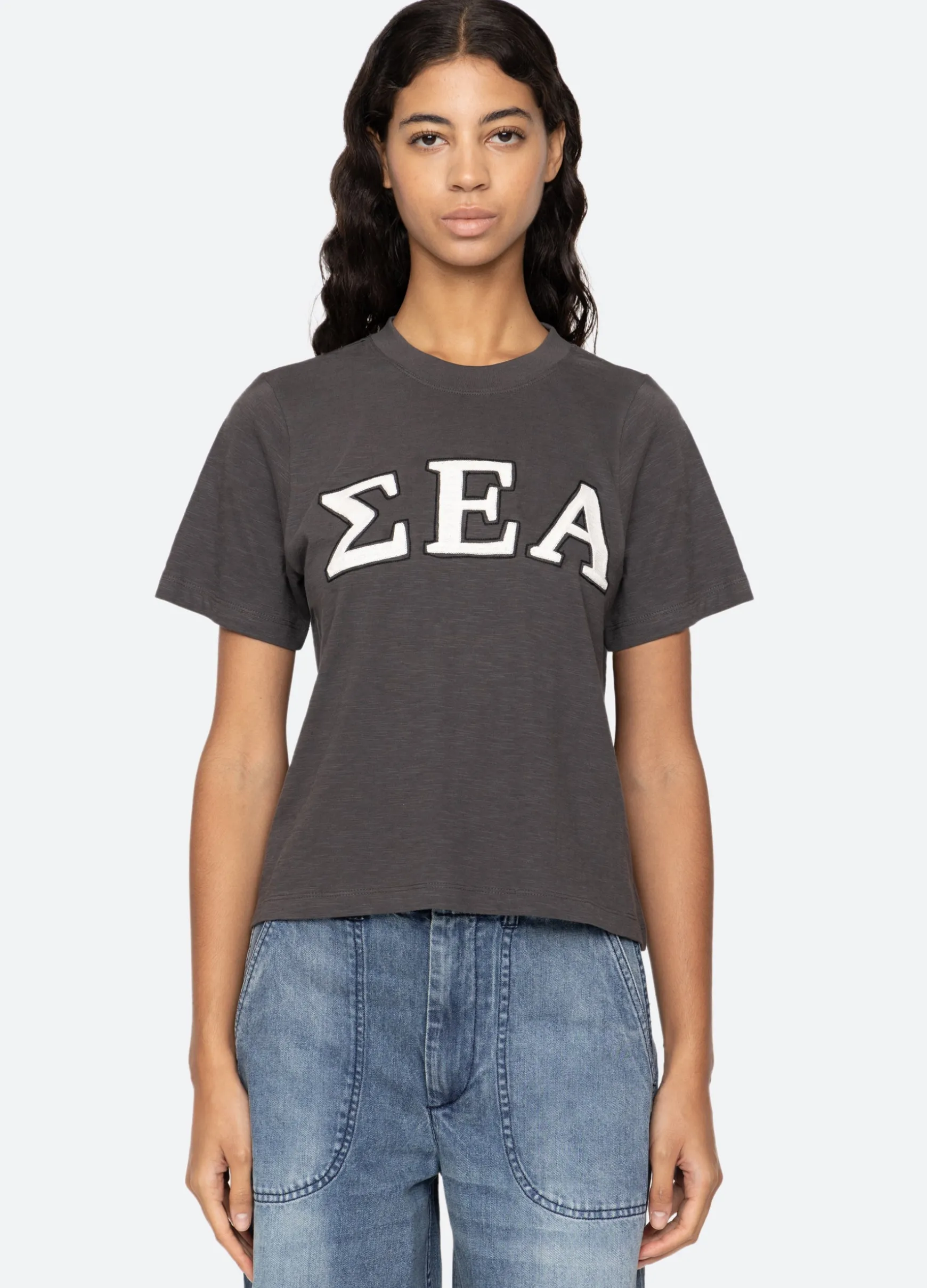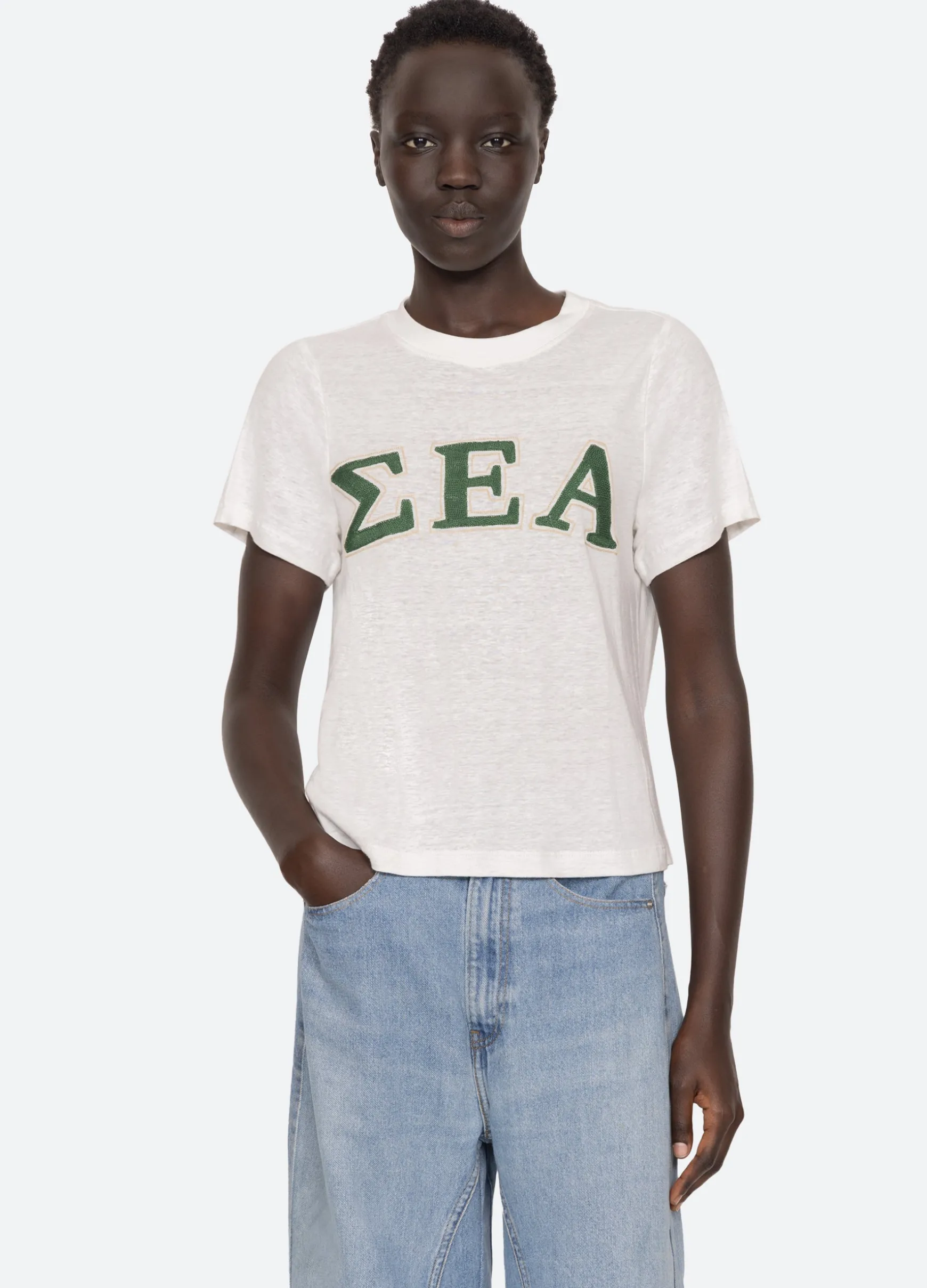 The Adonis t-shirt features an embroidered ‘Sea’ logo in Greek letters. Designed for an easy, relaxed fit.