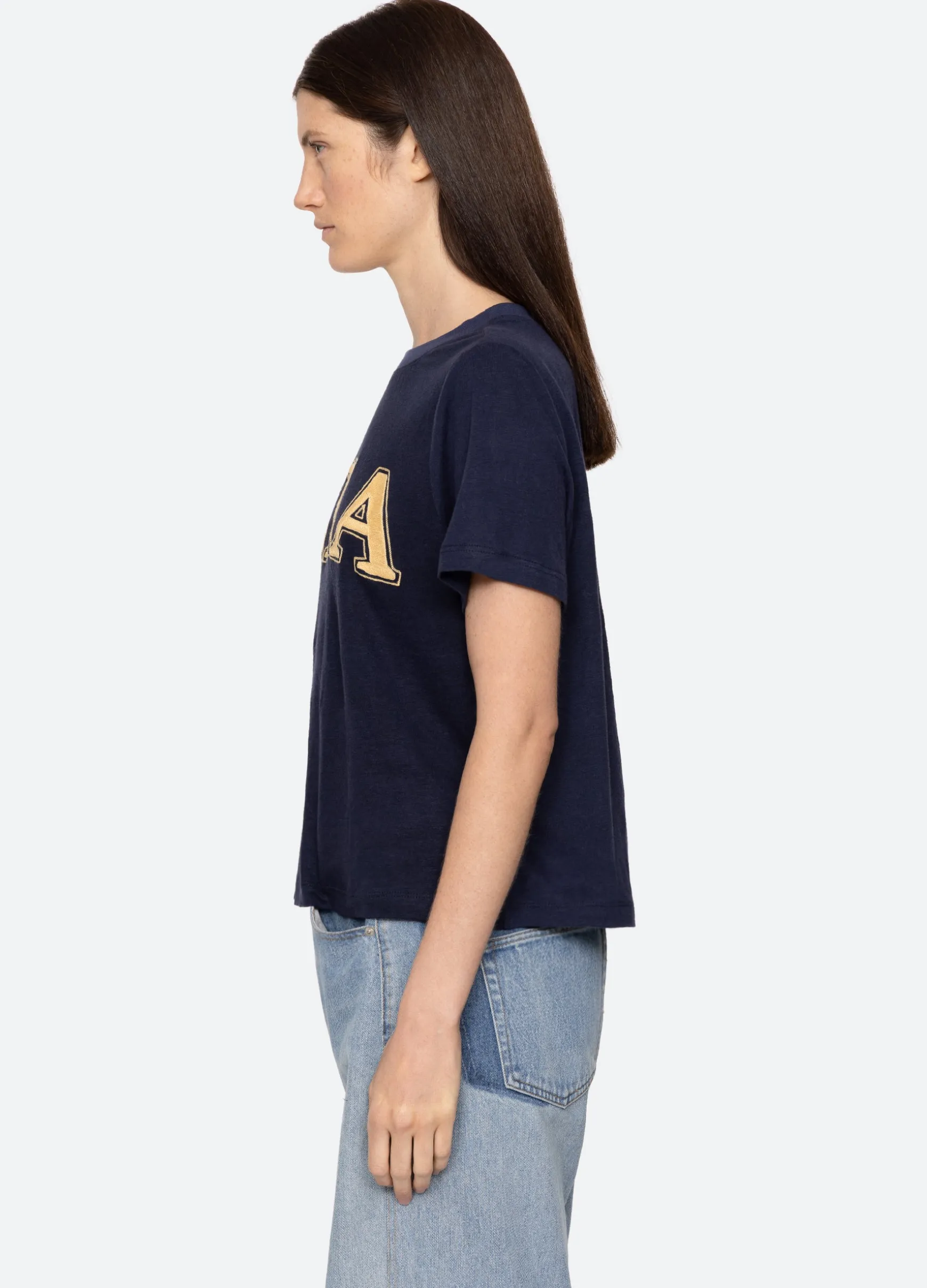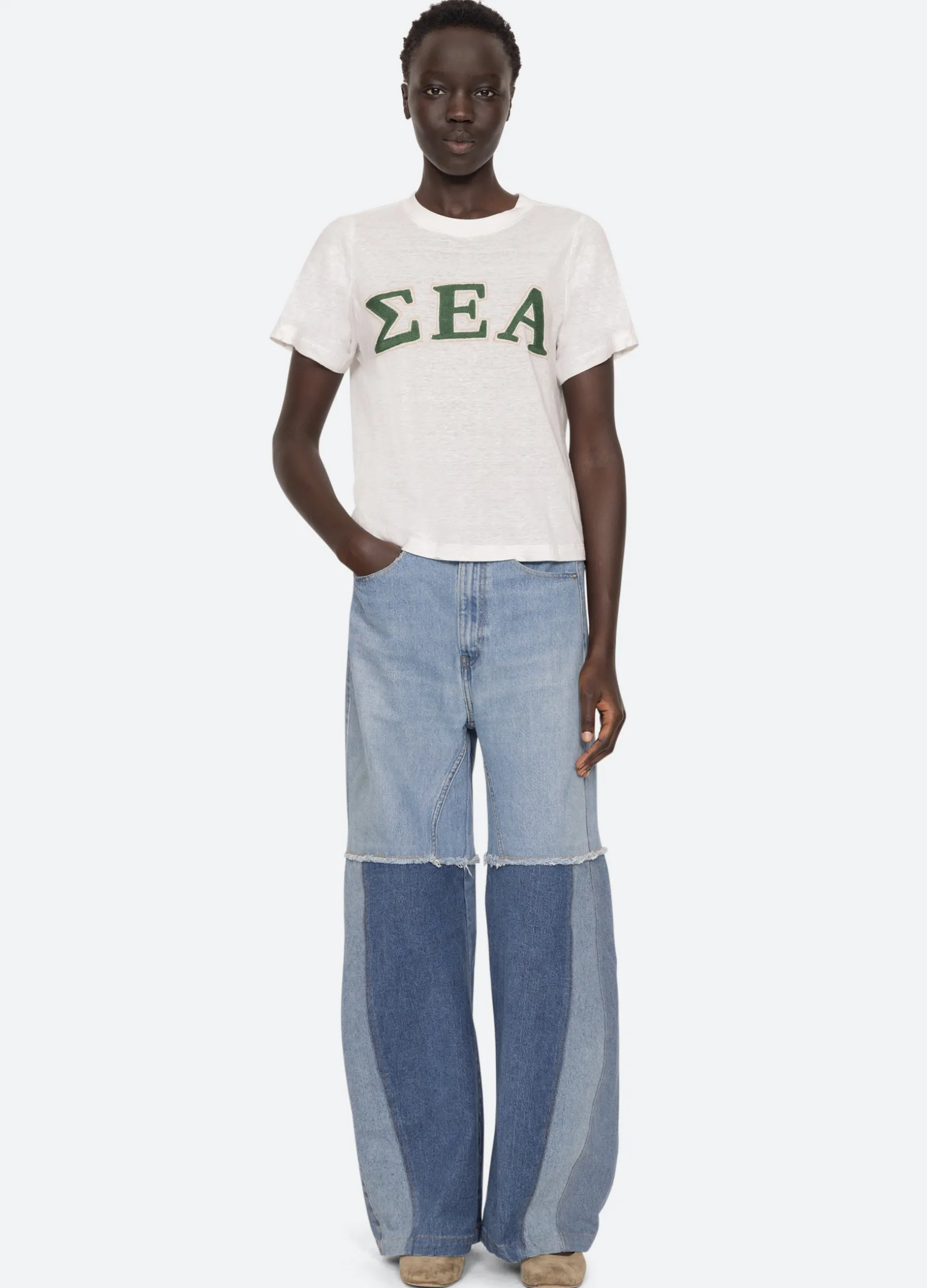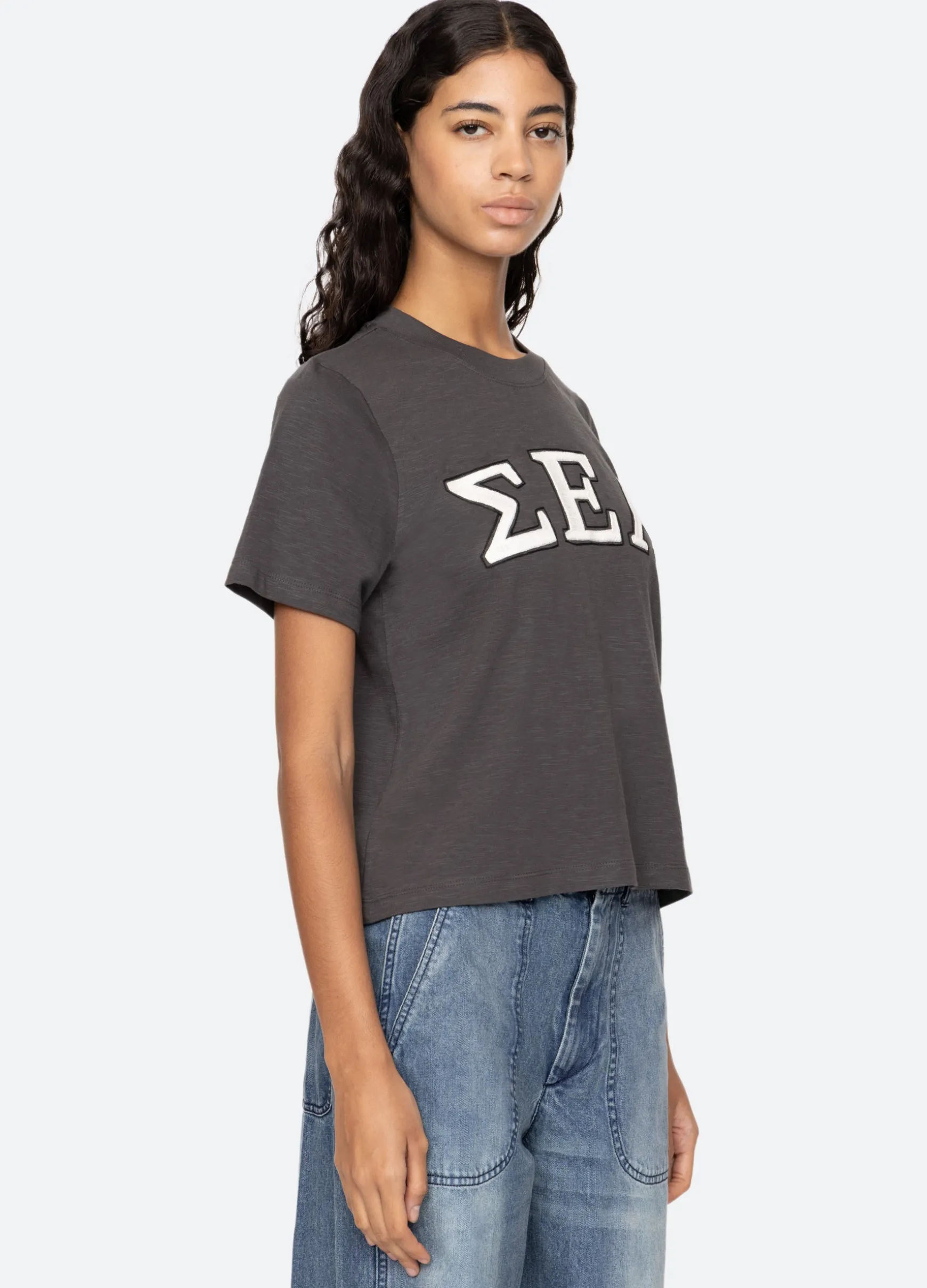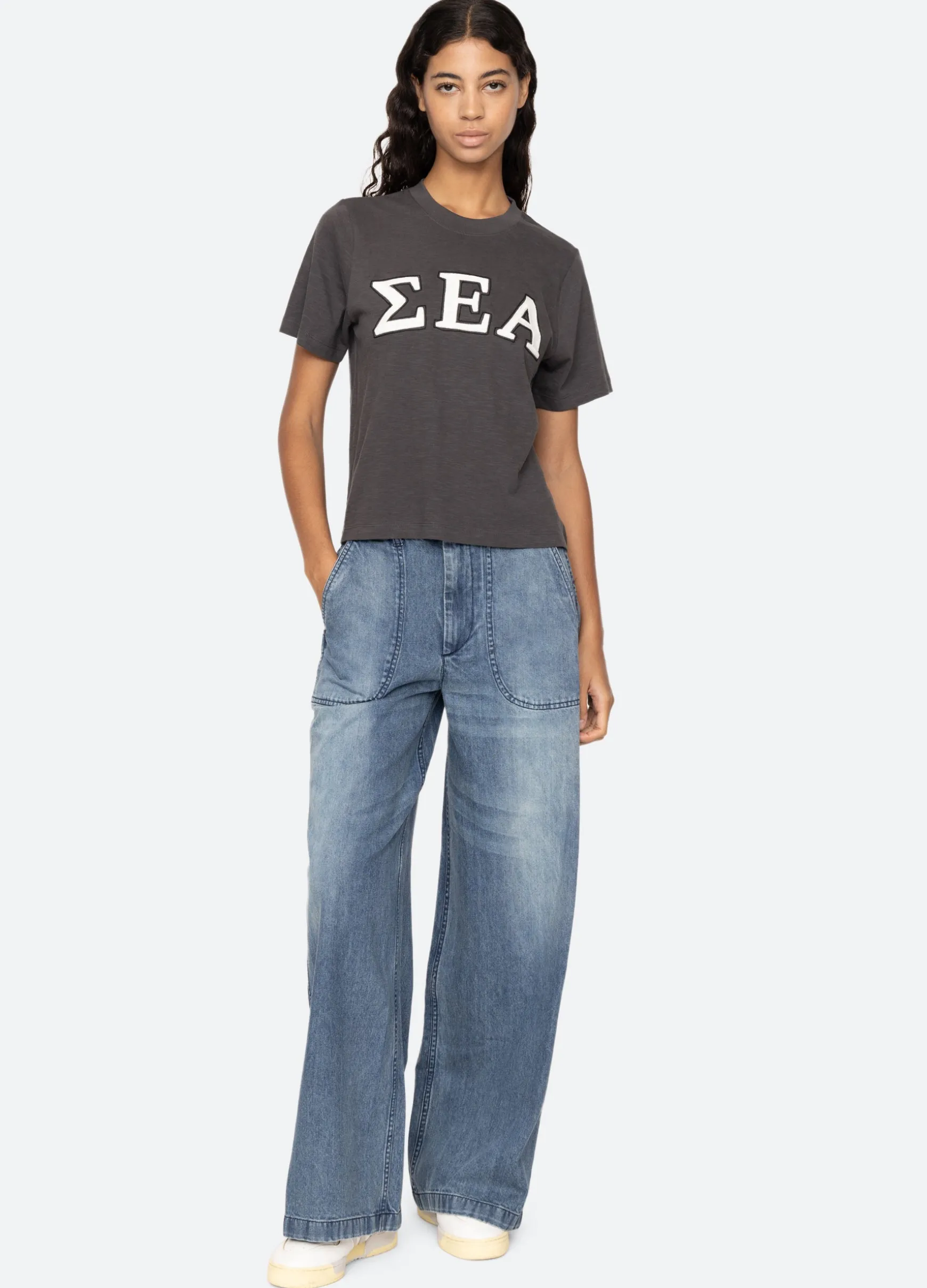 The Adonis t-shirt features an embroidered ‘Sea’ logo in Greek letters. Designed for an easy, relaxed fit.