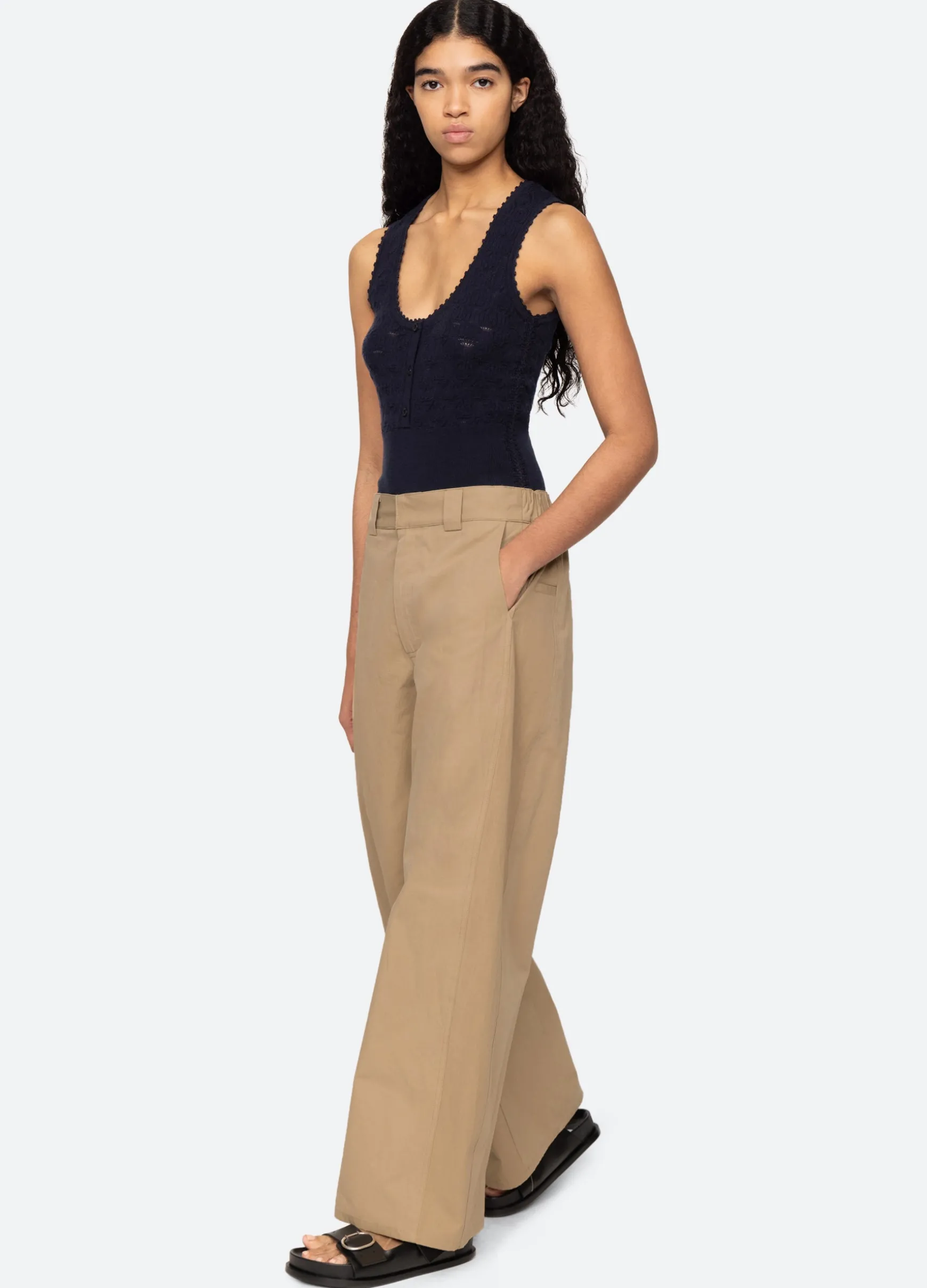 100% cottonfront zipper with hook & bar closuredesigned for a relaxed fitmodel is 5’10” and wearing a size 4The Bel…