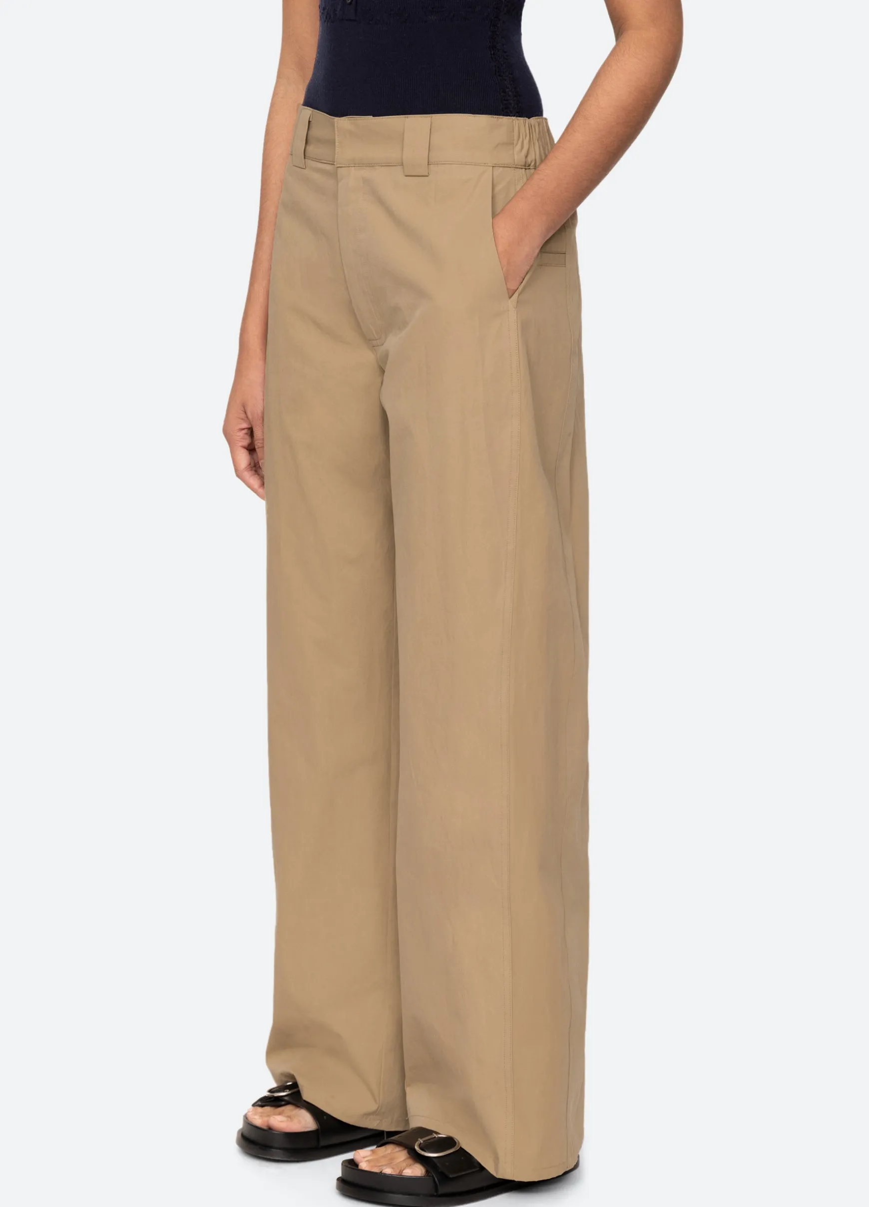 The Belle stone washed chino pants are designed for an easy, relaxed fit.