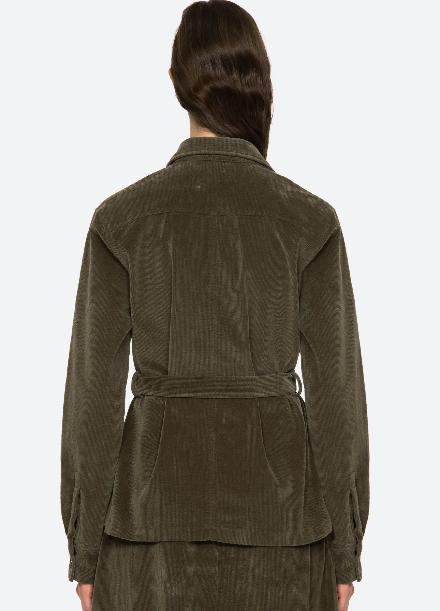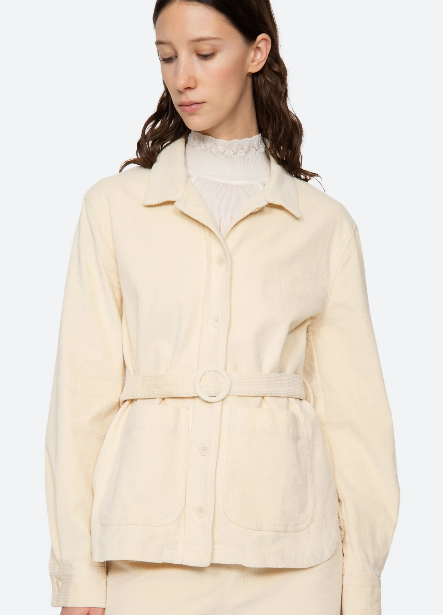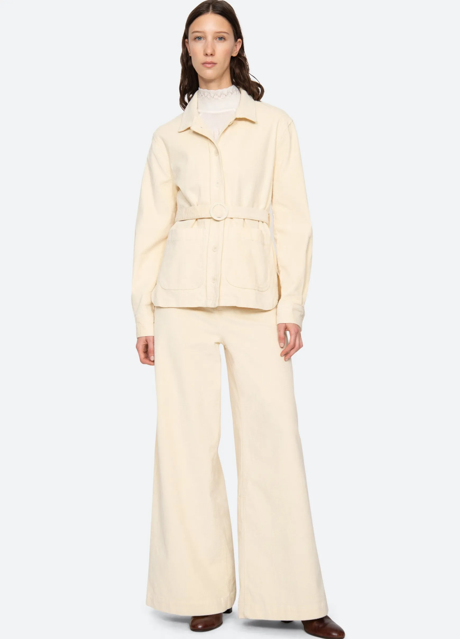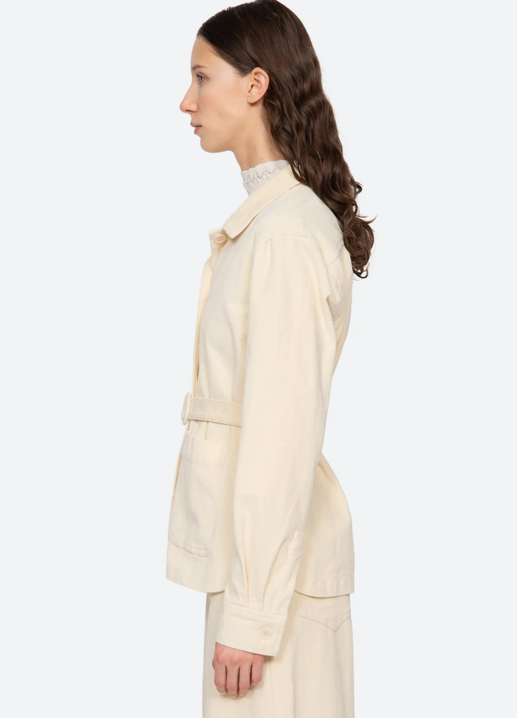 The Carine corduroy jacket features a removable belt and button front. Pairs perfectly with the Carine corduroy jeans.