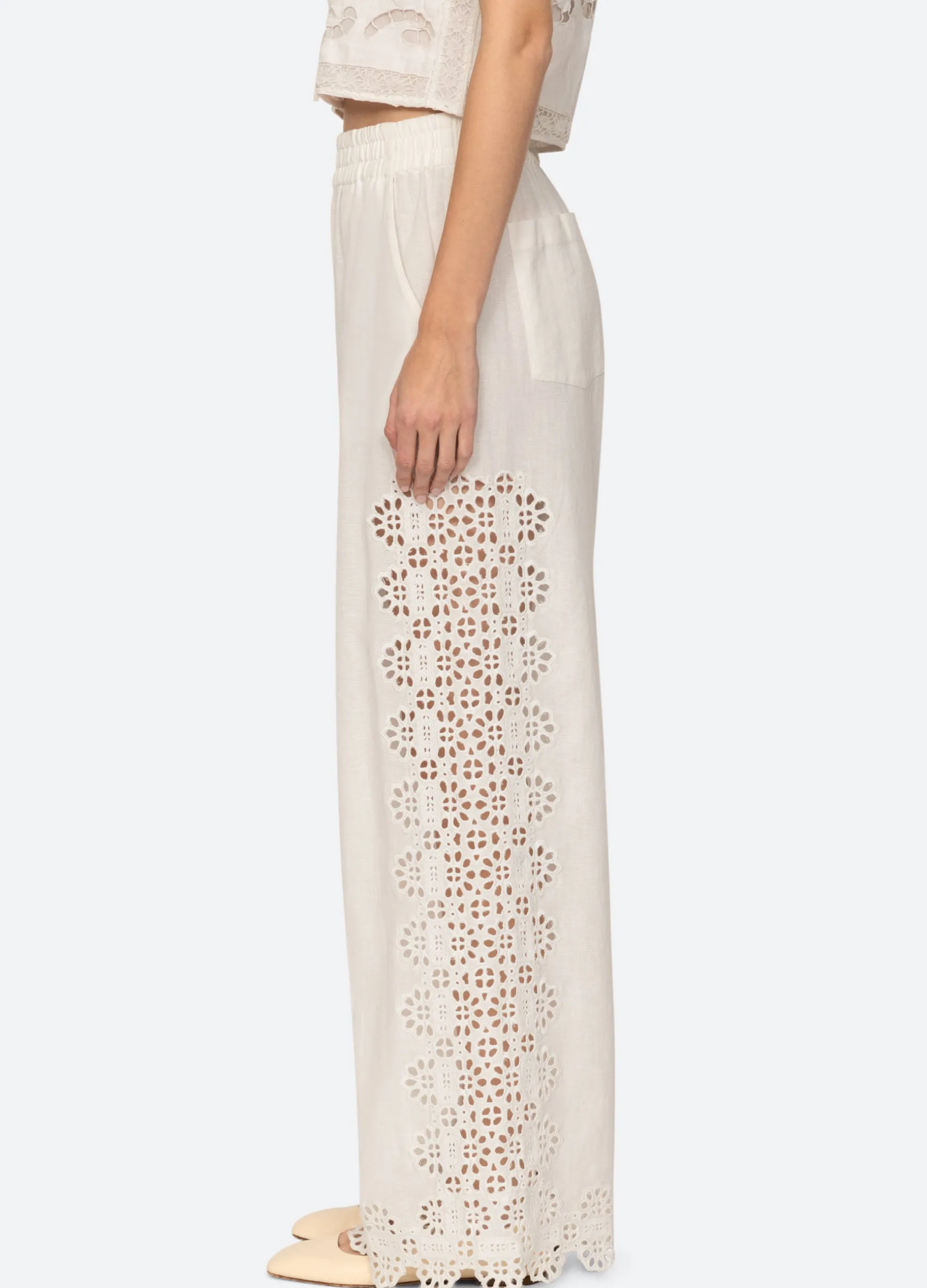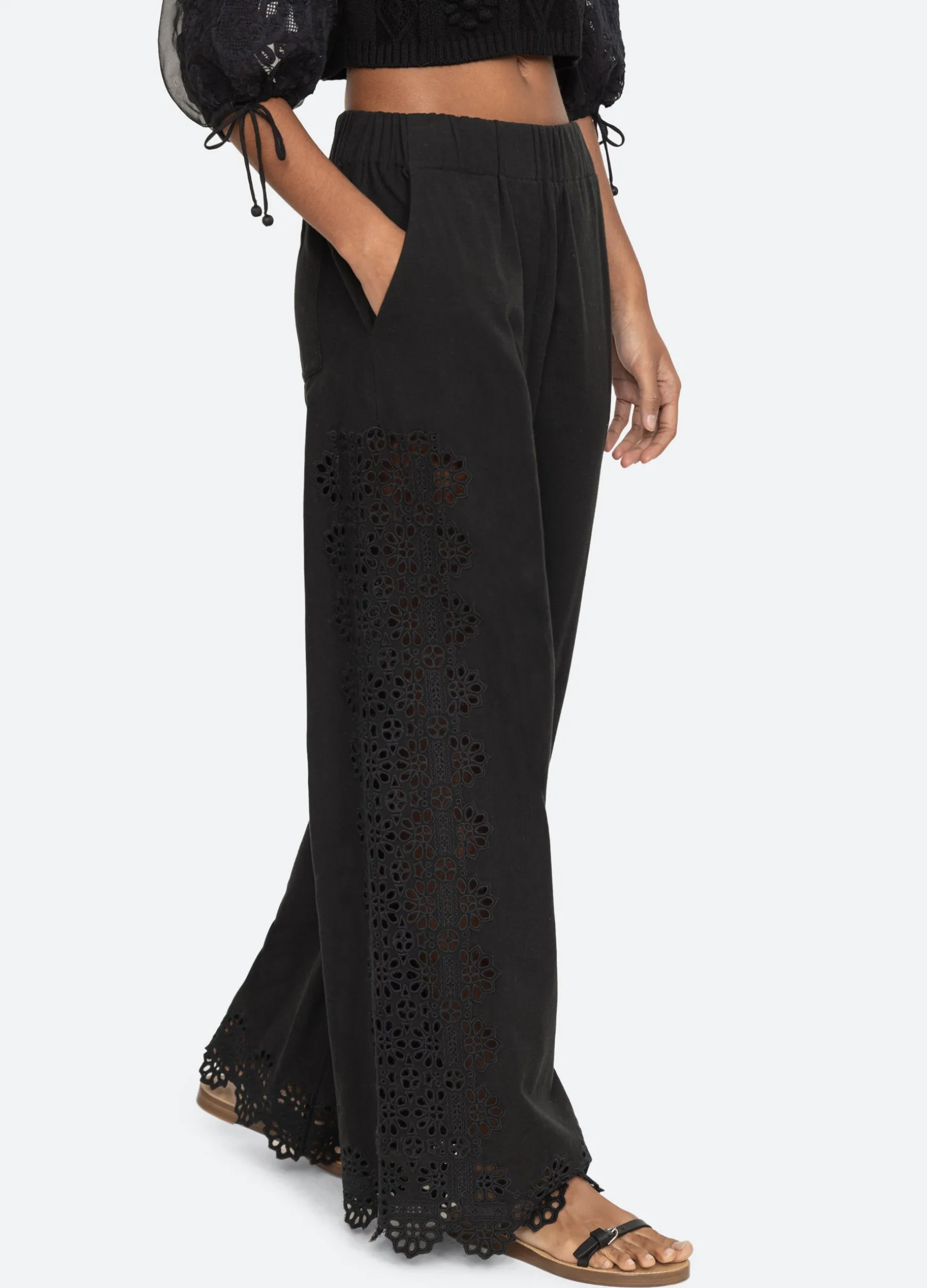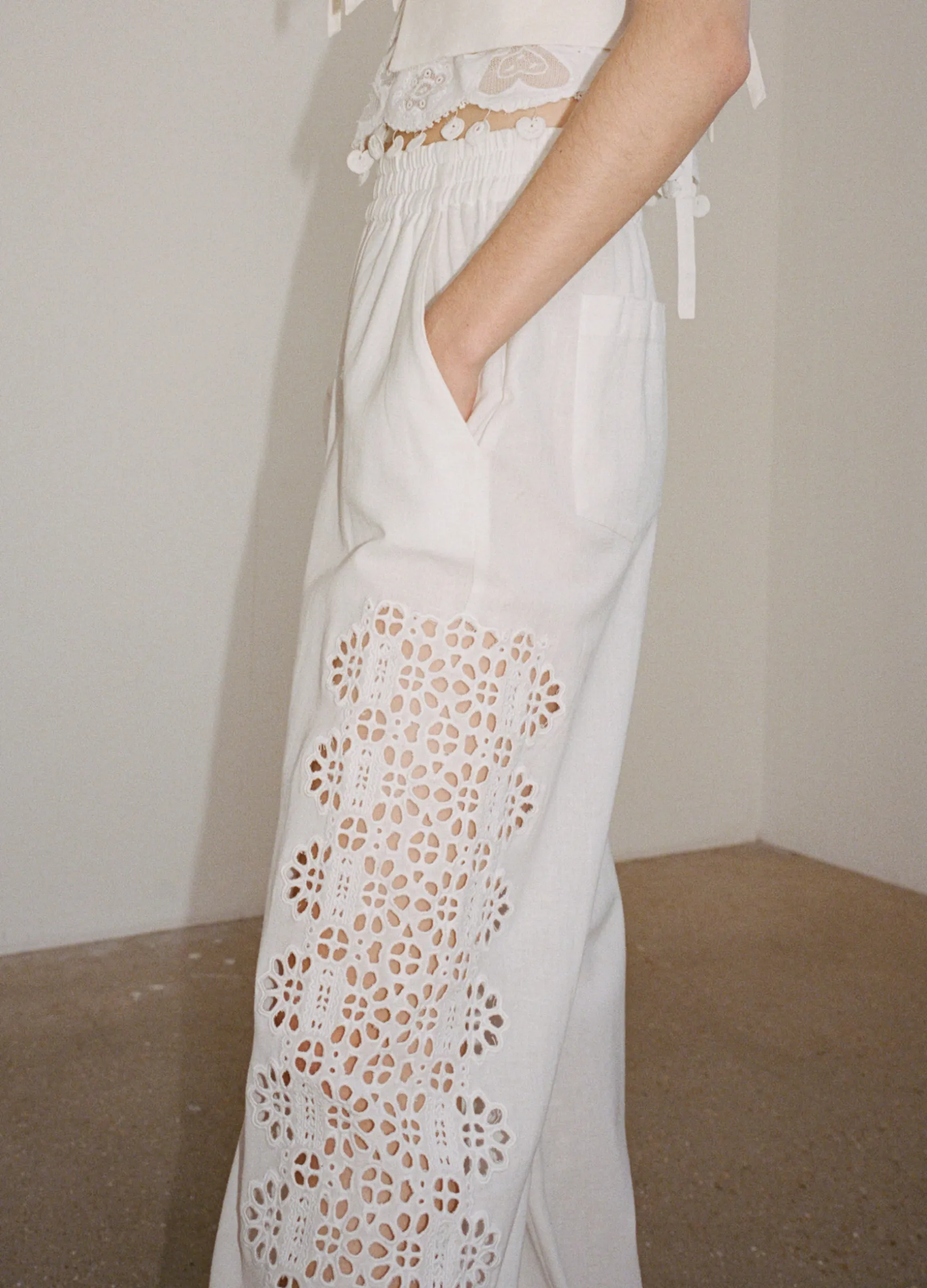 The Edith pants featurean elasticized waistband and embroidered detailing down the side of the leg. Designed for an easy, relaxed fit.