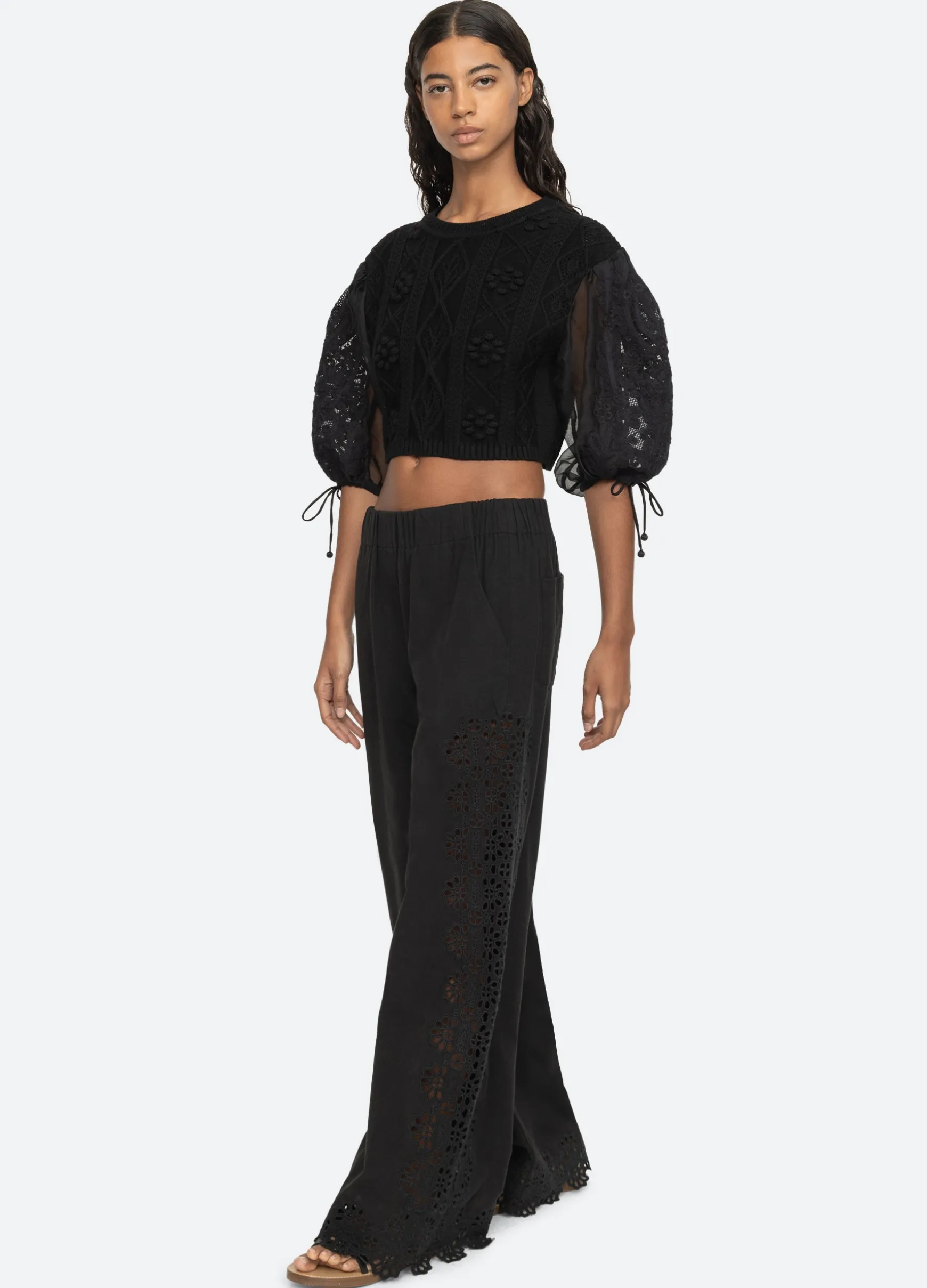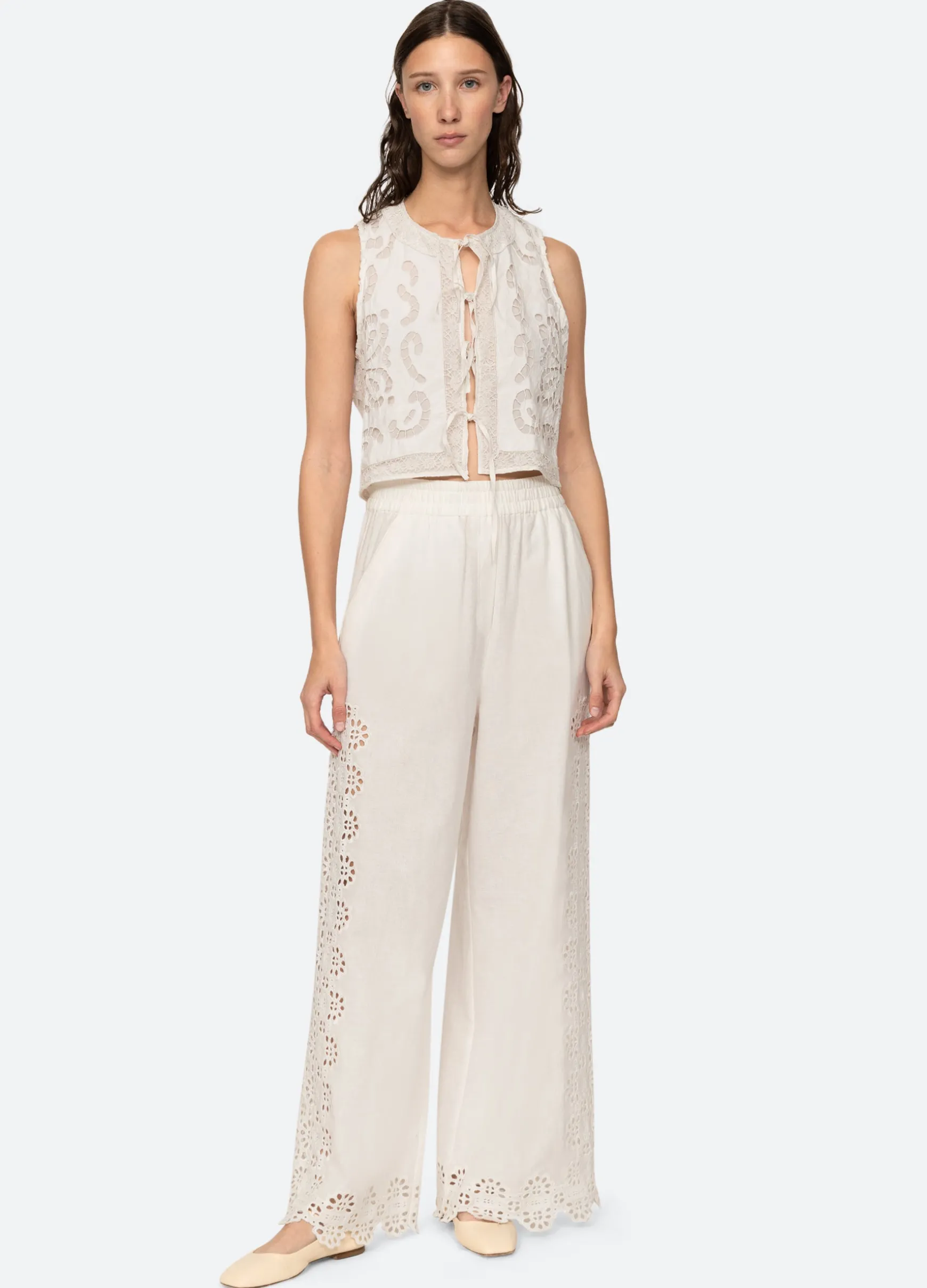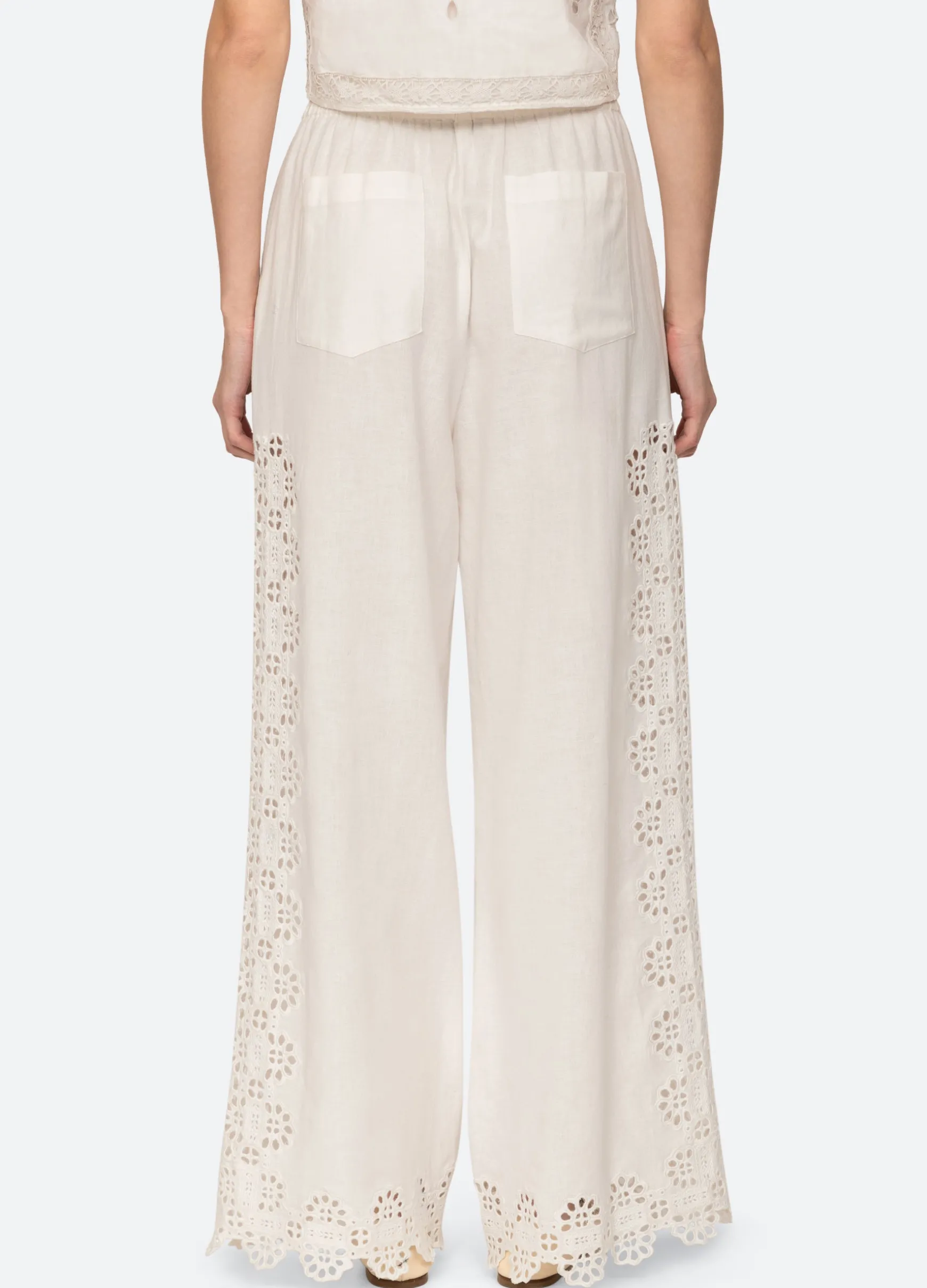 The Edith pants featurean elasticized waistband and embroidered detailing down the side of the leg. Designed for an easy, relaxed fit.