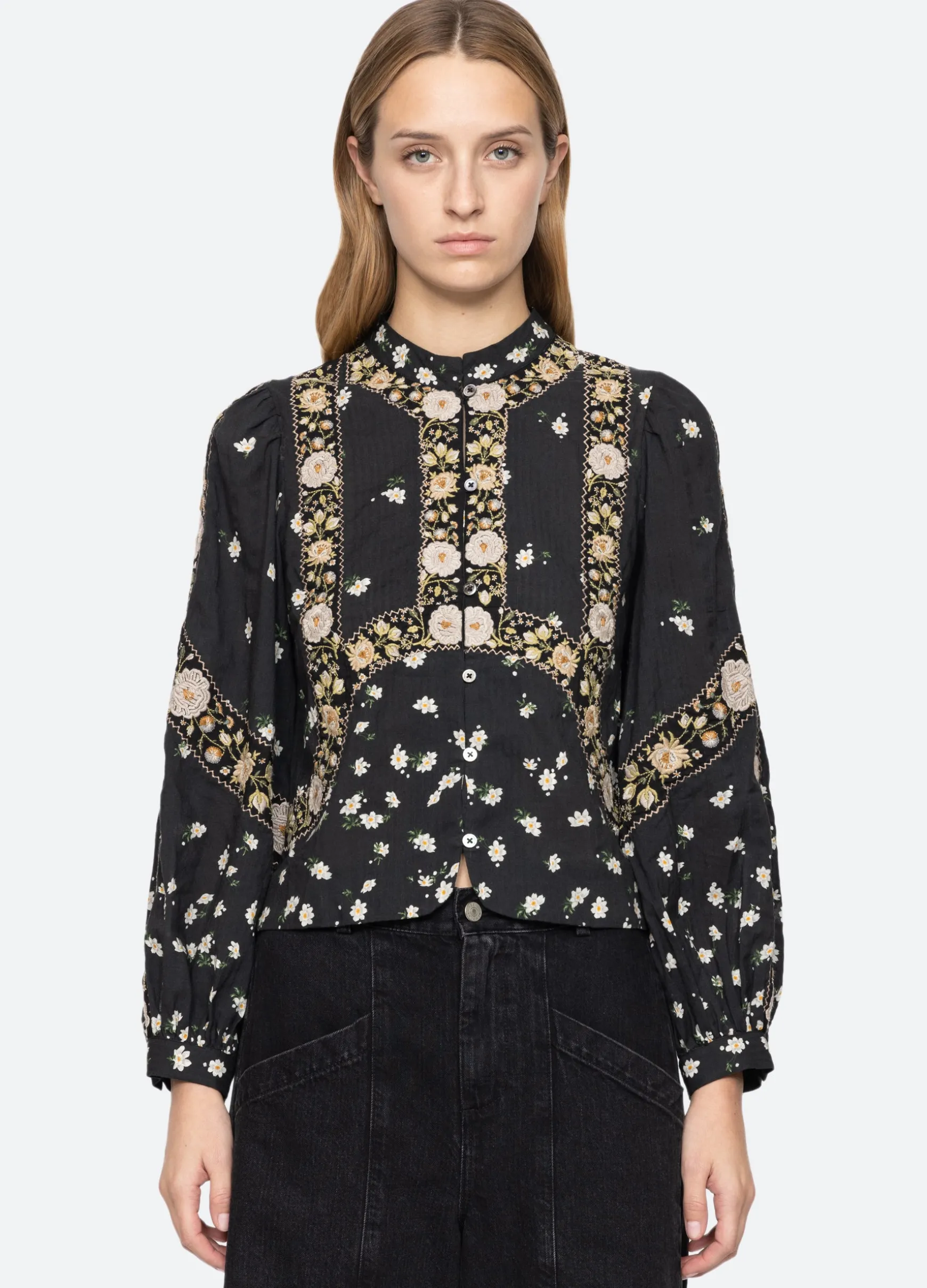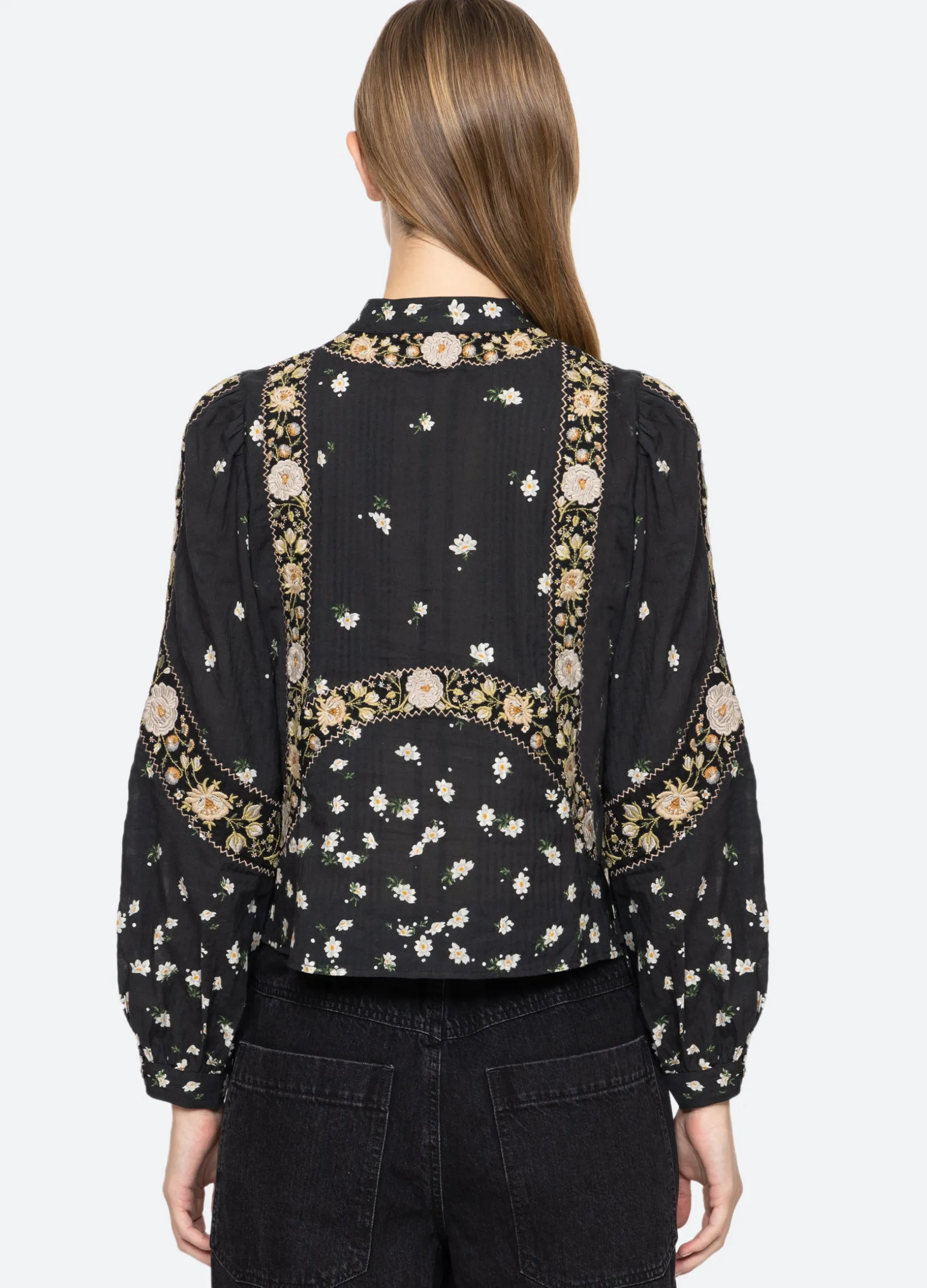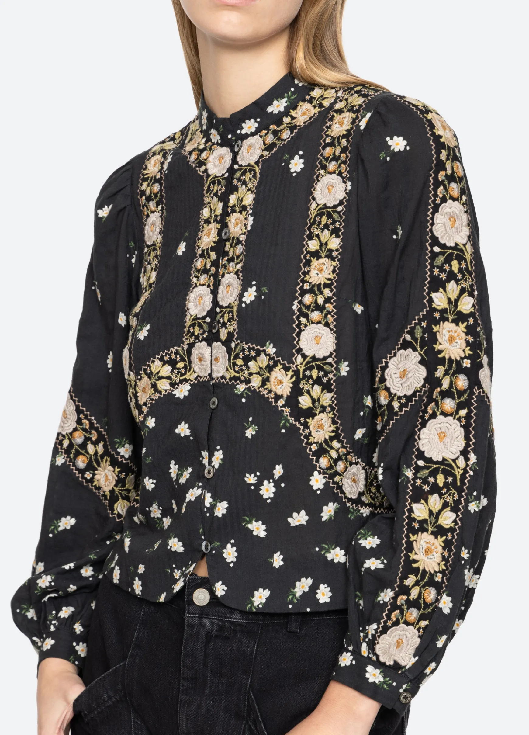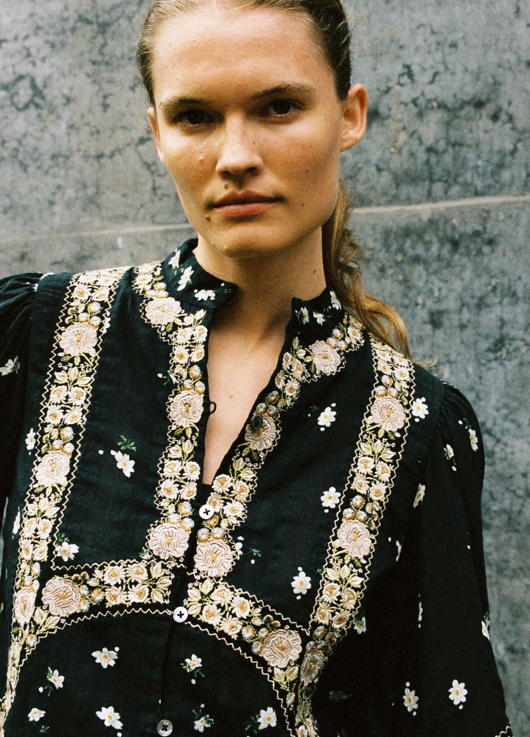 The Elizabeth floral print topfeatures long puff sleeves and floral embroidered detailing throughout.