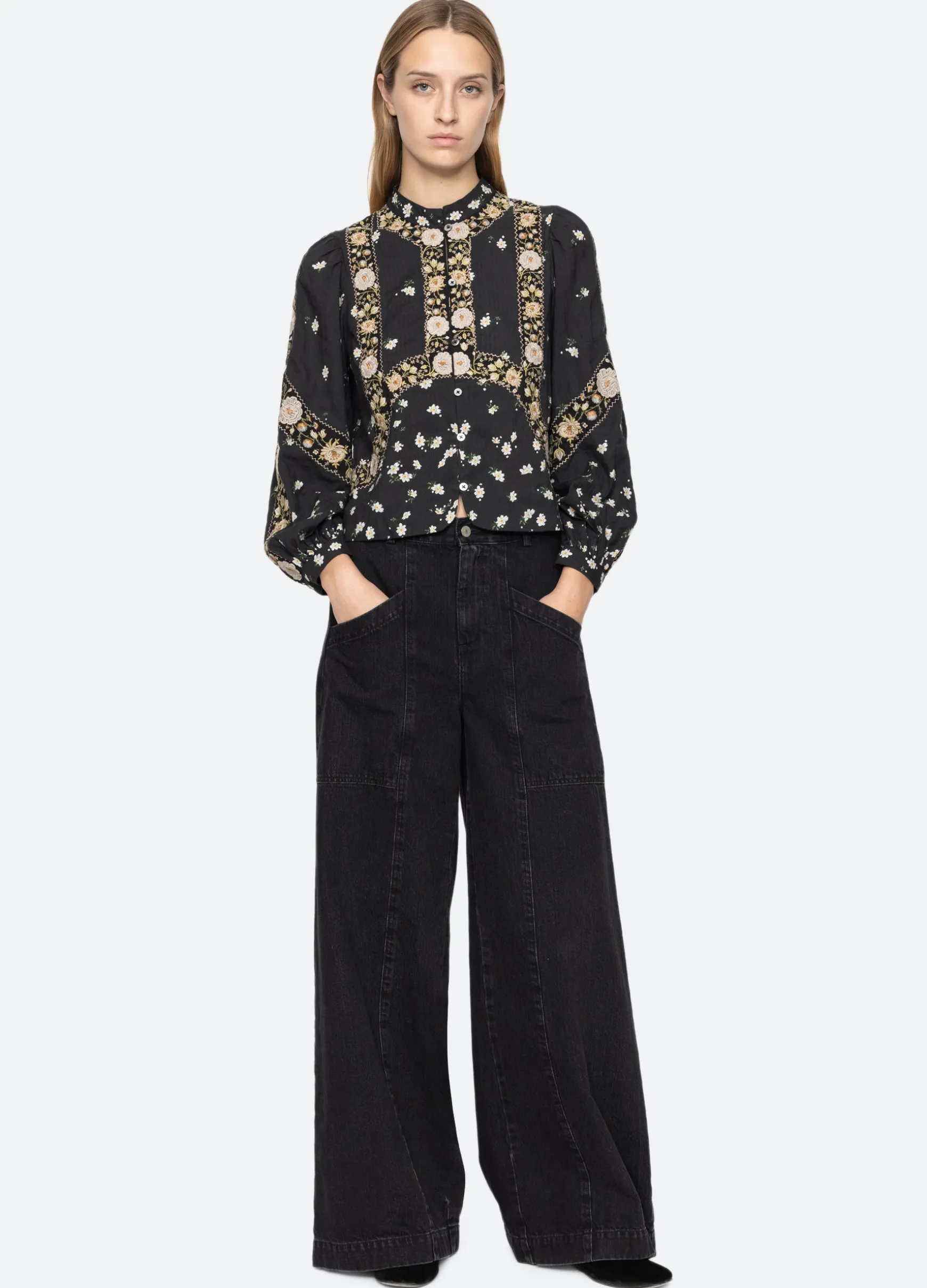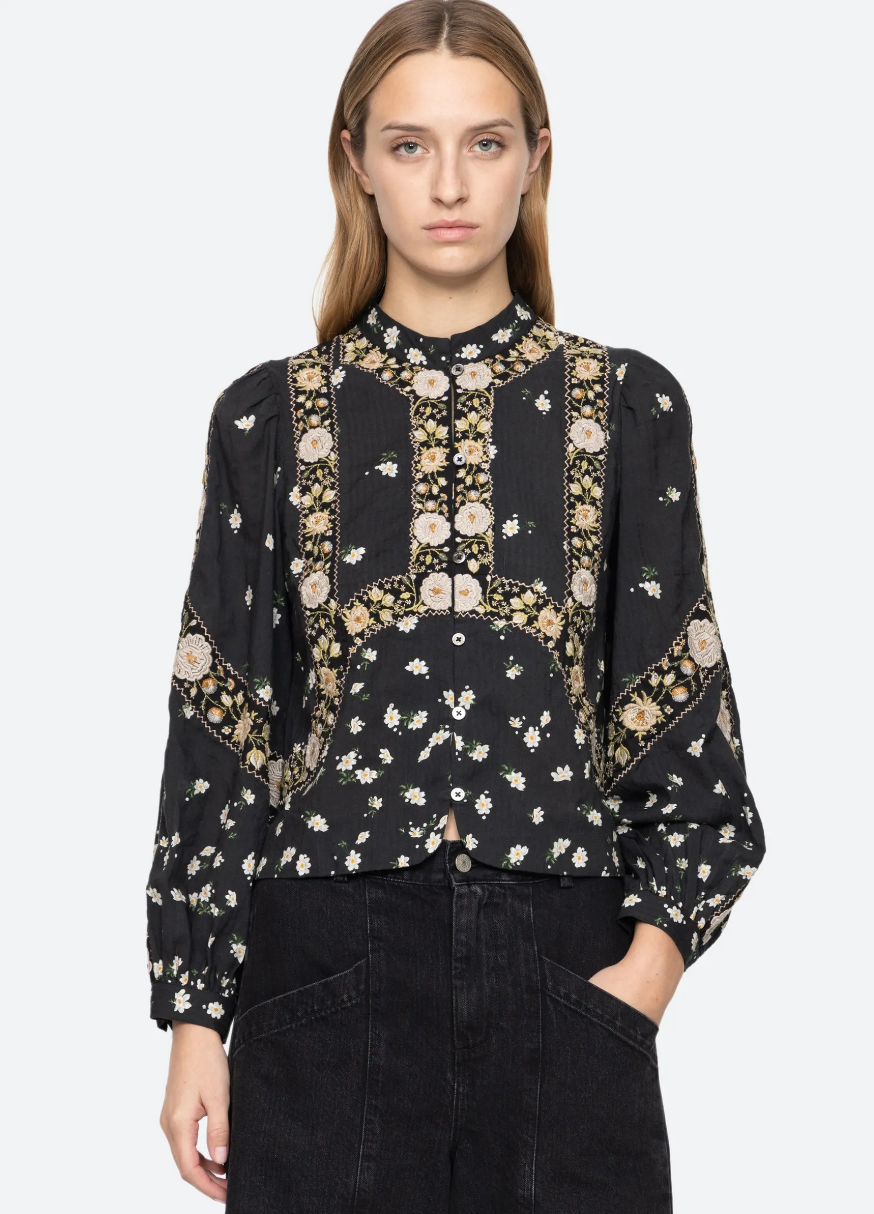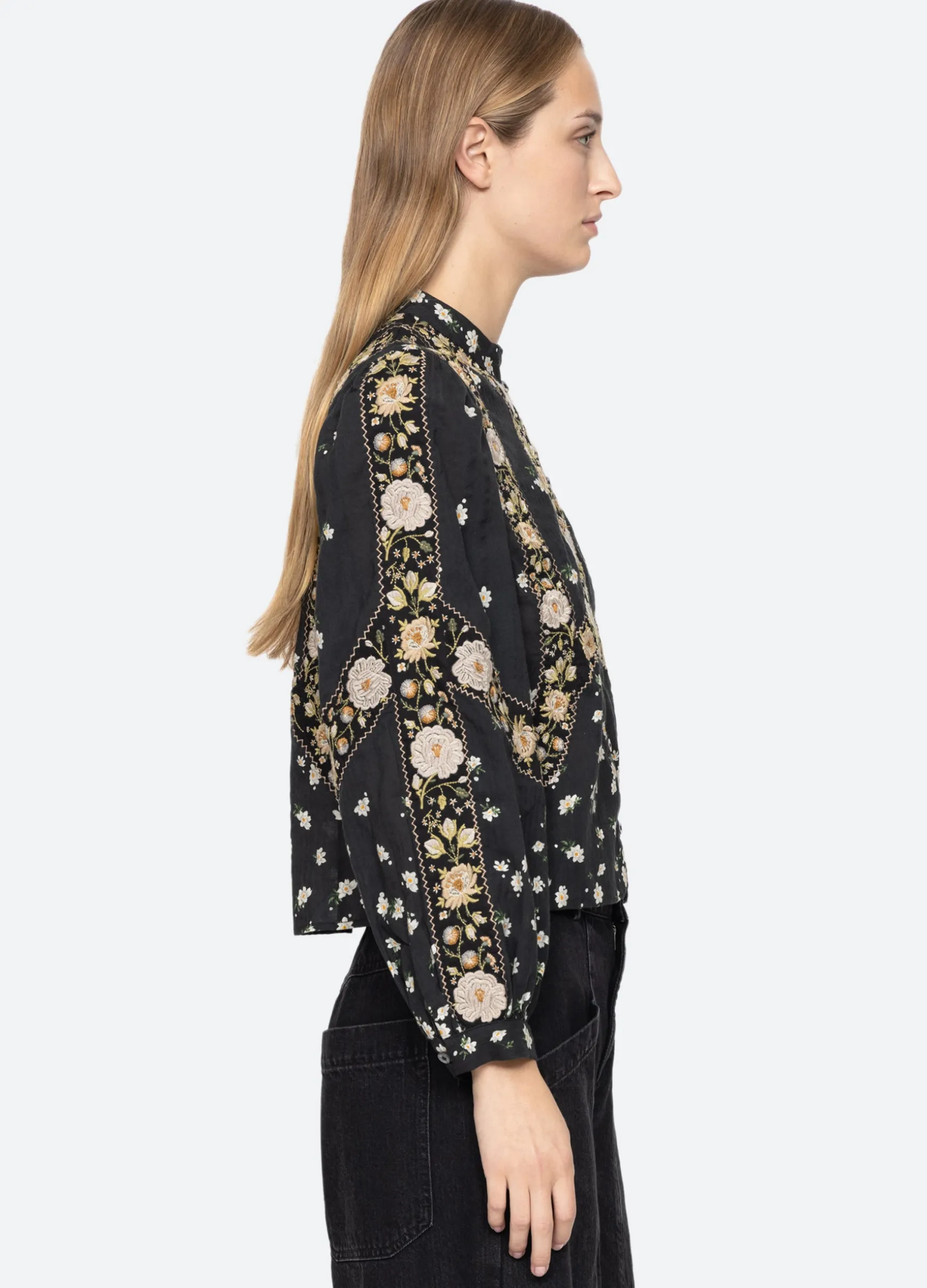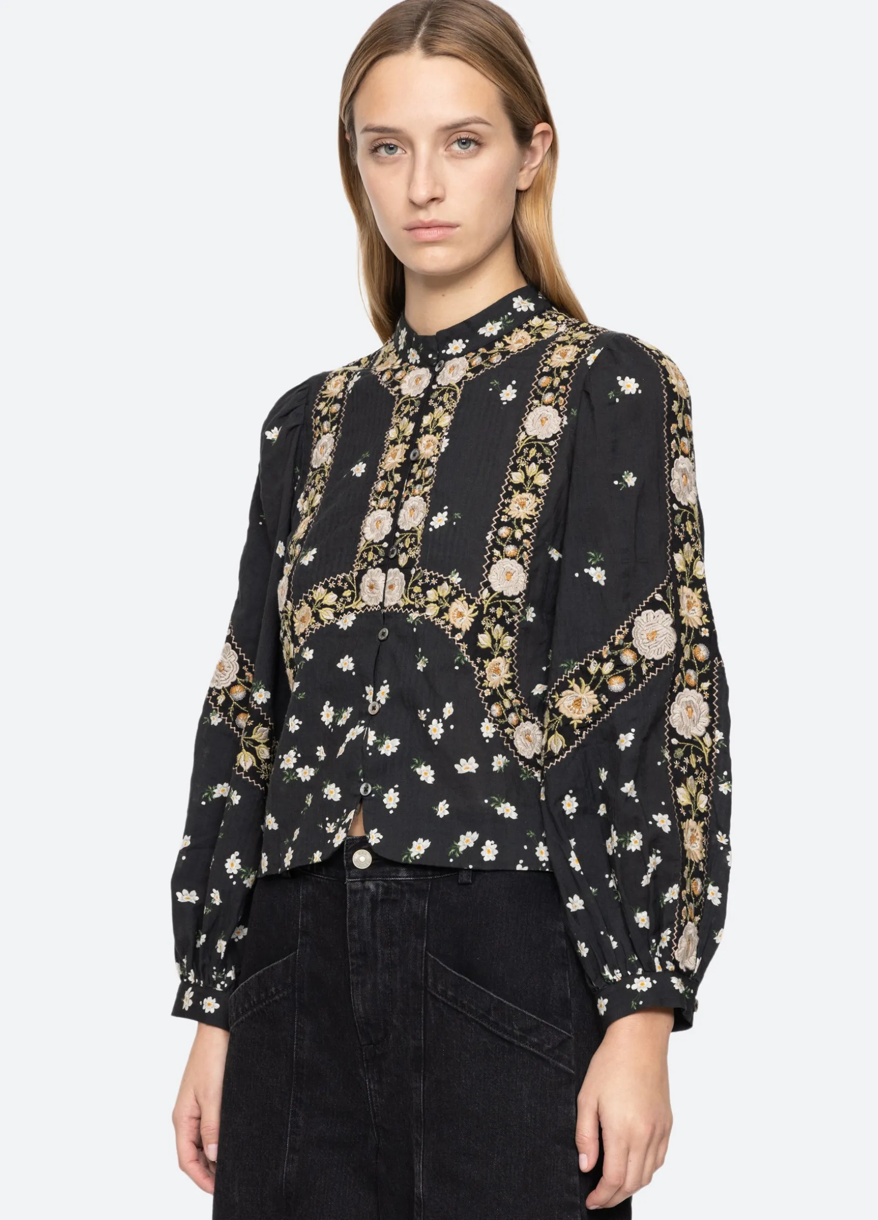 The Elizabeth floral print topfeatures long puff sleeves and floral embroidered detailing throughout.