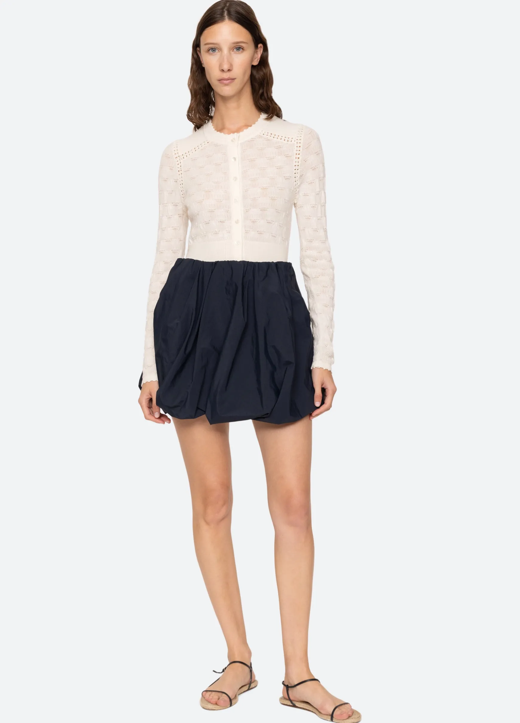 The Evelyn windbreaker mini skirt features avoluminous bubble hem.