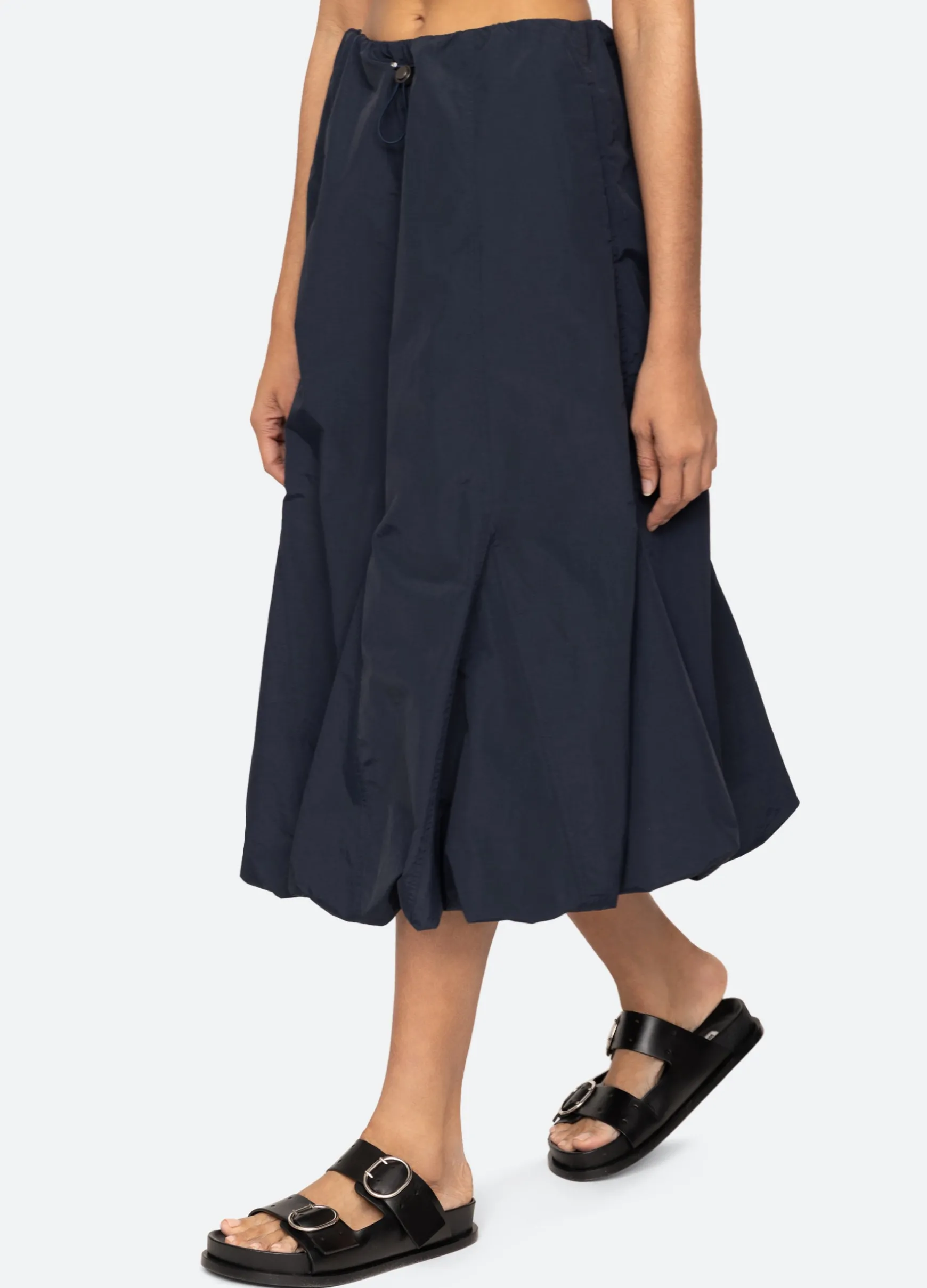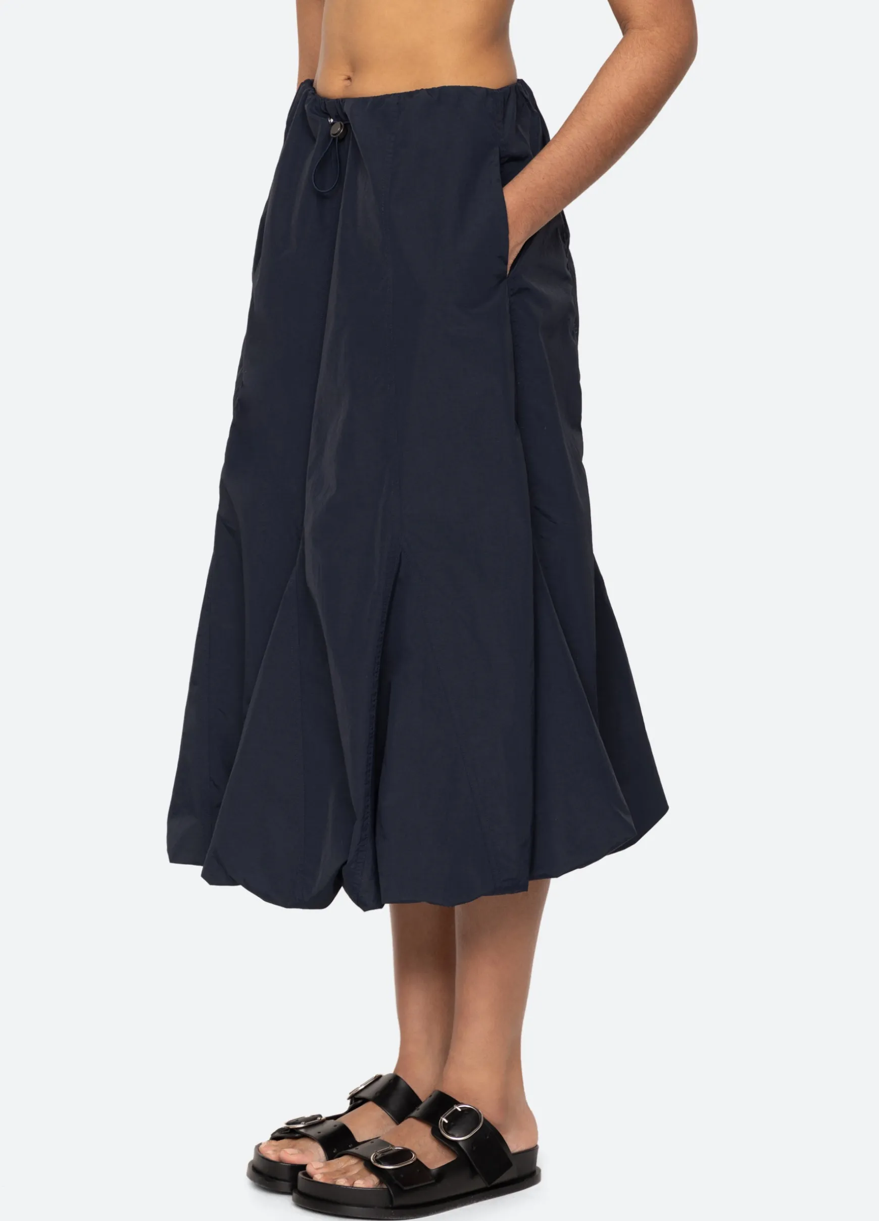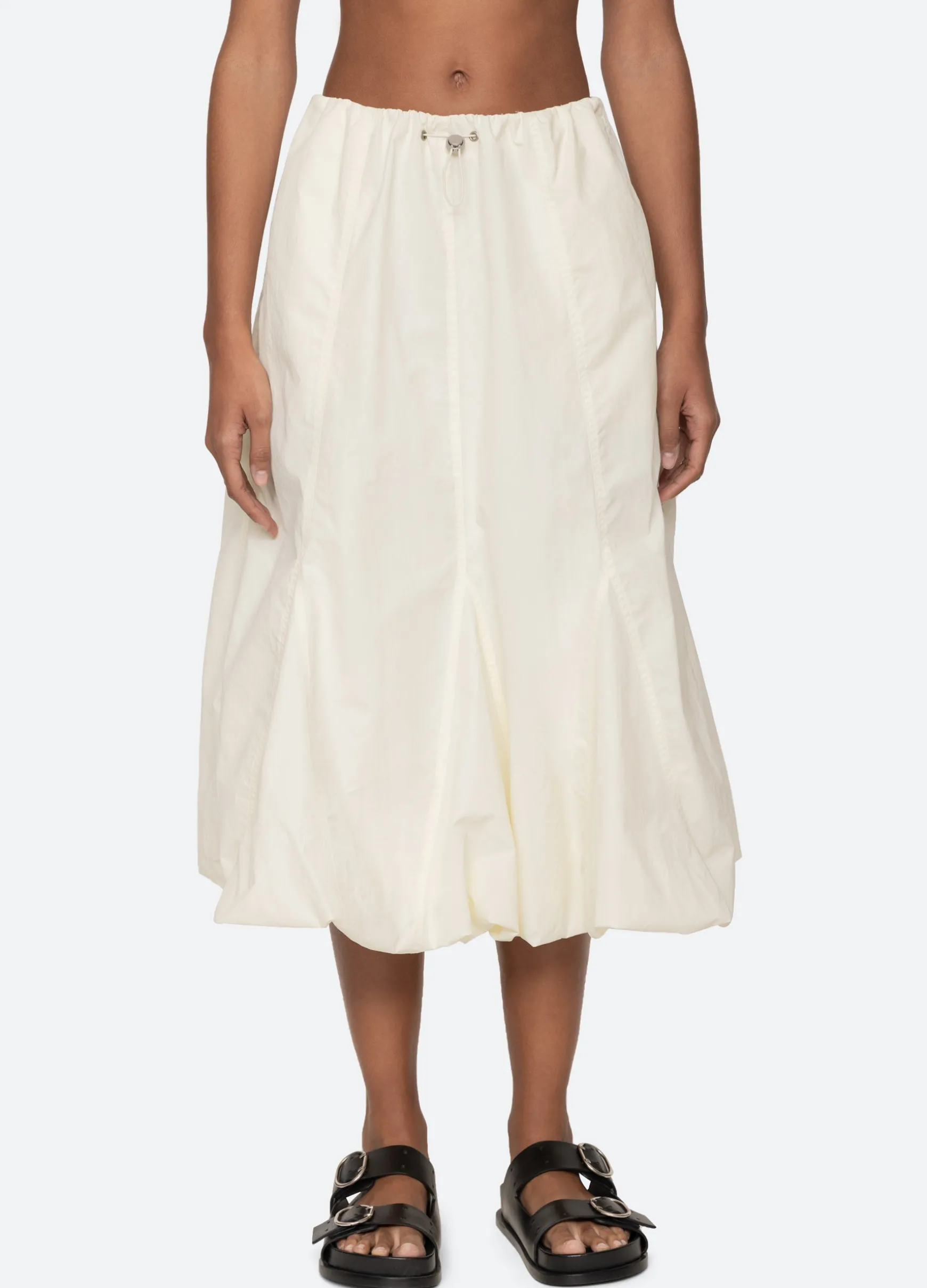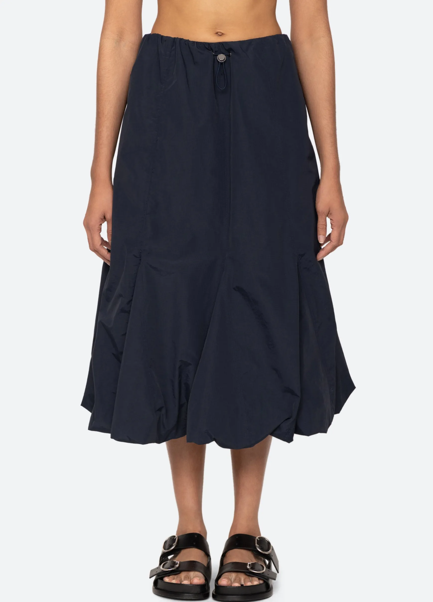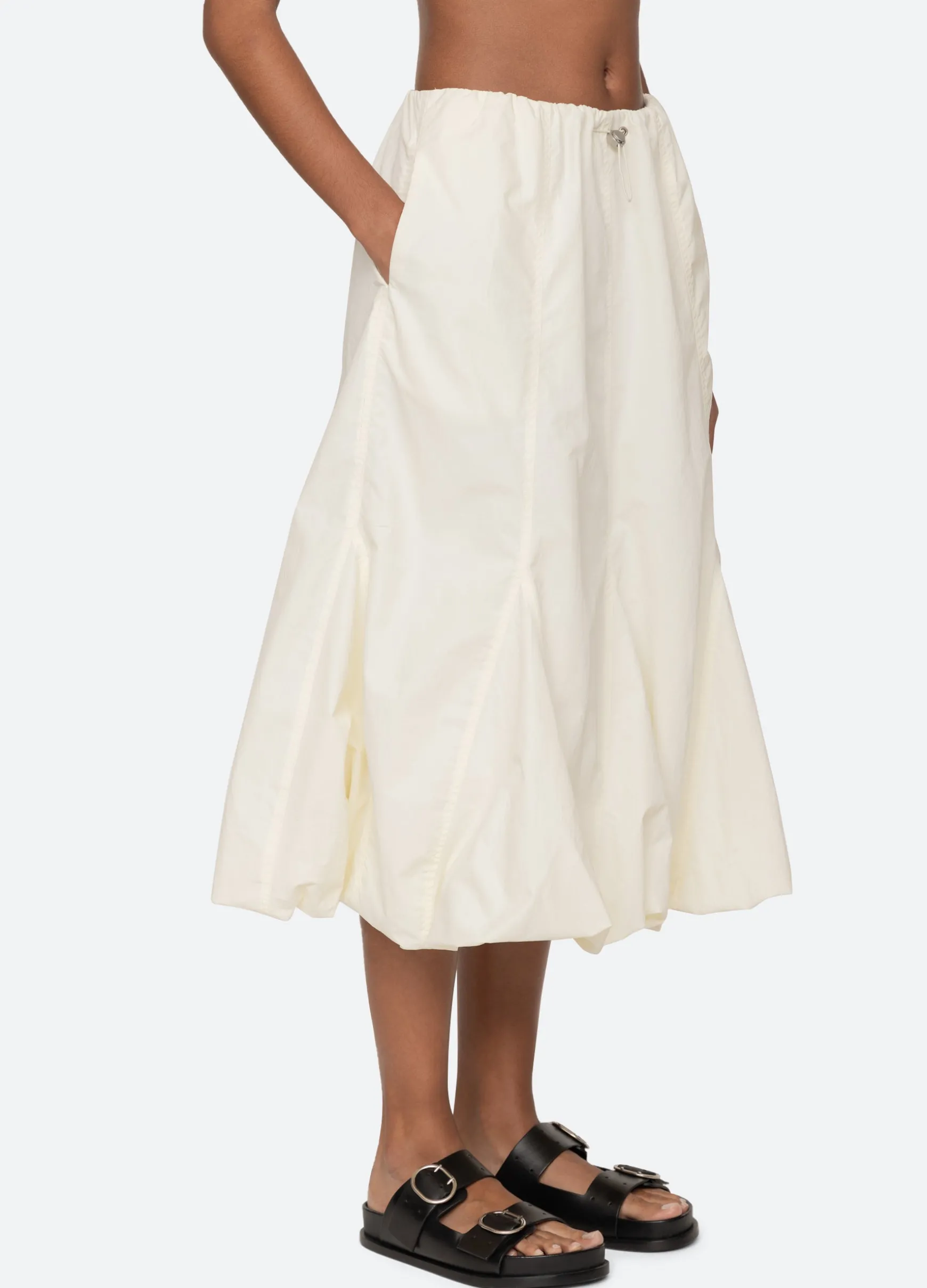 The Evelyn windbreaker skirt features avoluminous bubble hem and drawcord adjusters at the waist. Designed for an easy, relaxed fit.
