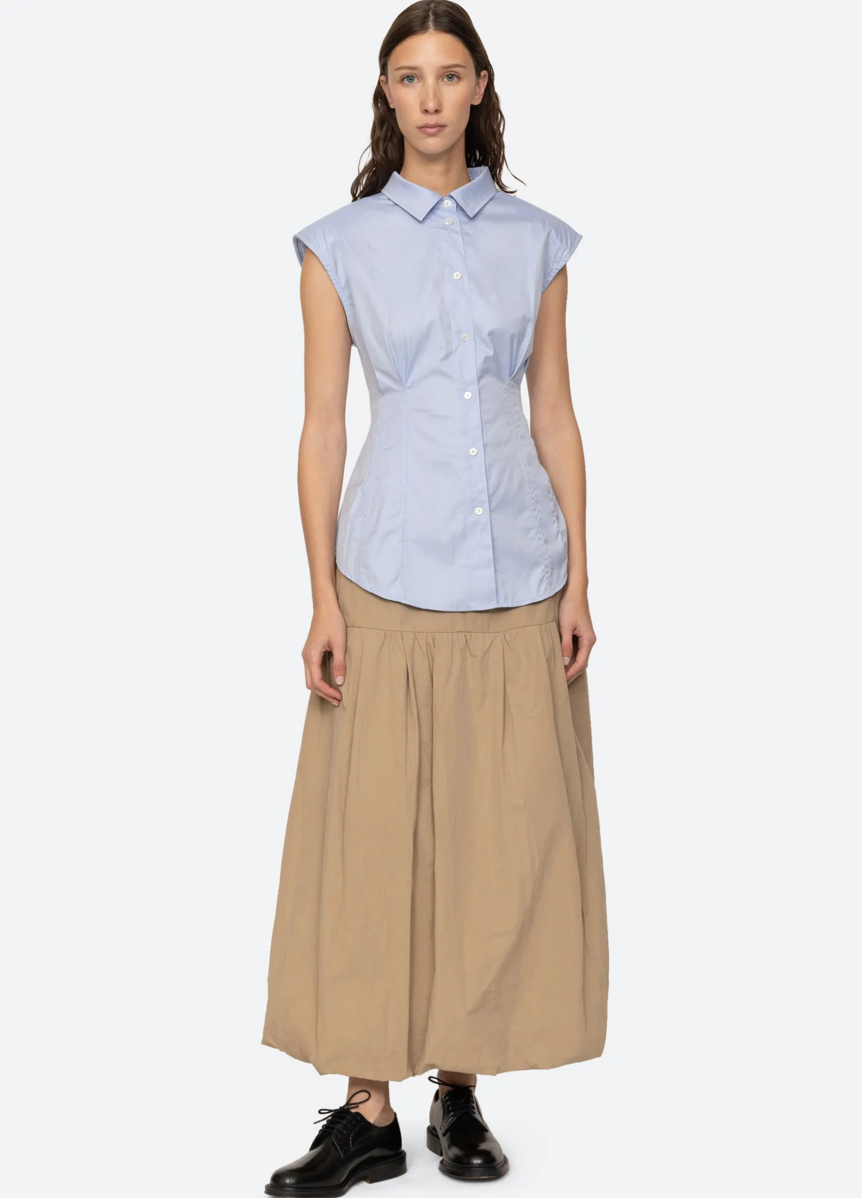 100% cottonbutton frontdesigned for a slimmer fitmodel is 5’10” and wearing a size SThe Kendra sleeveless button down t…