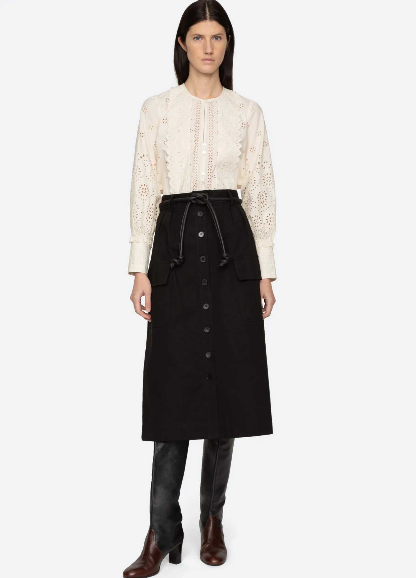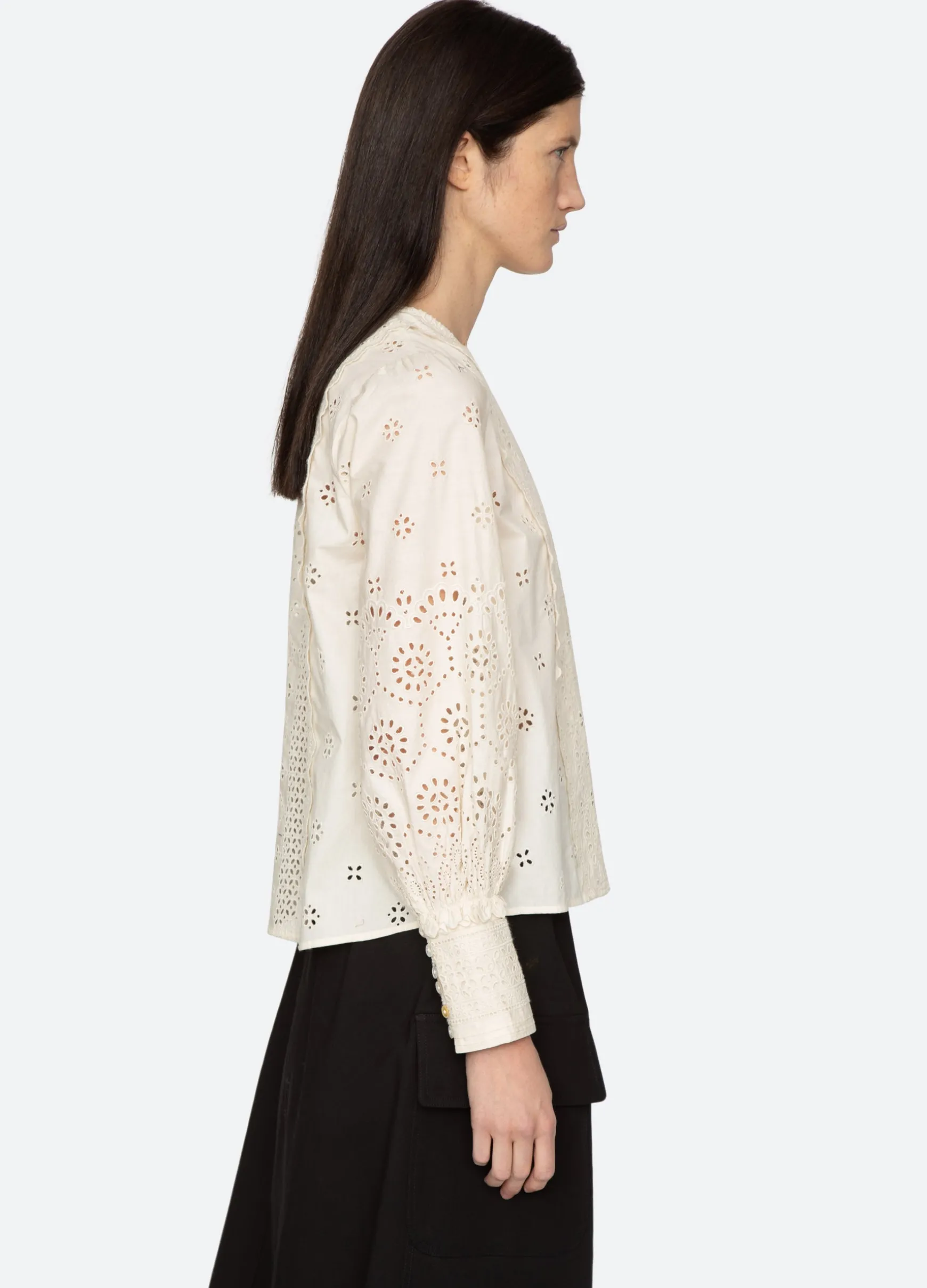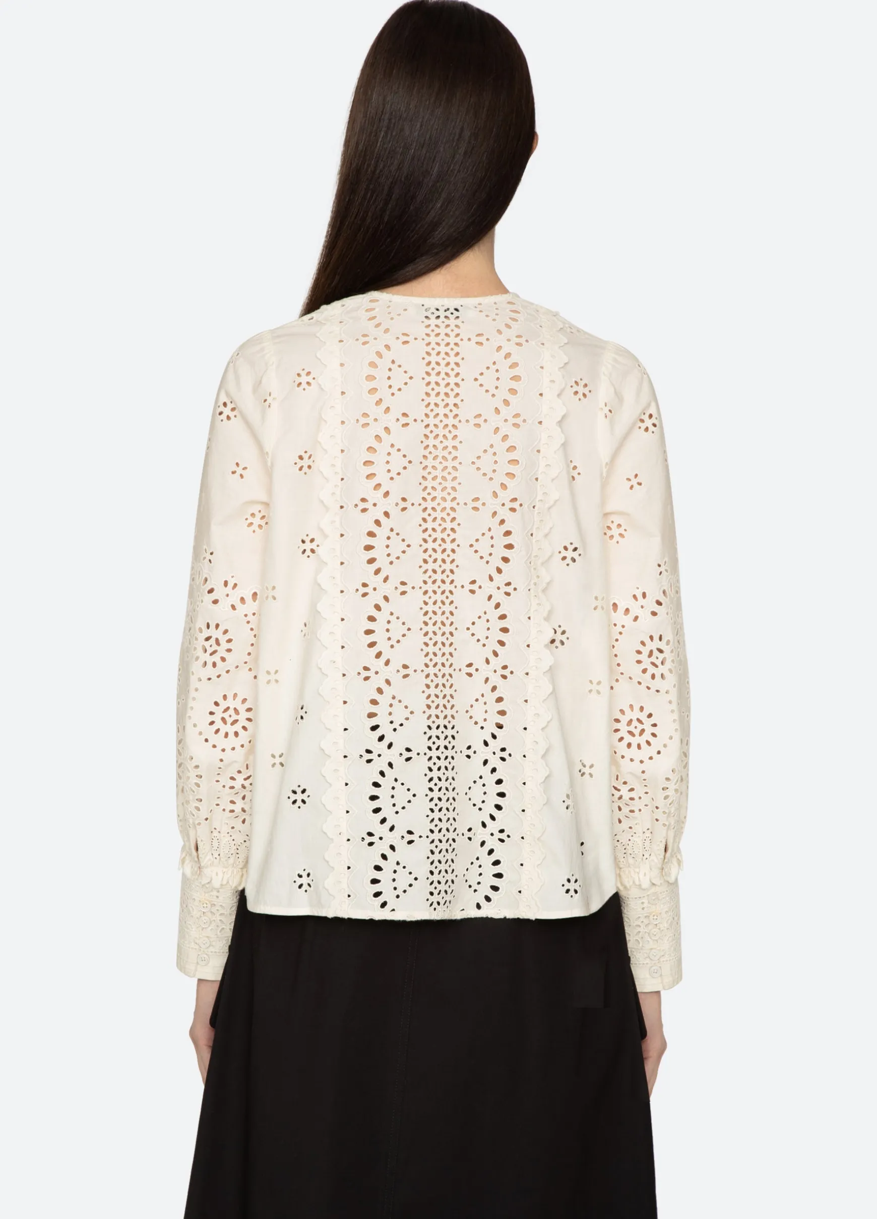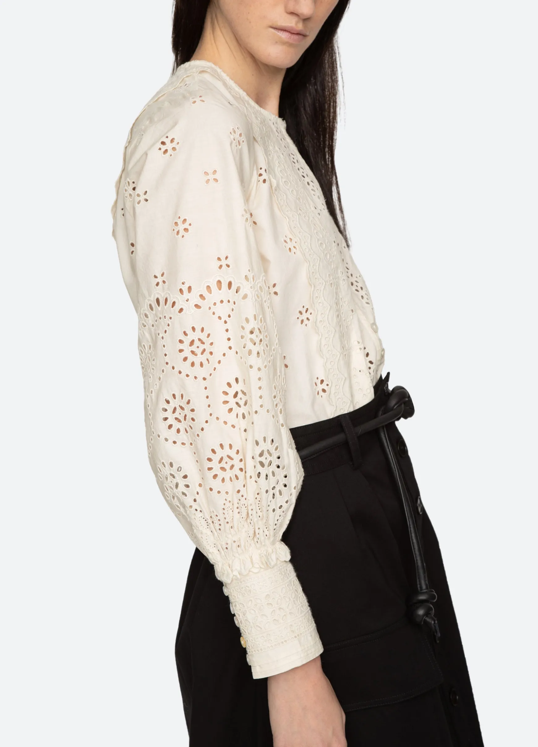 The Lainey embroidered button down top features long sleeves and delicate eyelet embroidery throughout.