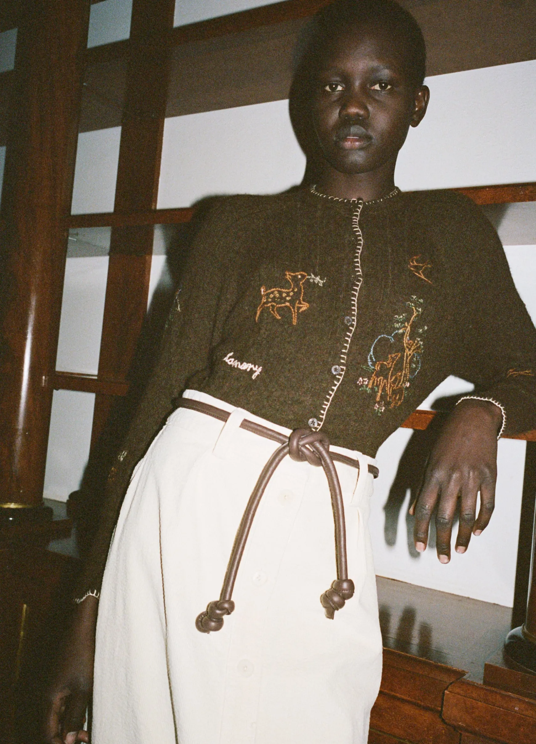 self-16% alpaca, 38% wool, 46% nylondecoration-100% cottonbutton frontmodel is 5’10” and wearing a size SThe Martha emb…