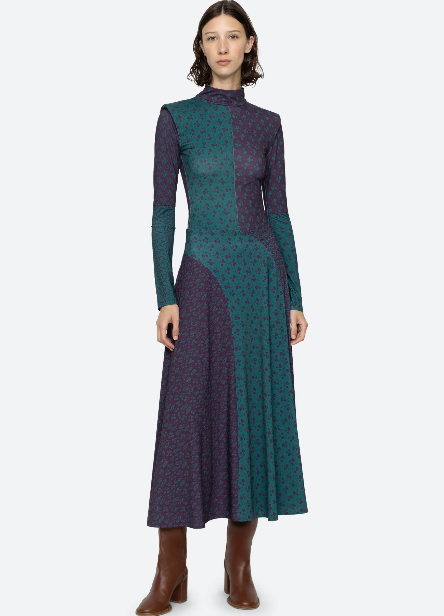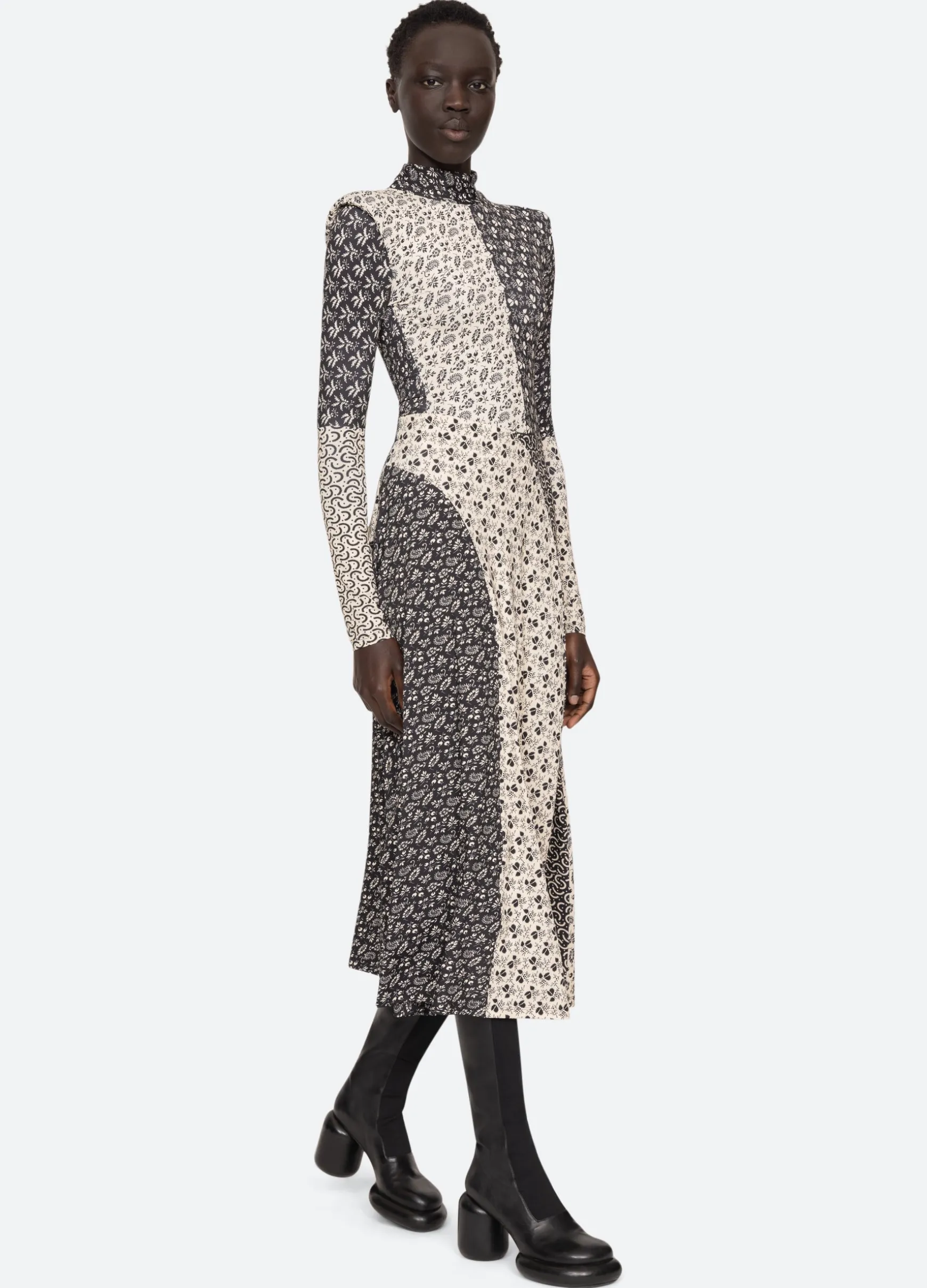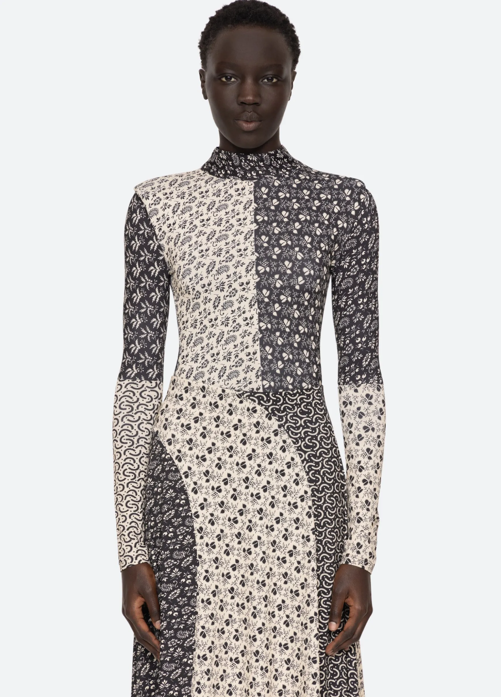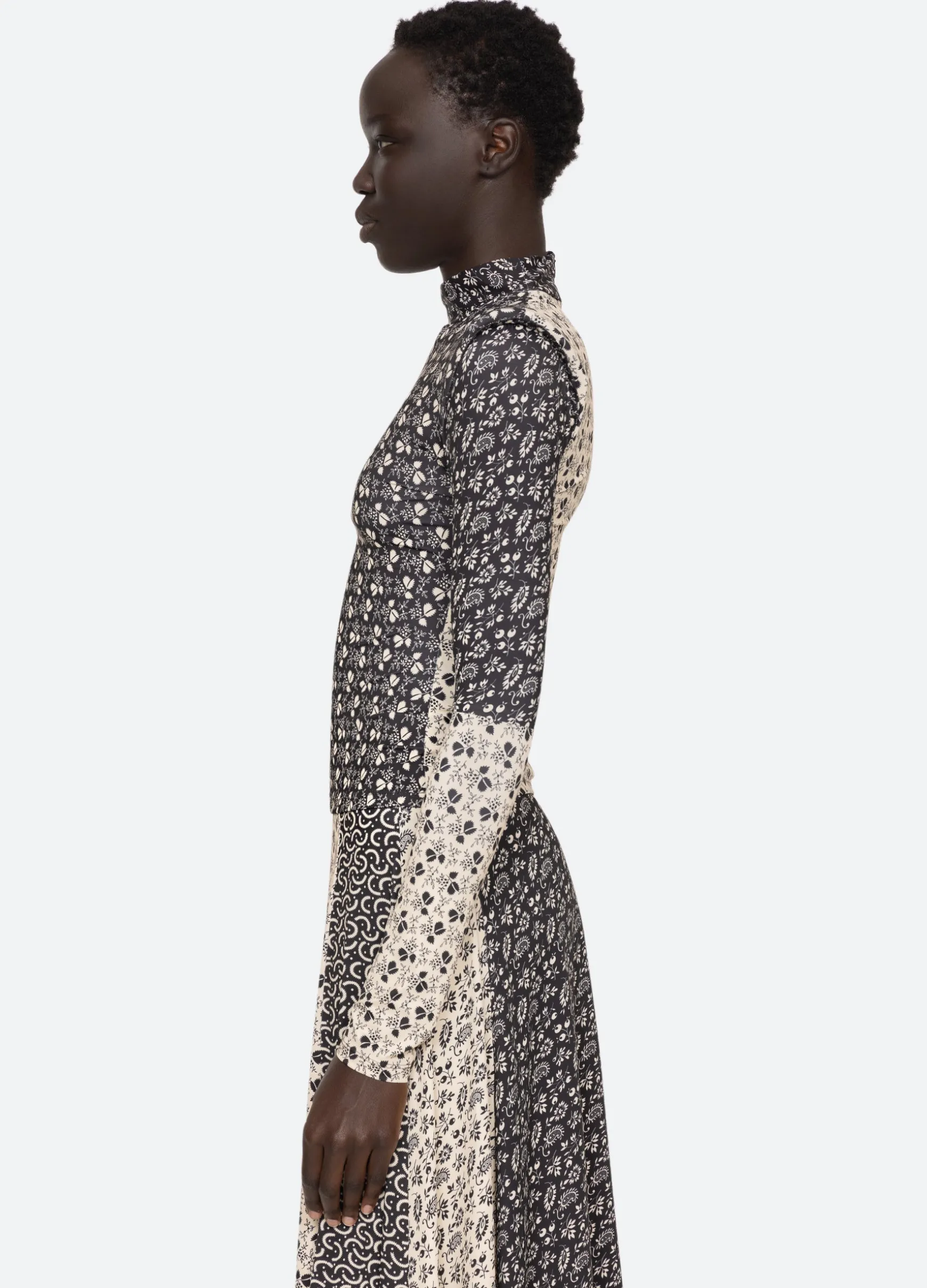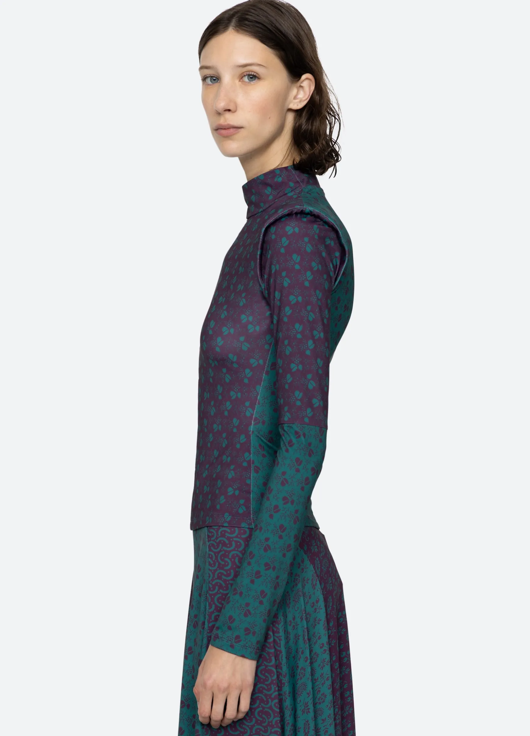 The Panna mix-up graphic print top features long sleeves, high neck and shoulder pads.