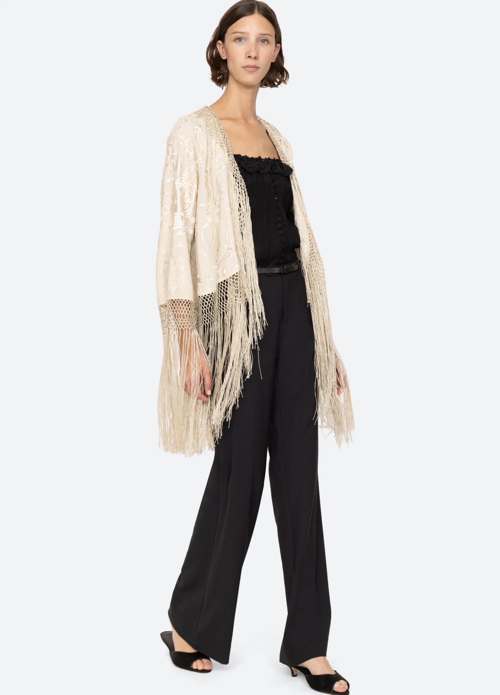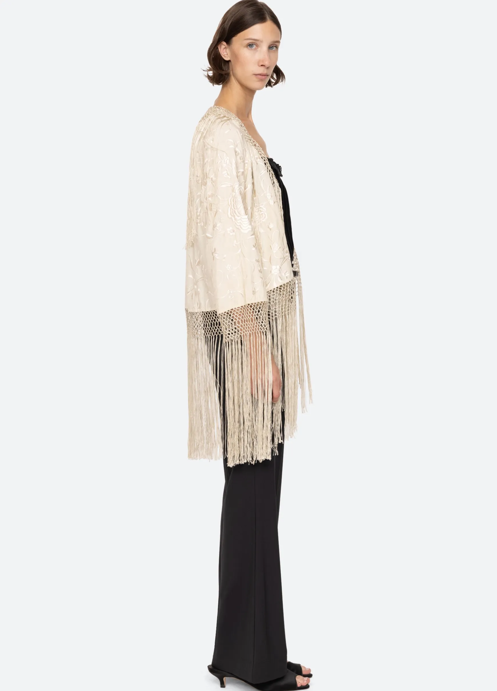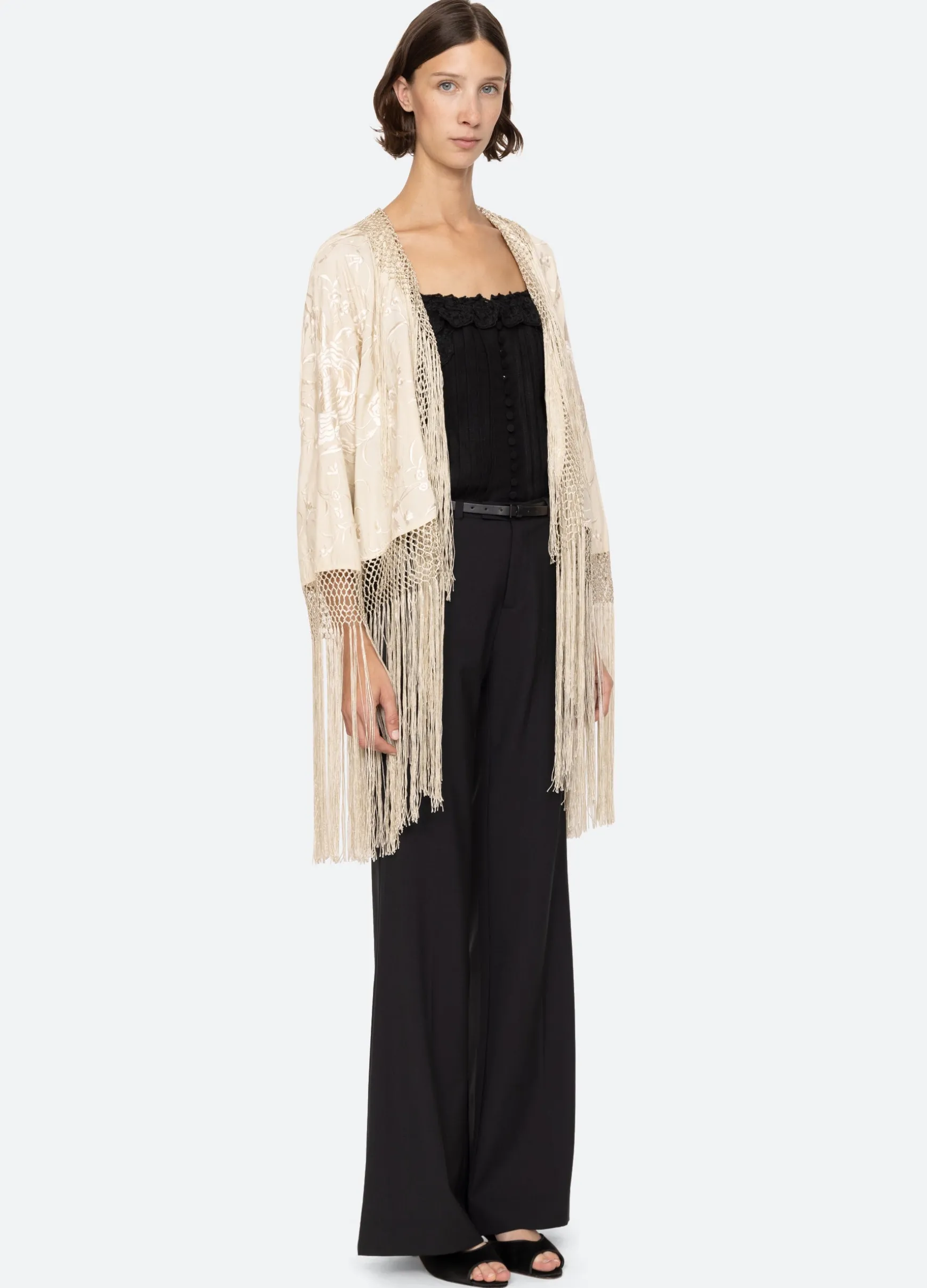 100% viscoseopen frontdesigned for a relaxed fitmodel is 5’10” and wearing a size S/MThe Priscilla embroidered shawl fe…