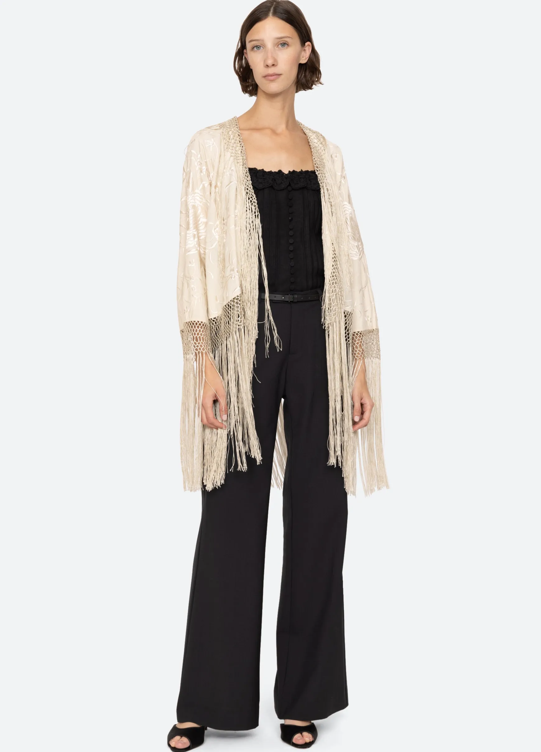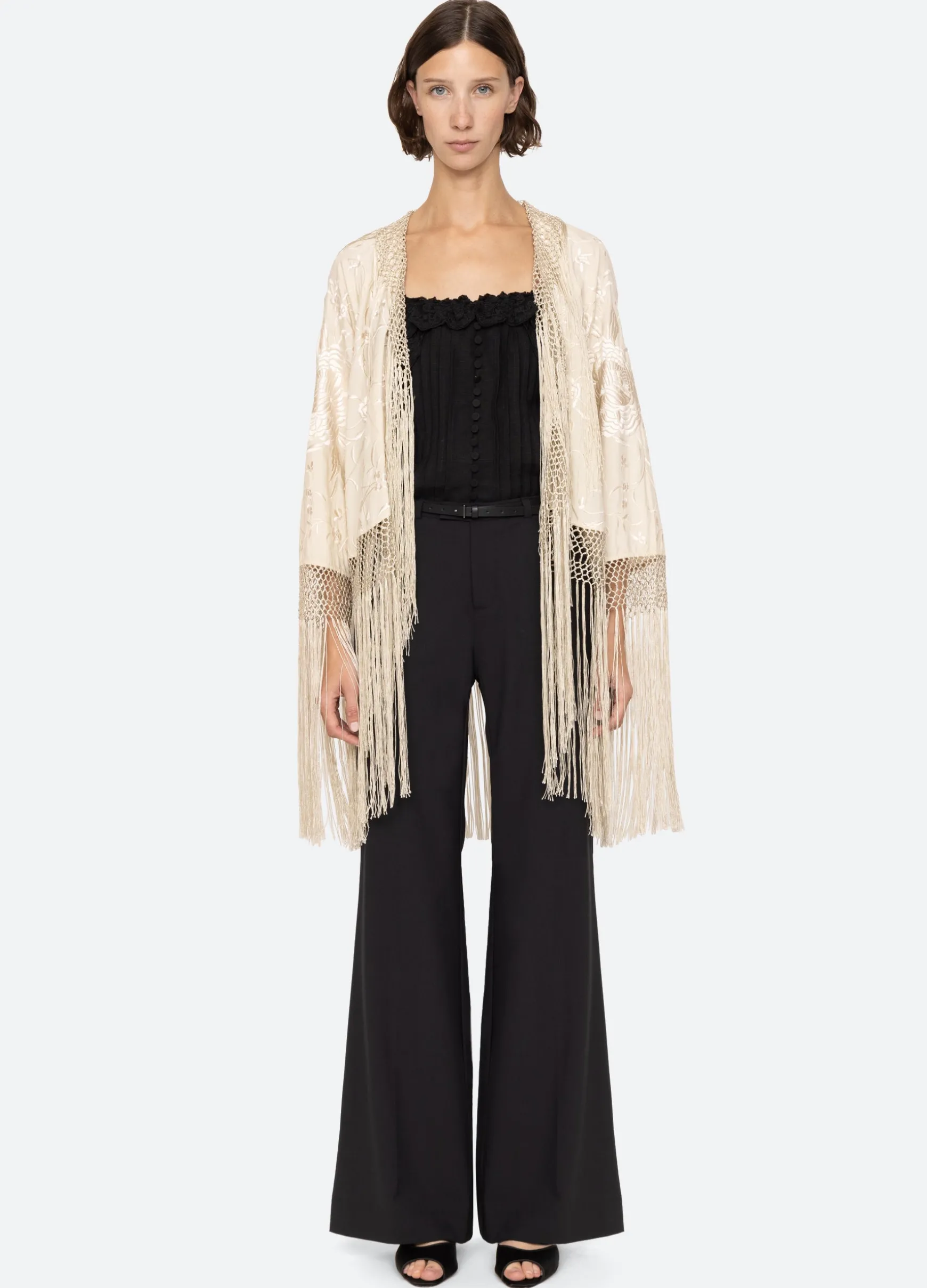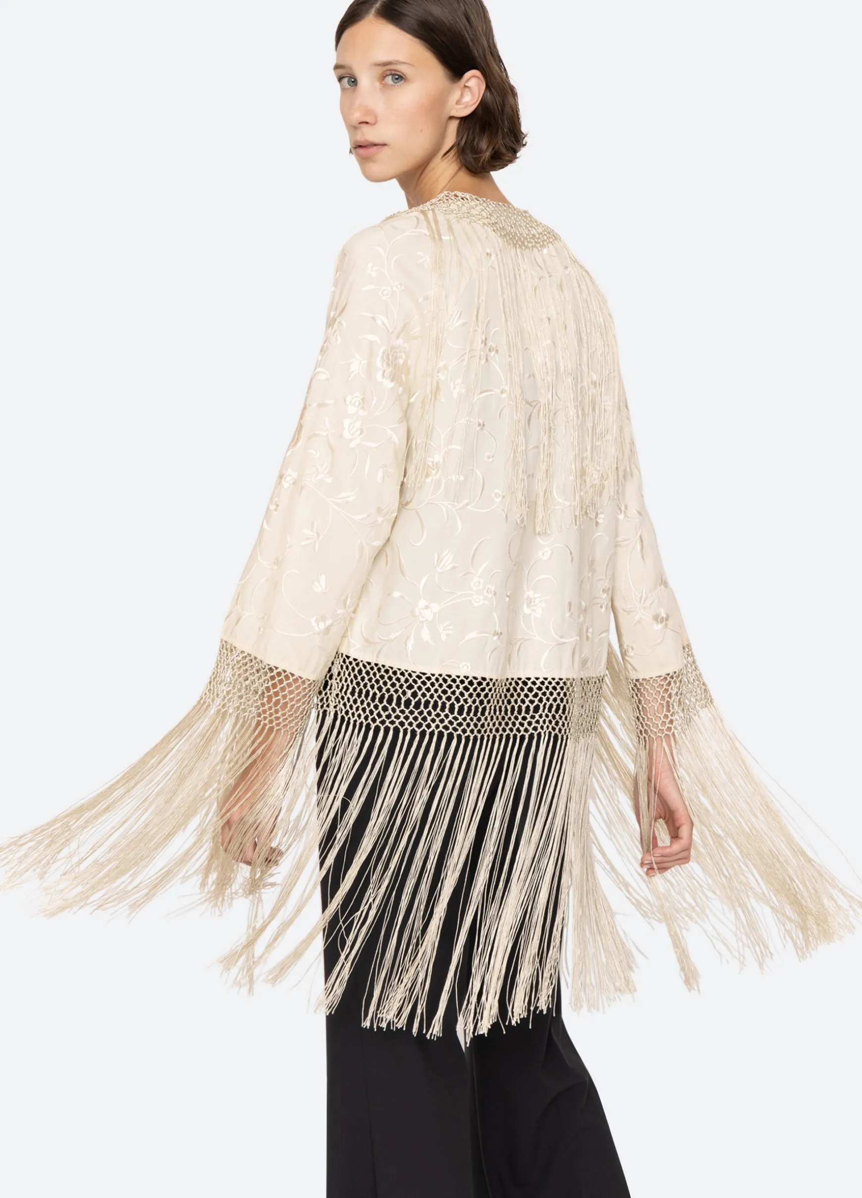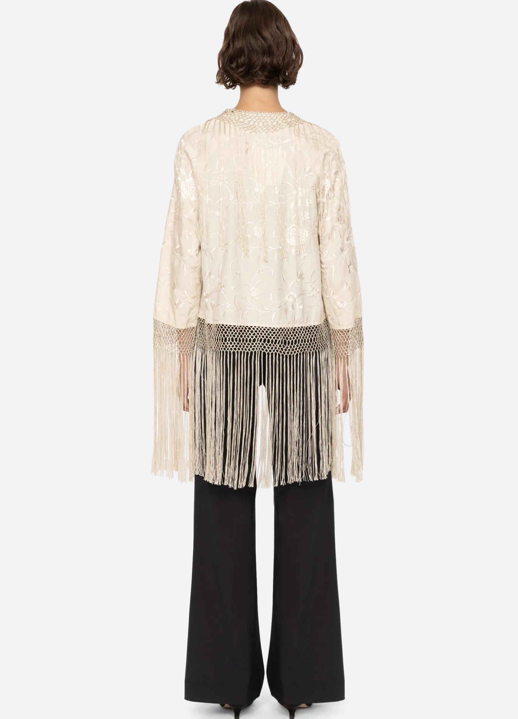 100% viscoseopen frontdesigned for a relaxed fitmodel is 5’10” and wearing a size S/MThe Priscilla embroidered shawl fe…