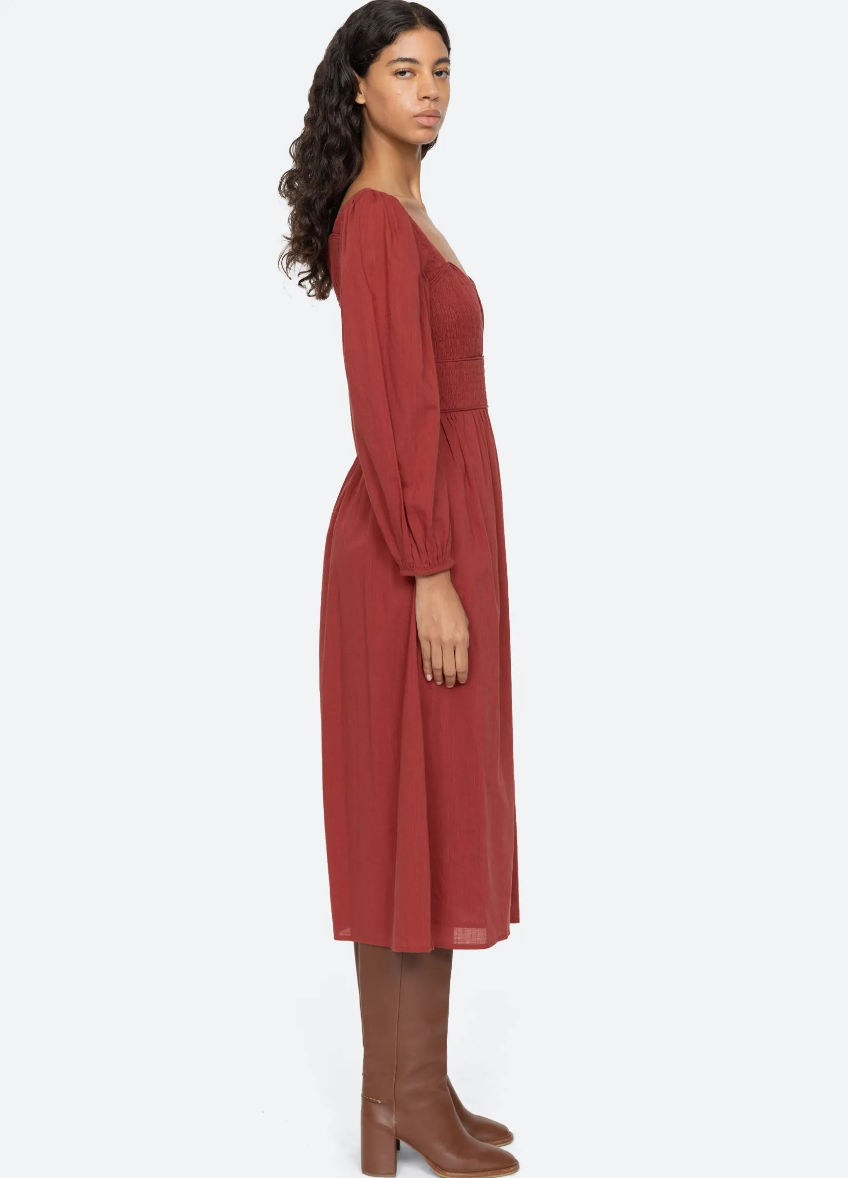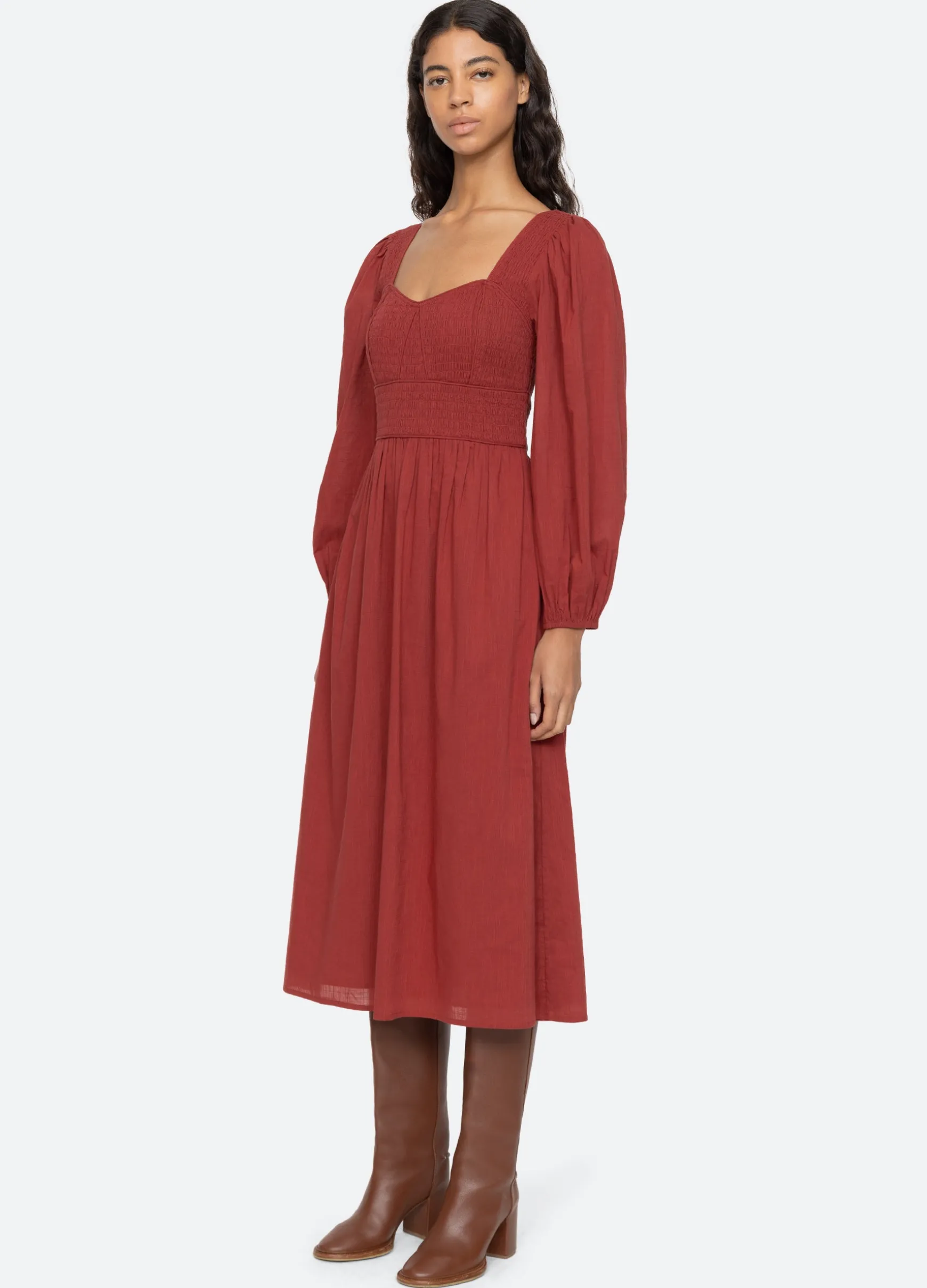 The Renata long sleeve dress features a sweetheart neckline, long puff sleeves and smocked bodice.