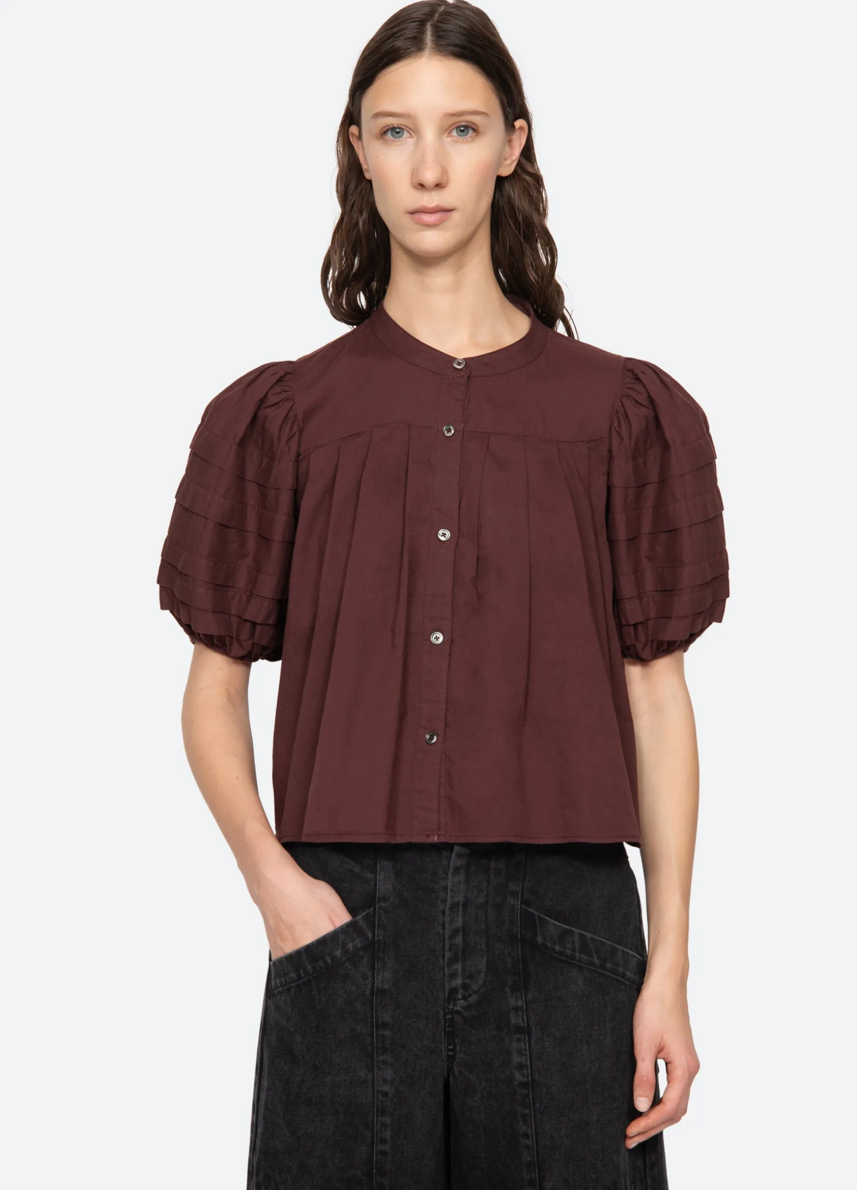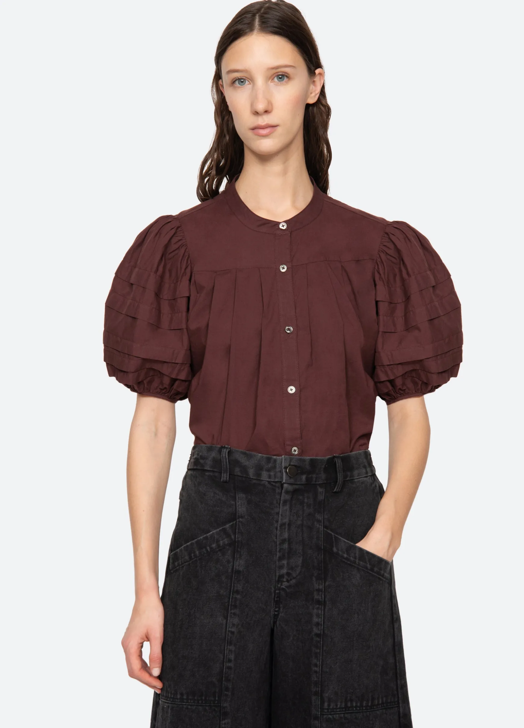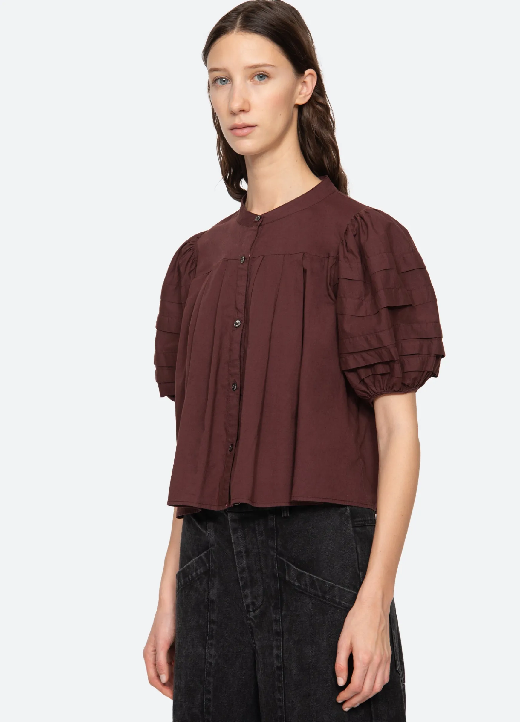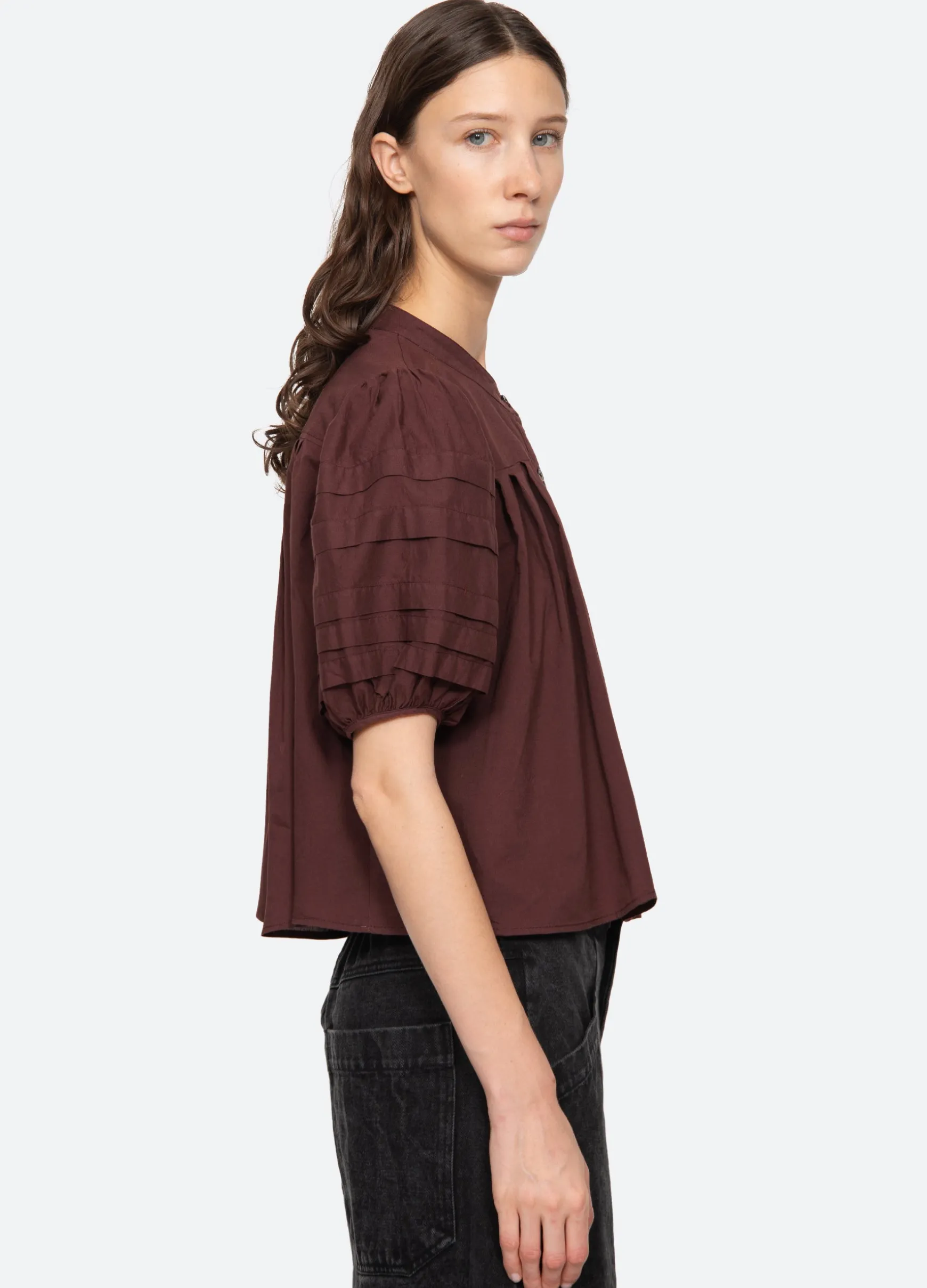 The Renata top features puff sleeves with pleated detailing and button front closure. Designed for an easy, relaxed fit.