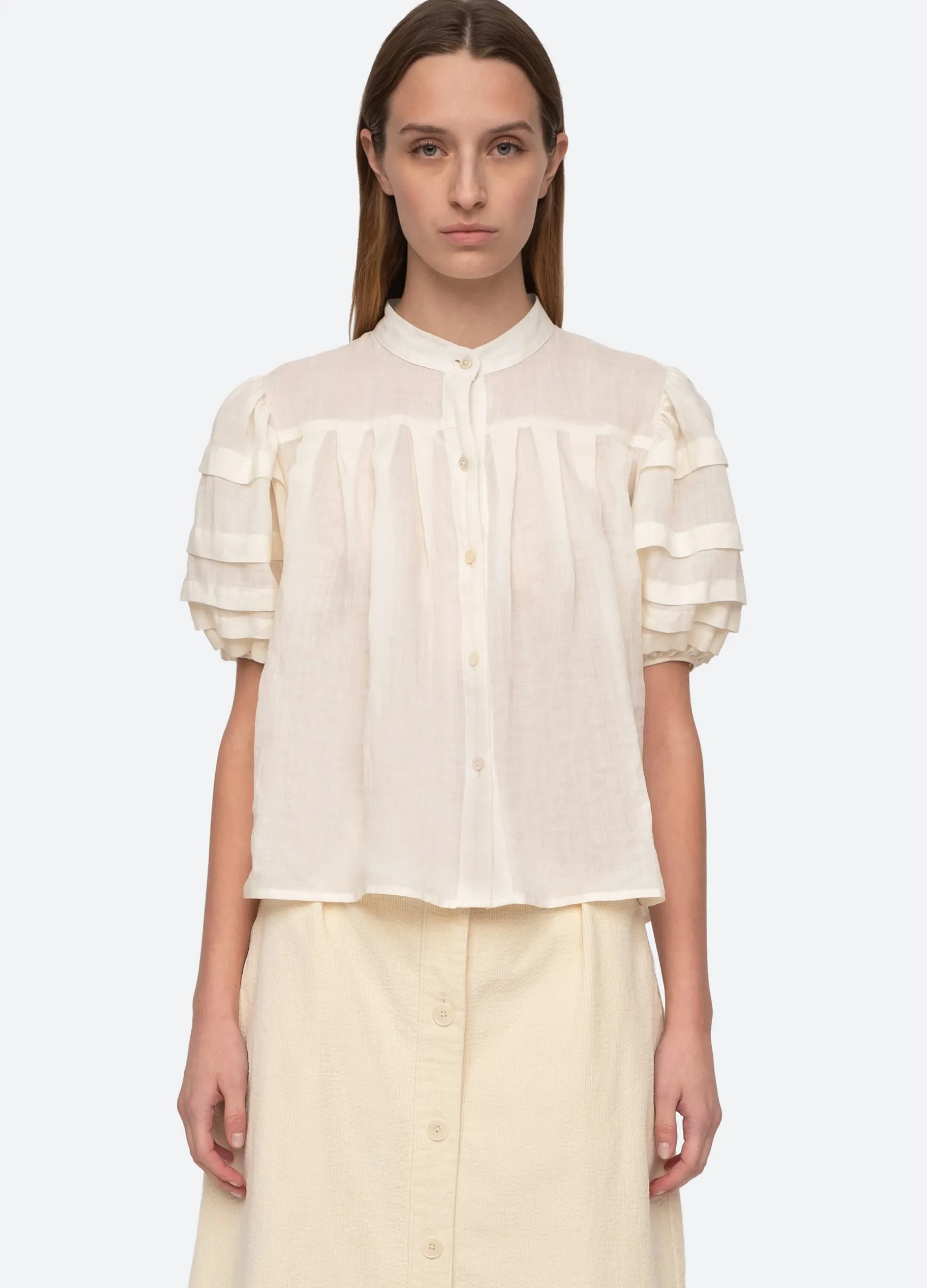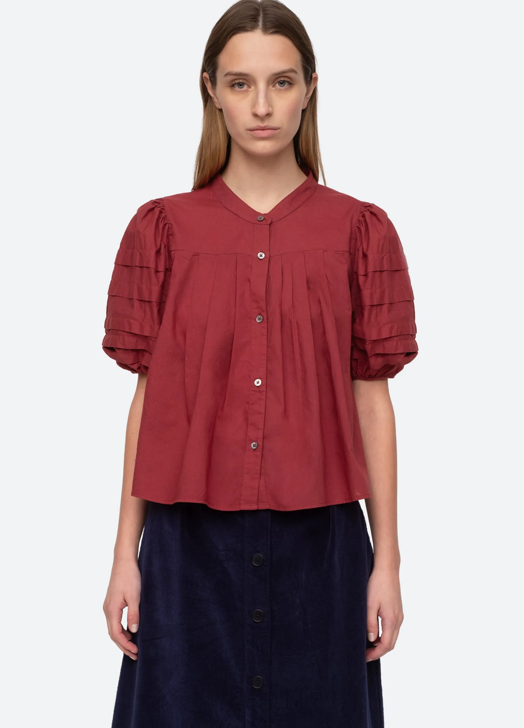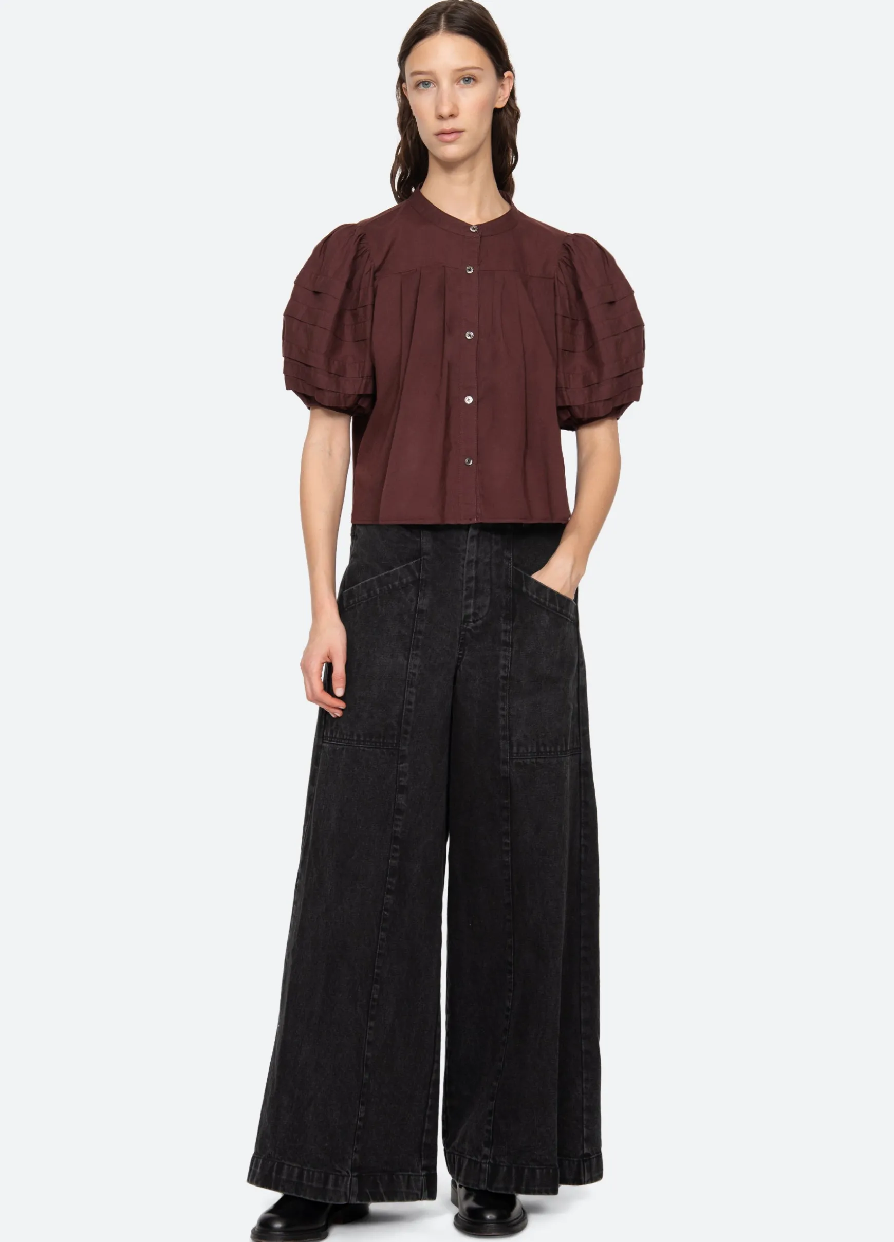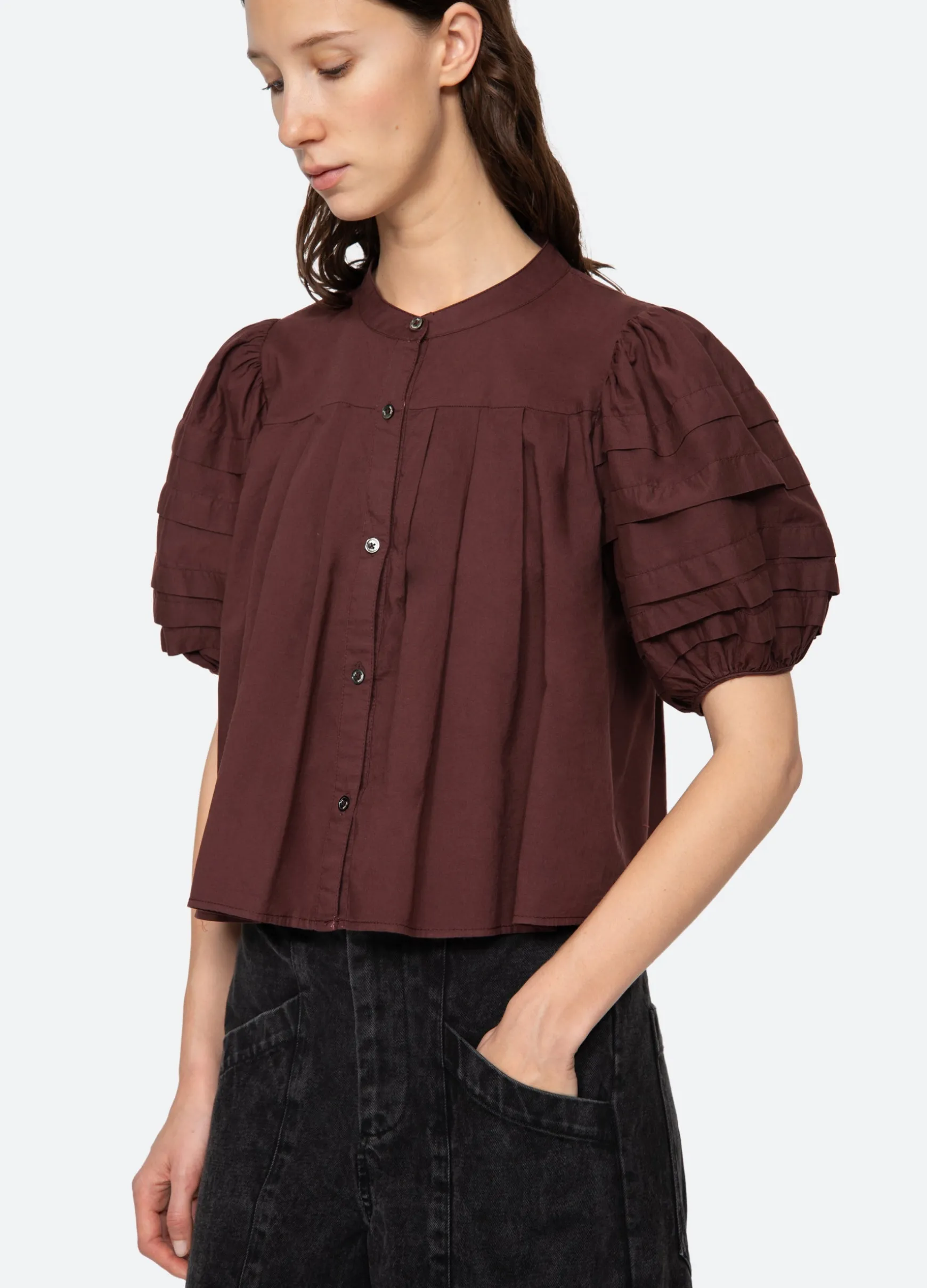 The Renata top features puff sleeves with pleated detailing and button front closure. Designed for an easy, relaxed fit.