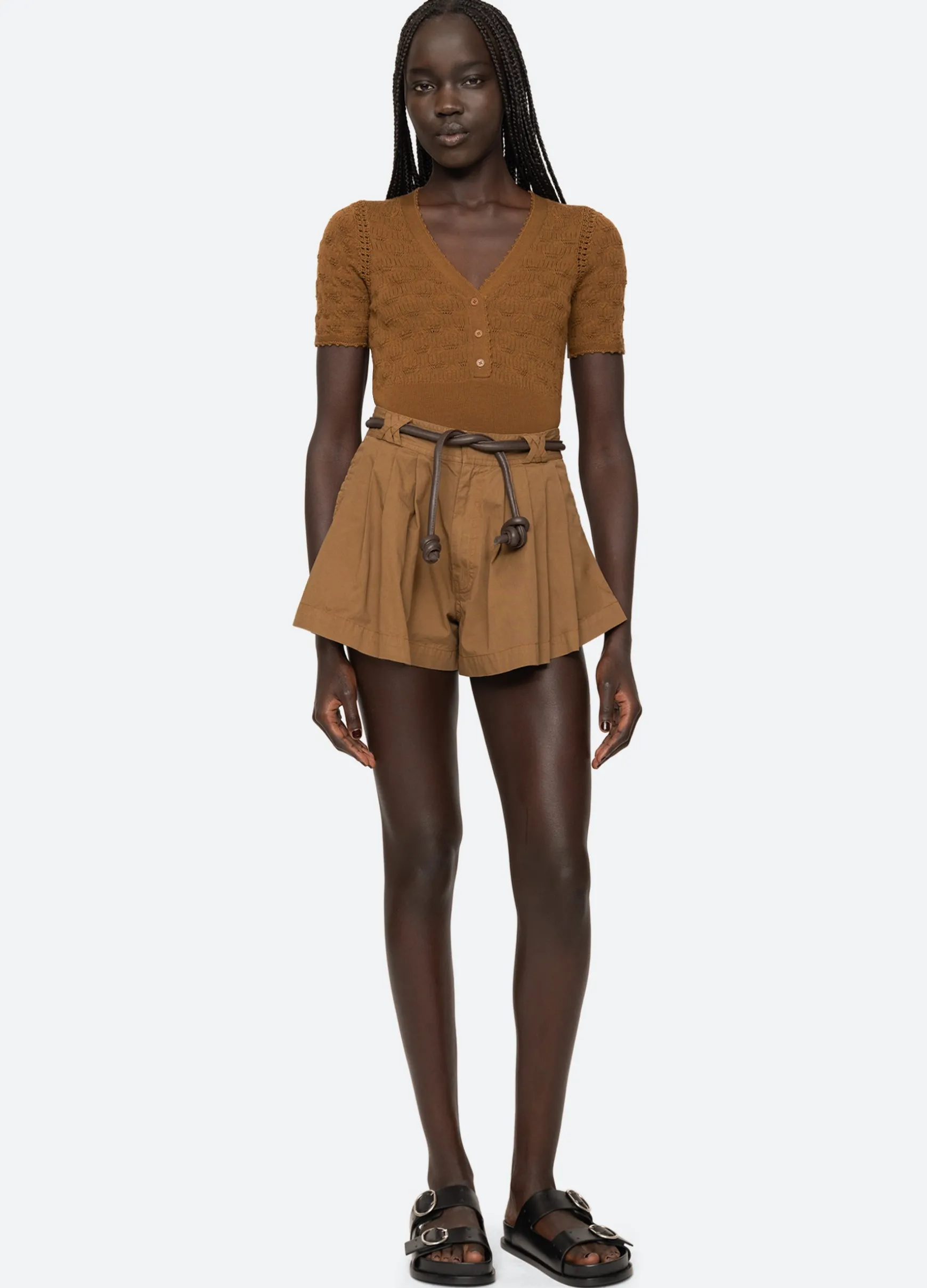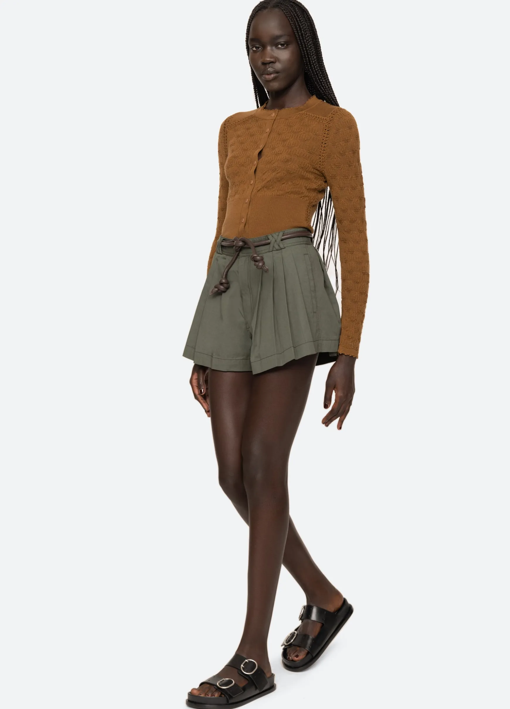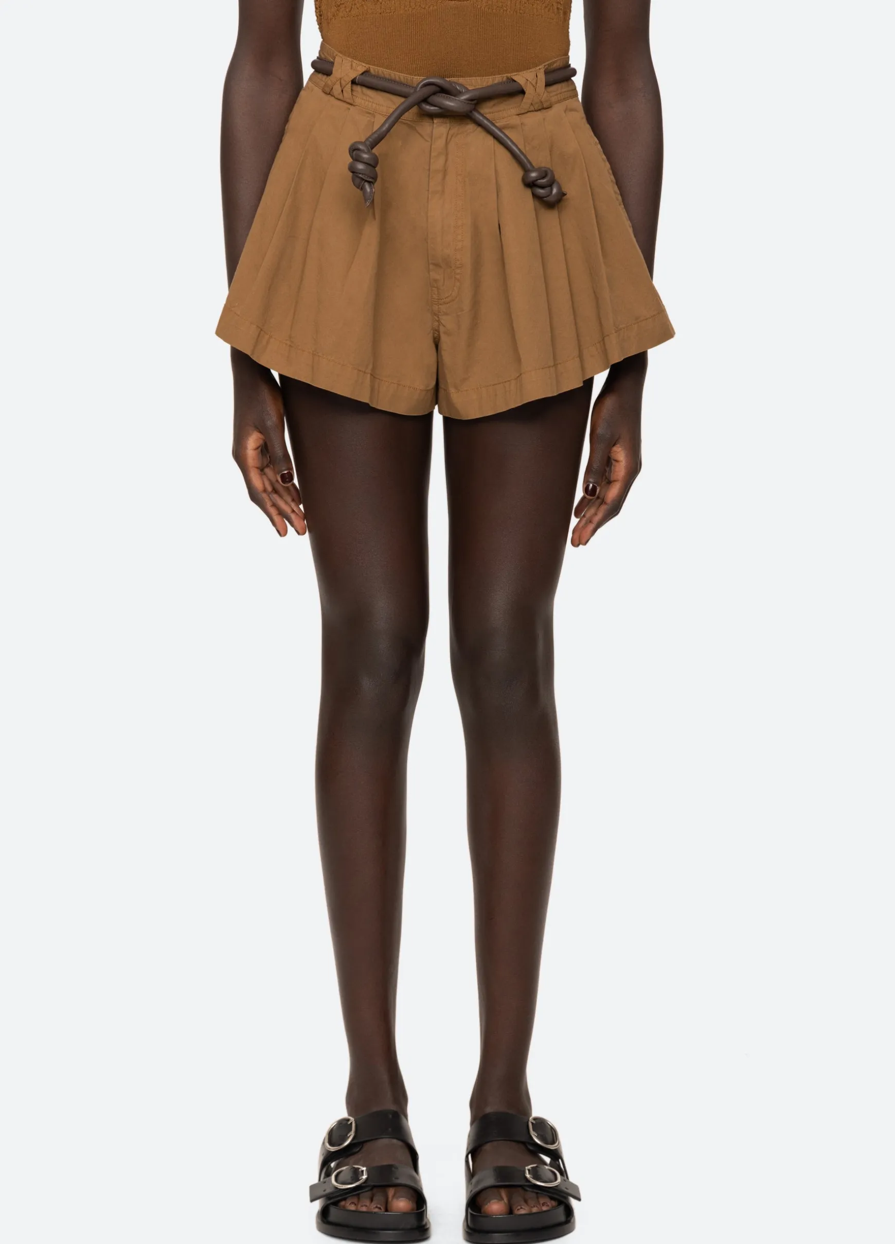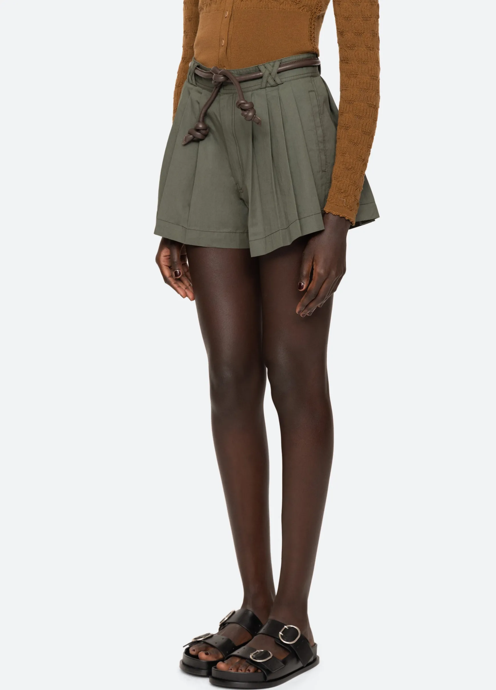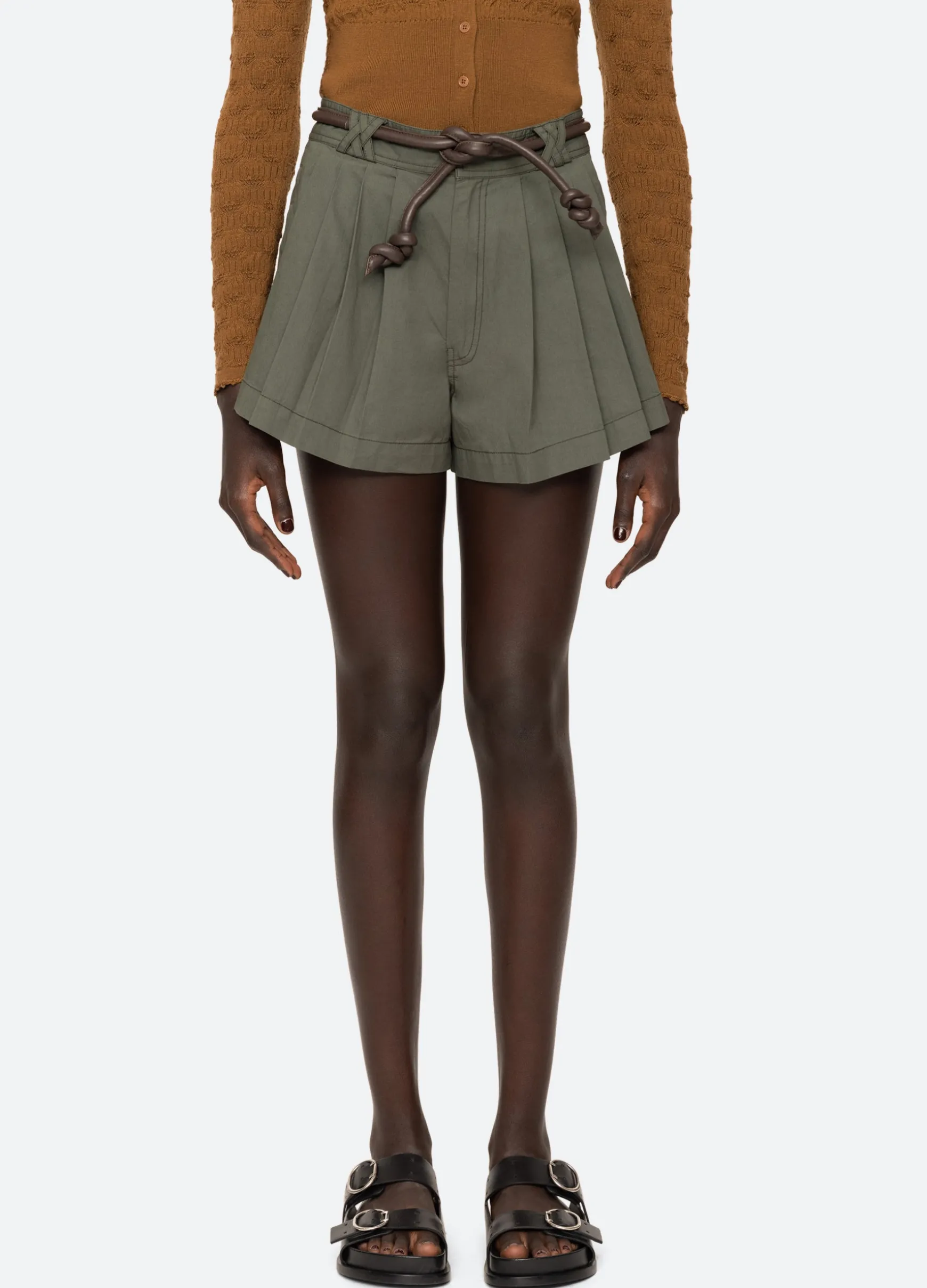 TheSamaka garment dyeshorts feature a high rise fit, pleated detailing and a removable leather belt.