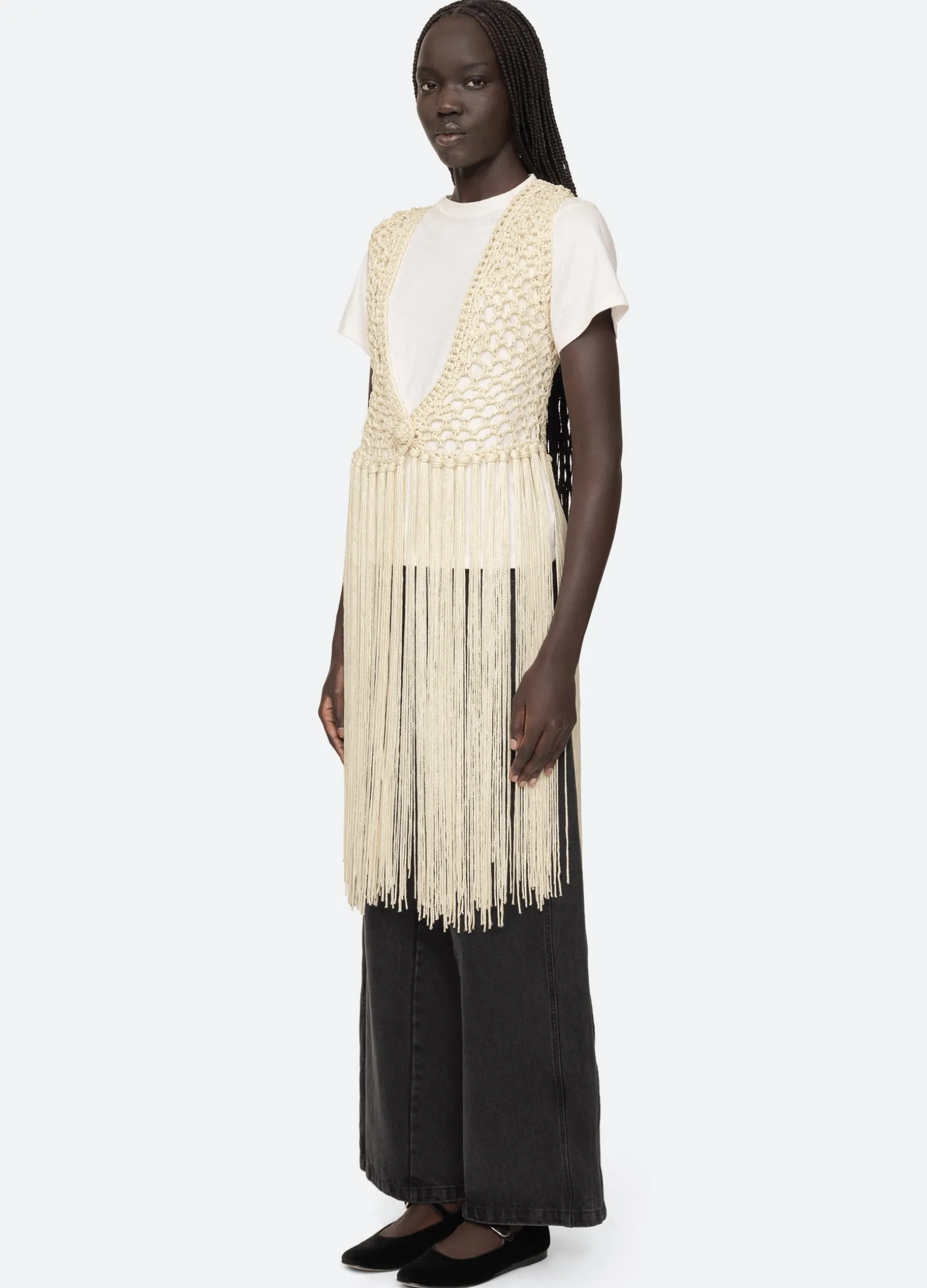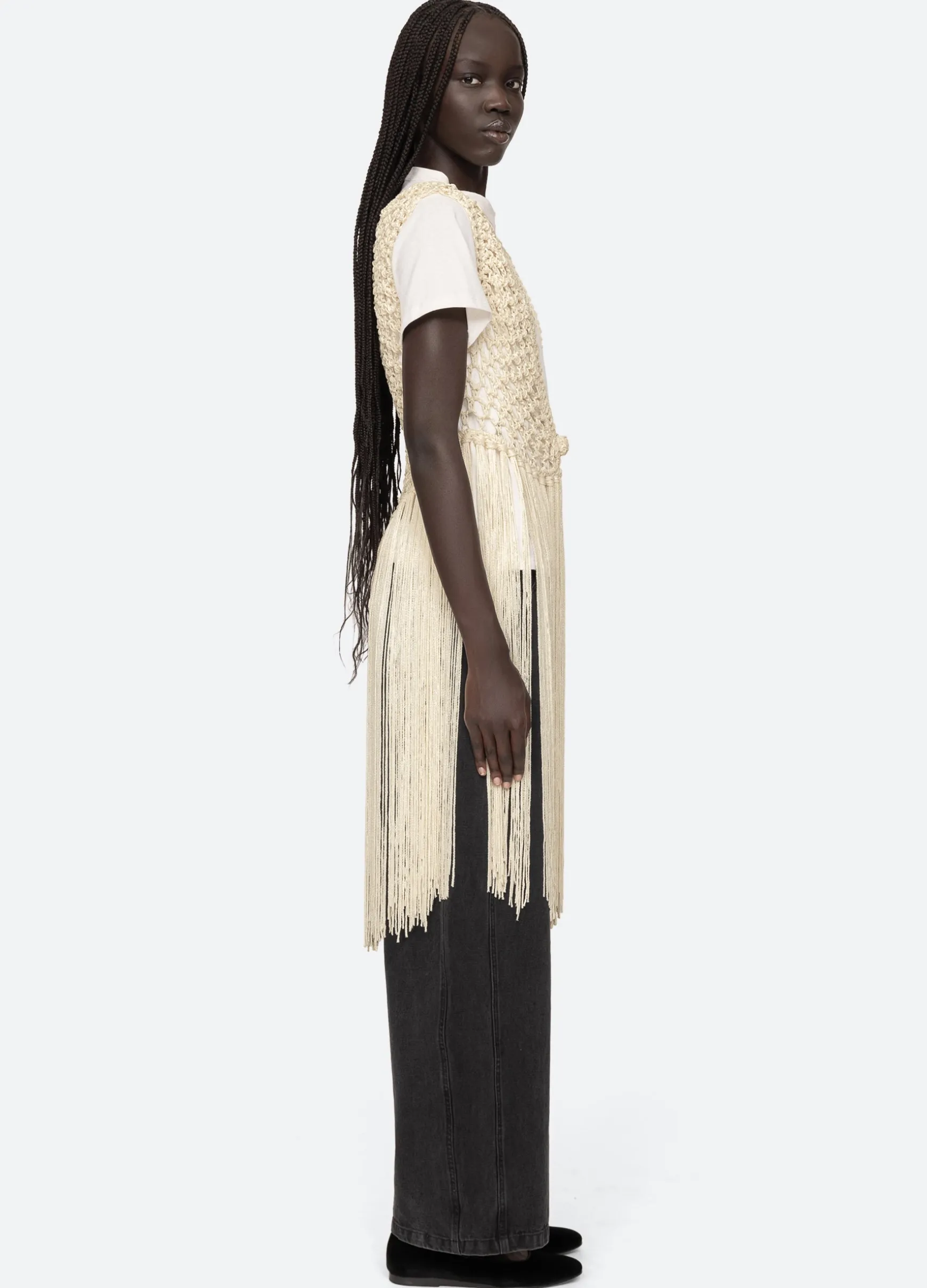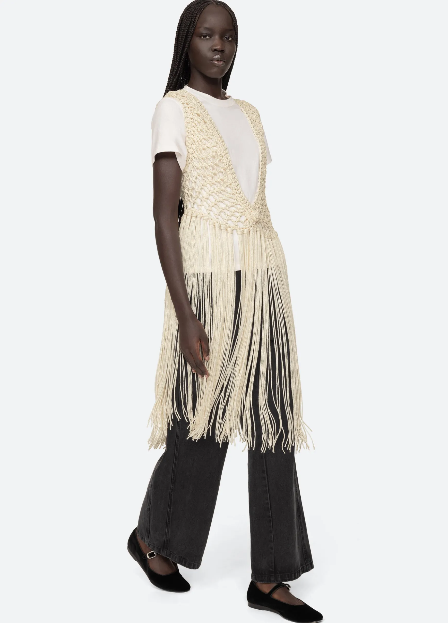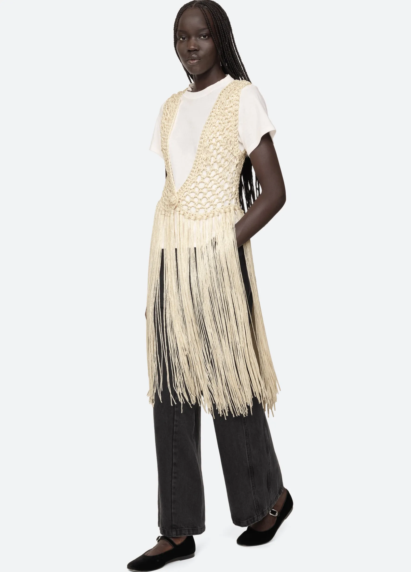 100% polyesterbutton front closuredesigned for a relaxed fitmodel is 5’10” and wearing a size S/MThe Simonne macramé v…
