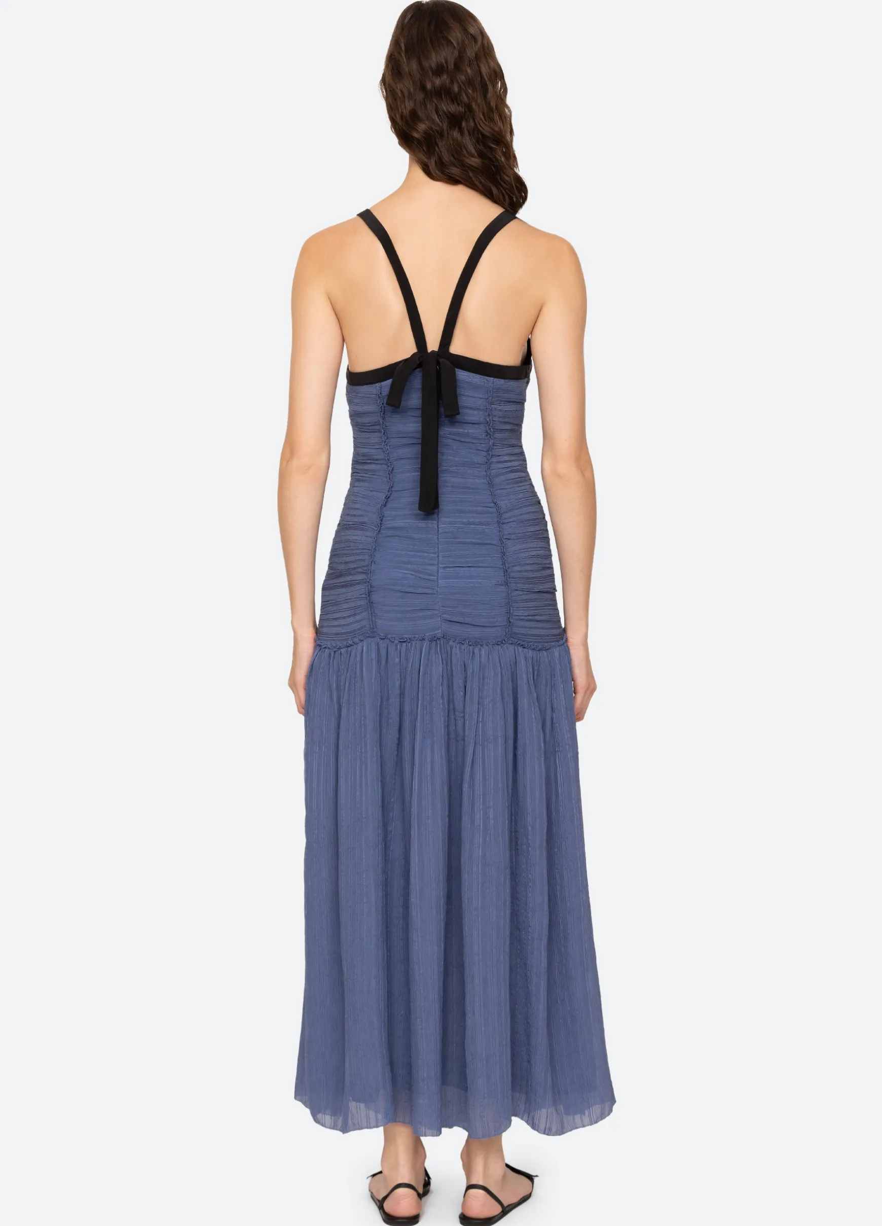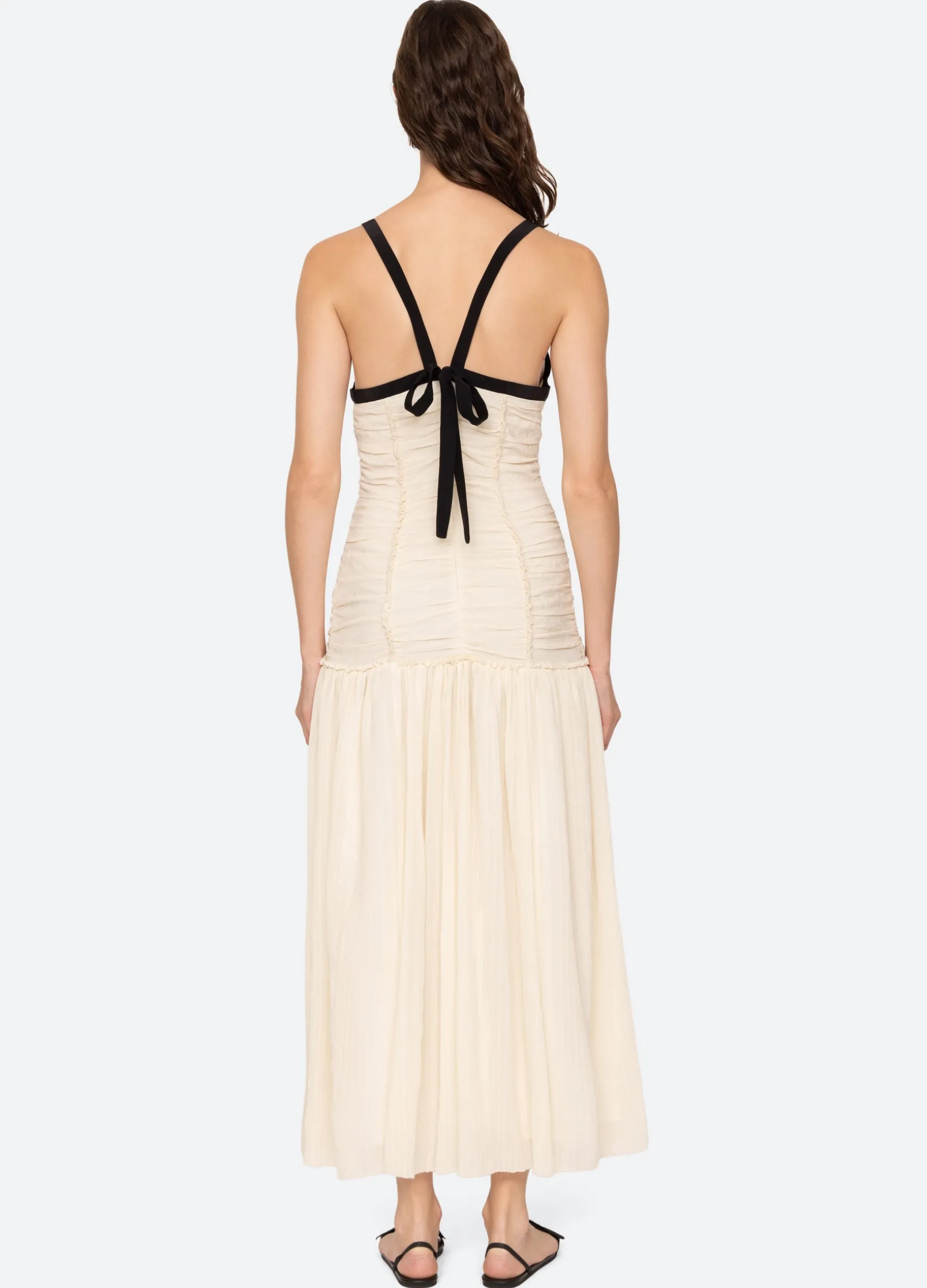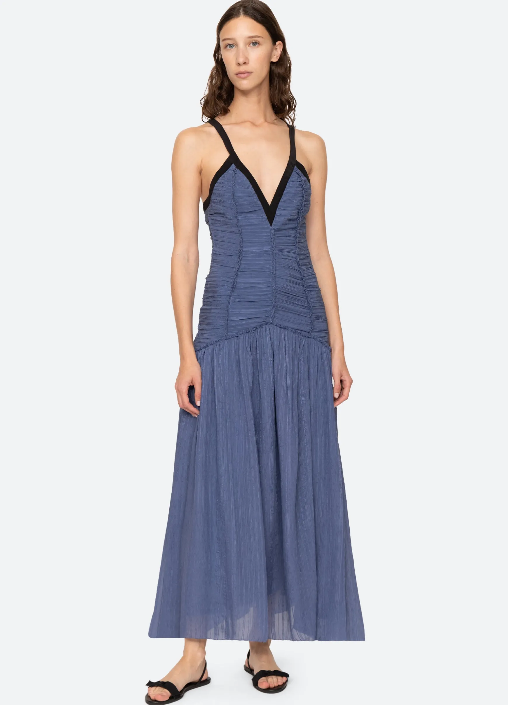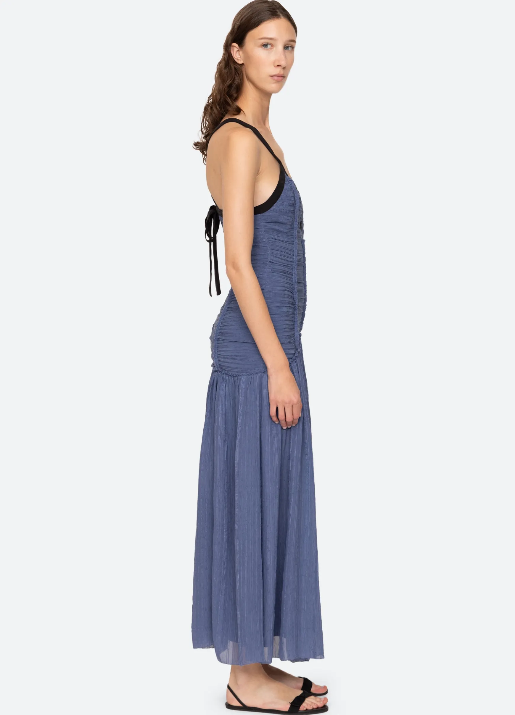 TheTatum dress features a v-neckline, ruchedbodicewithpleating and ruffle detailing.