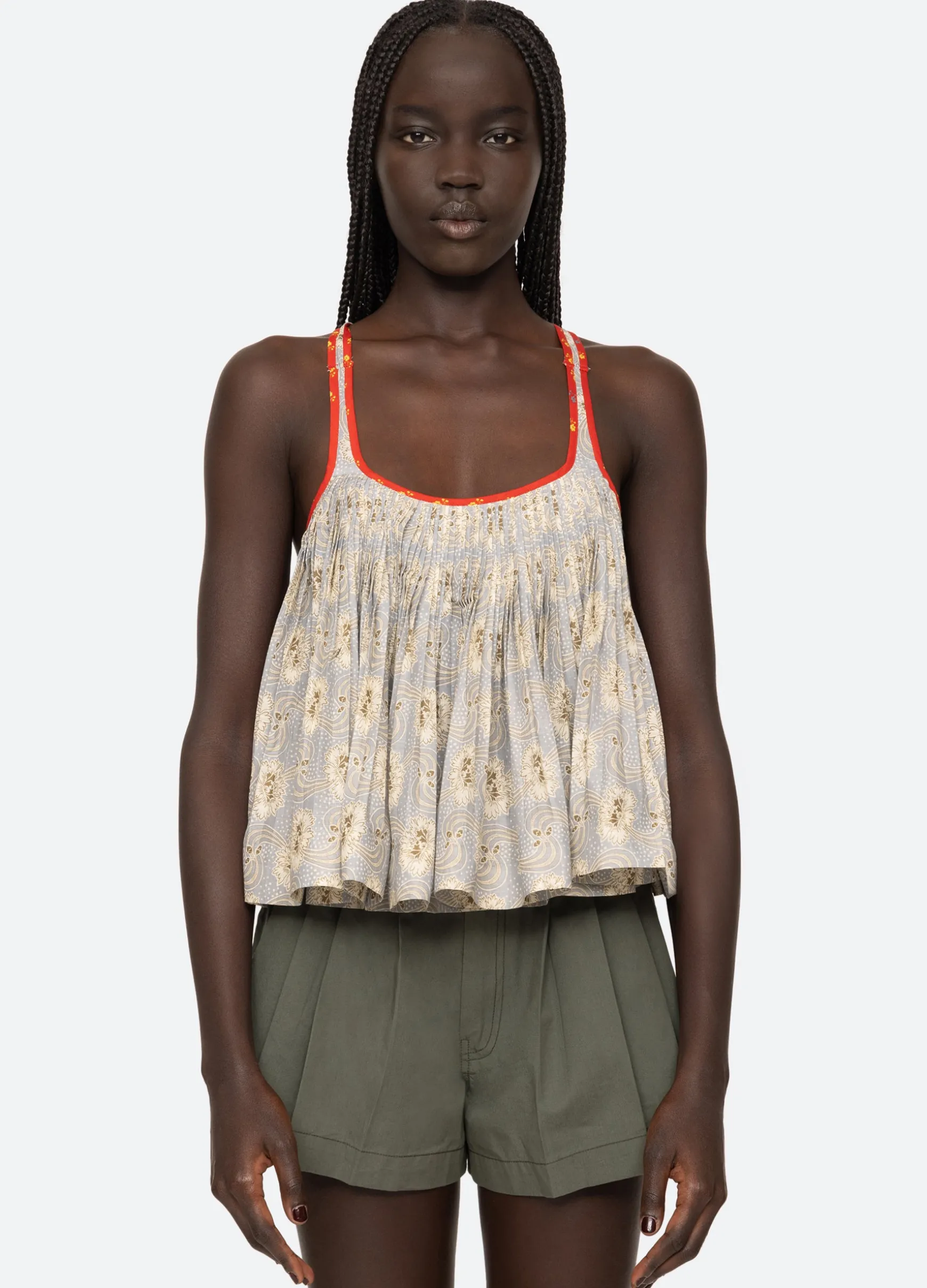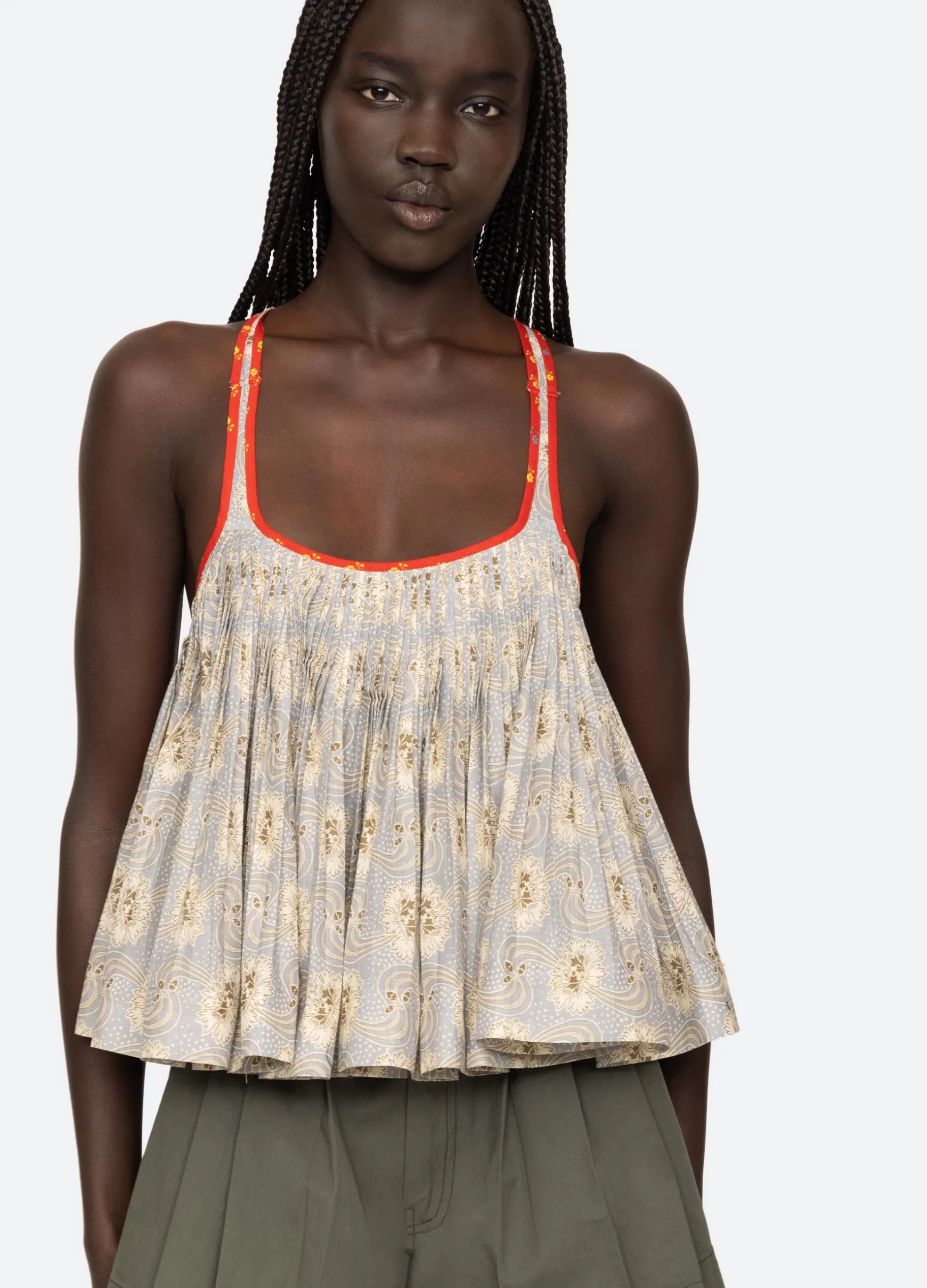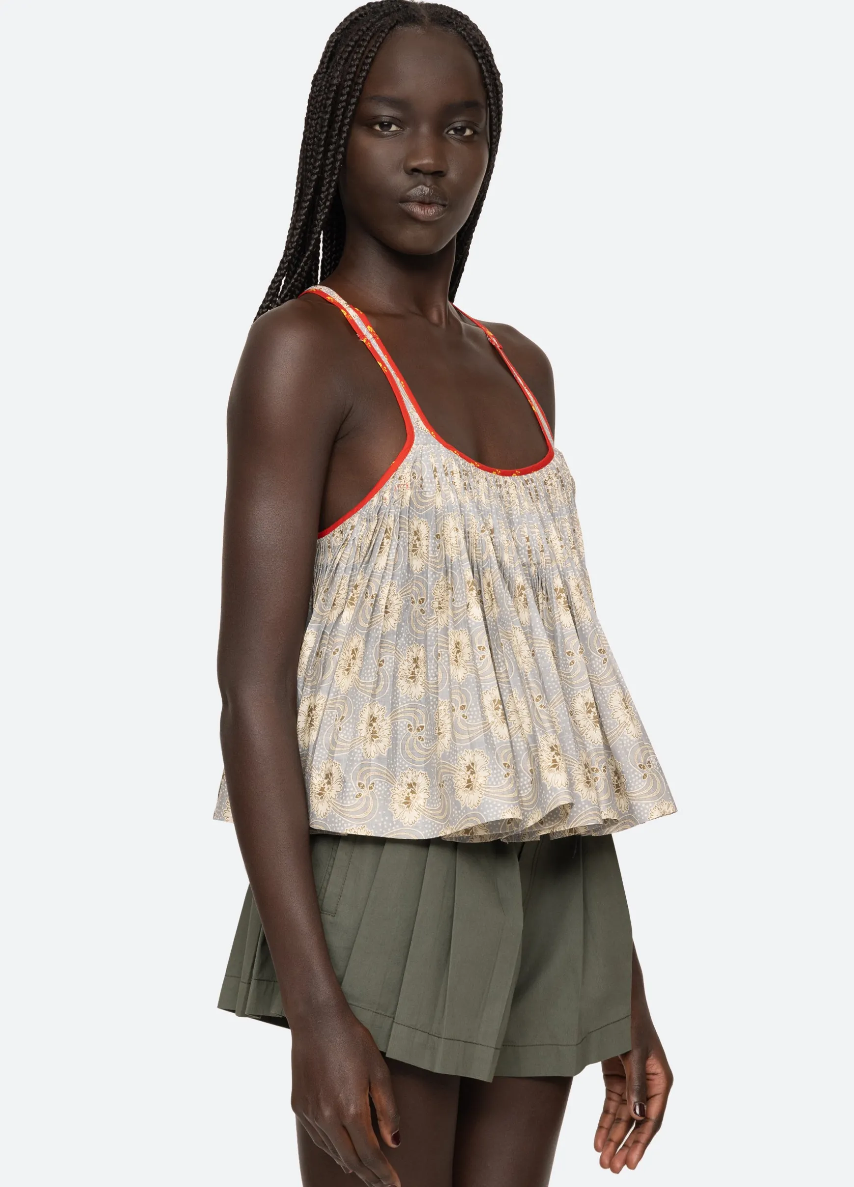 The Tima floral print top featurescontrast trim, pleated detailing andracerback.Designed for an easy, relaxed fit.