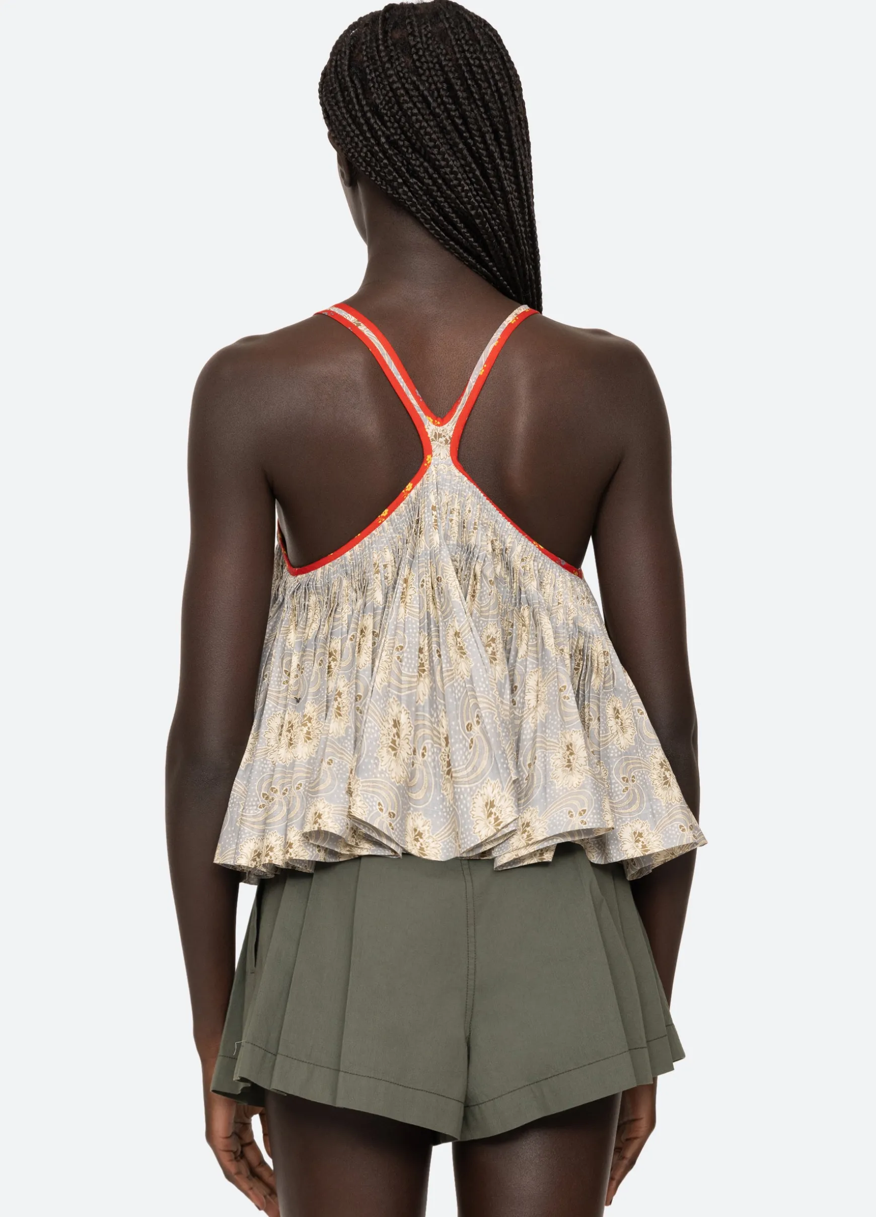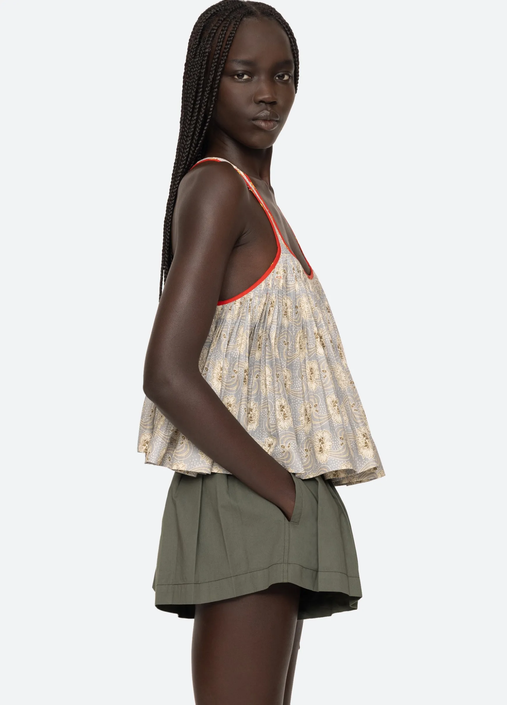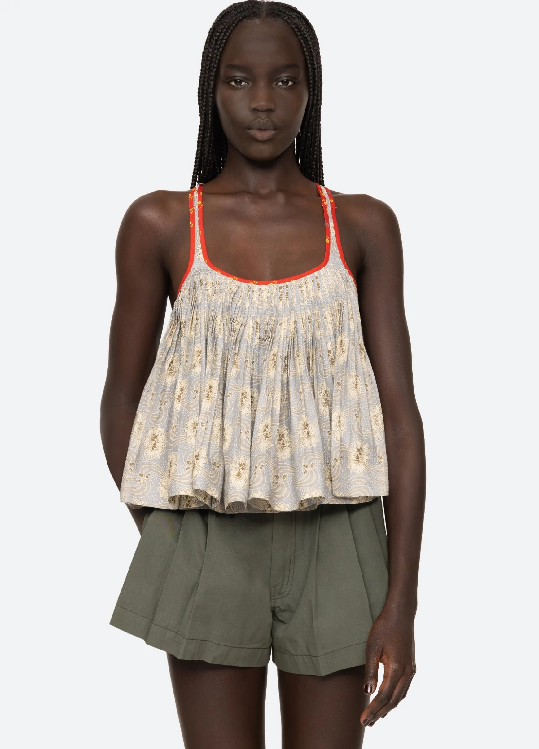 The Tima floral print top featurescontrast trim, pleated detailing andracerback.Designed for an easy, relaxed fit.