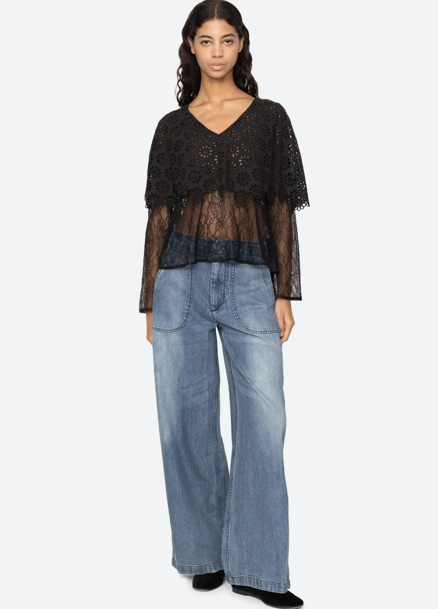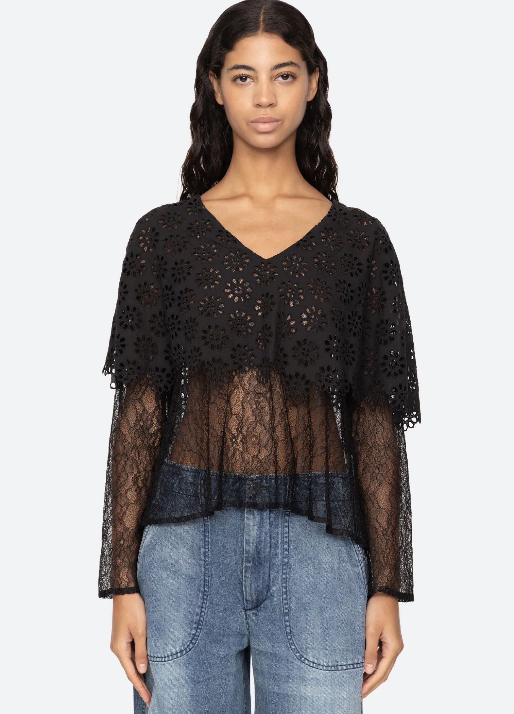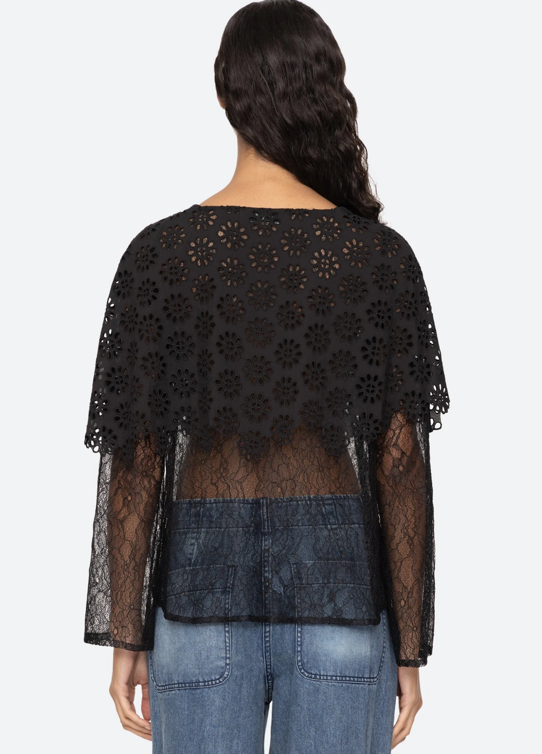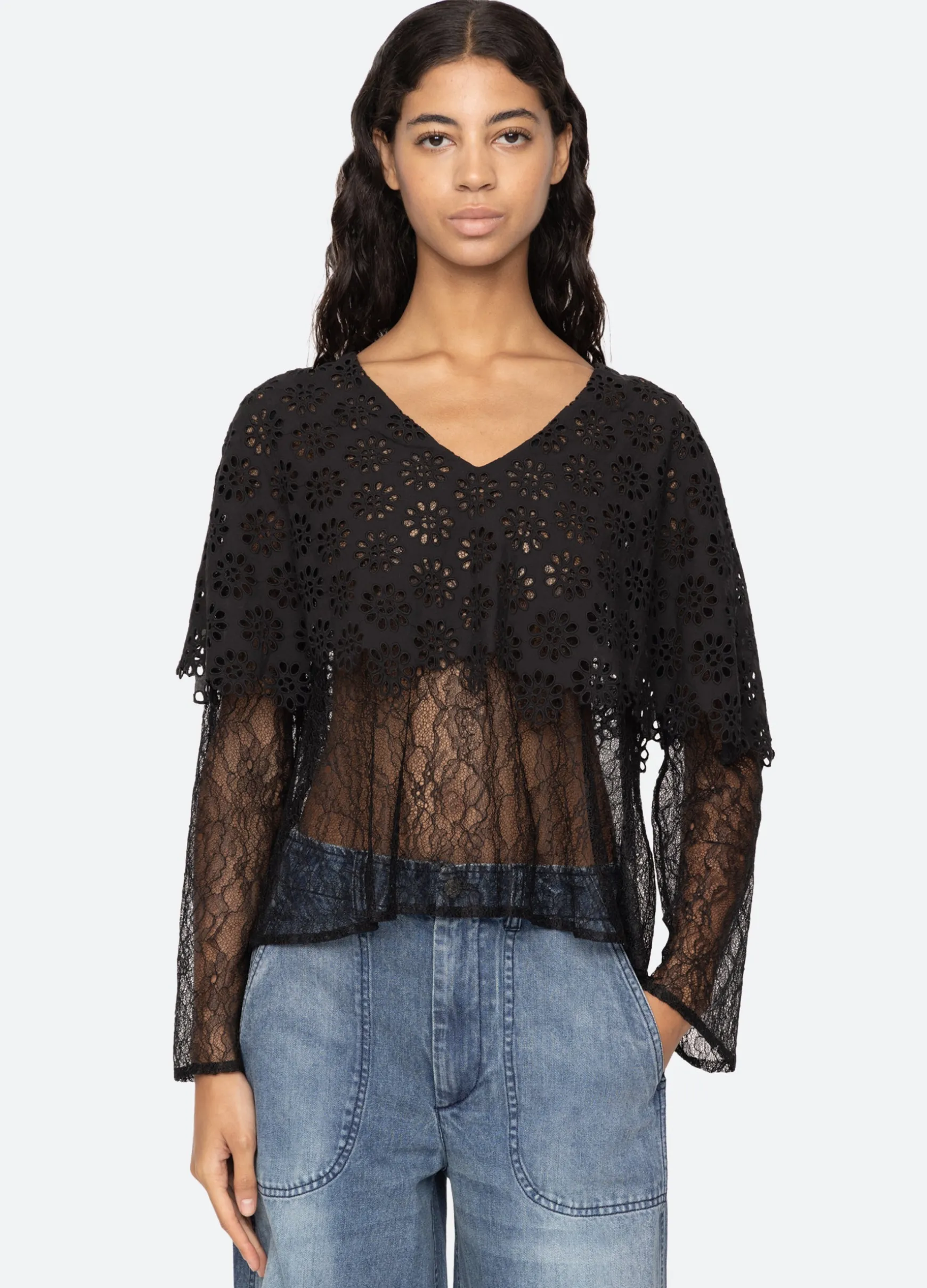 A online and in store exclusive. The Vale lace capelet top features long sleeves, v-neckline and delicate lace and embroidered detailing throughout.