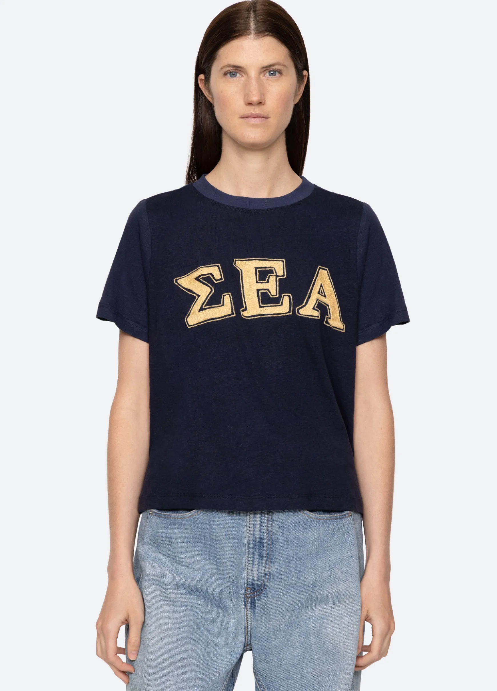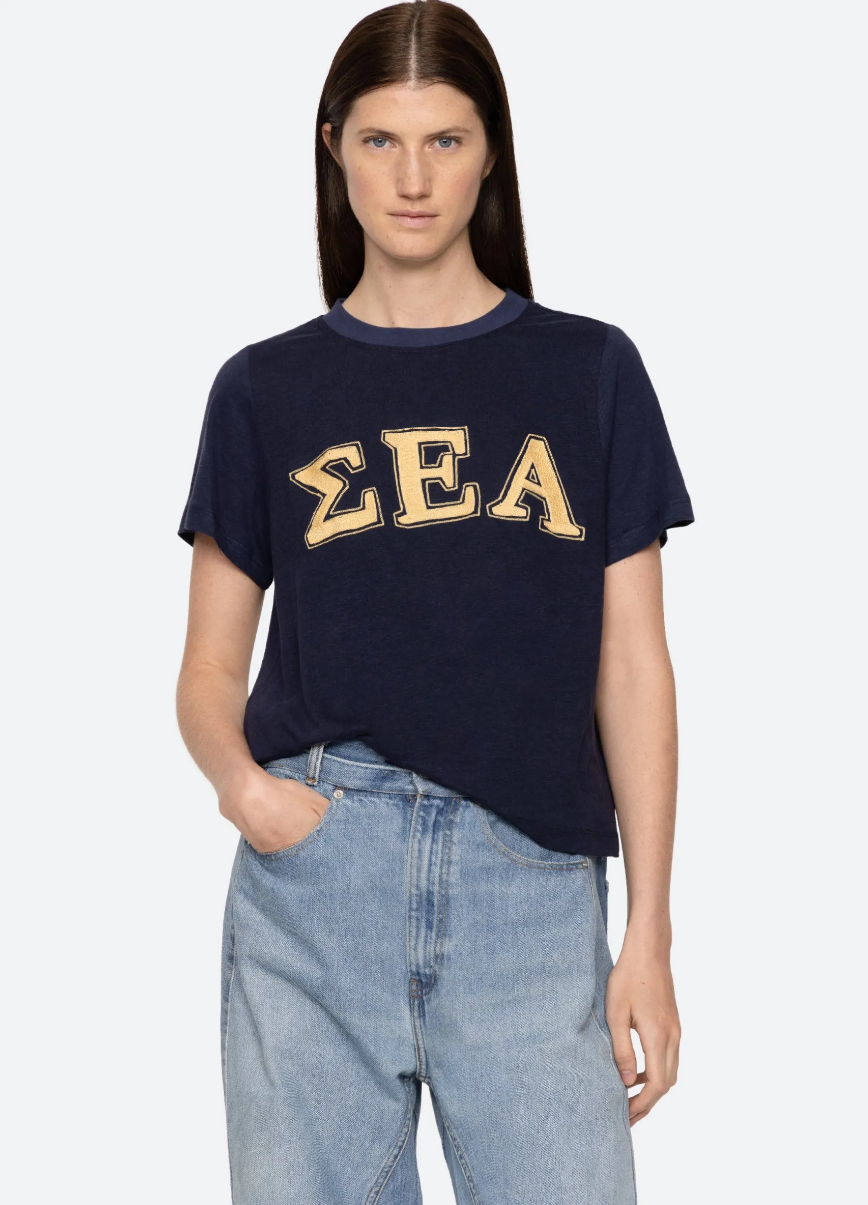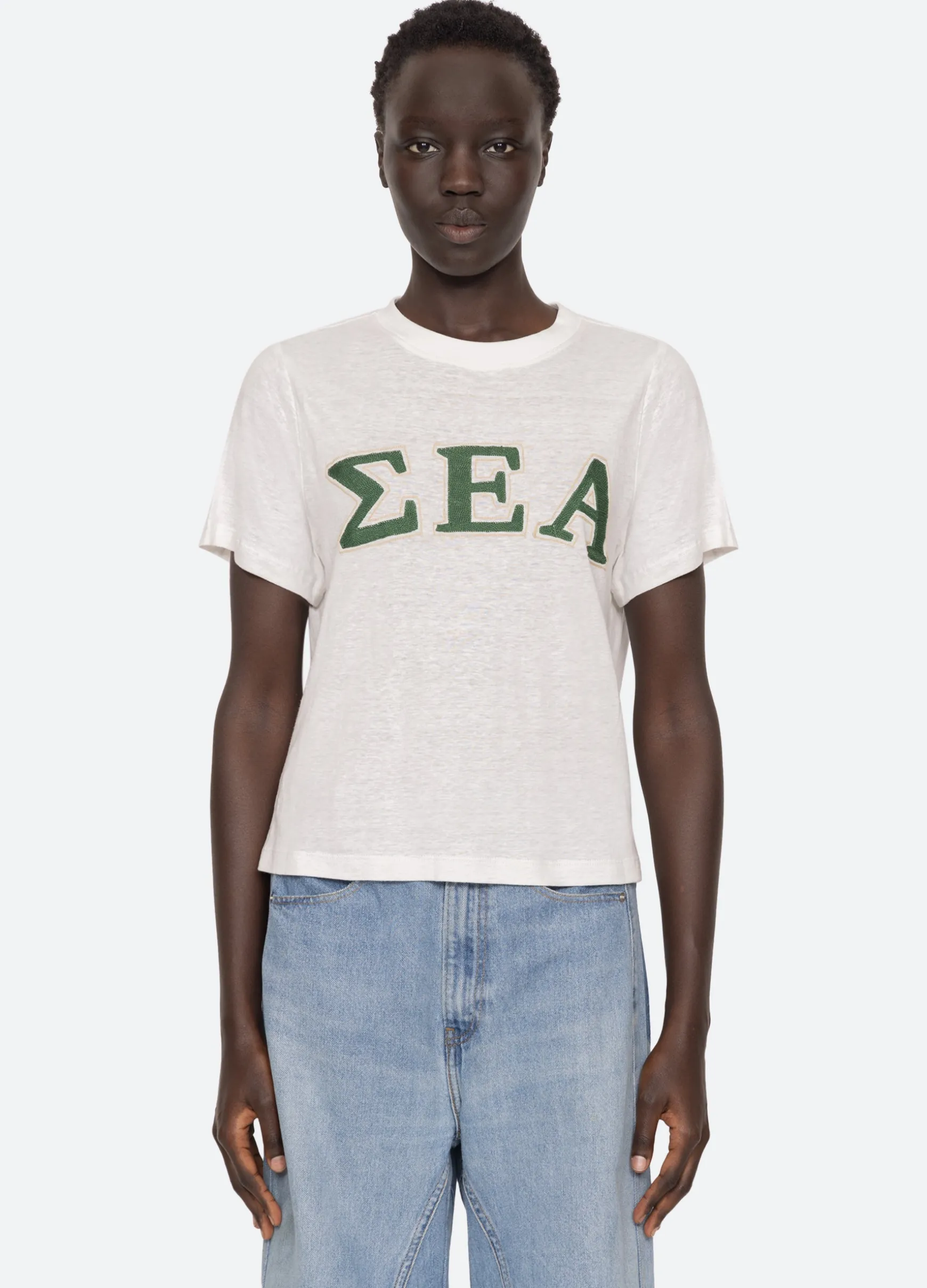 The Adonis t-shirt features an embroidered ‘Sea’ logo in Greek letters. Designed for an easy, relaxed fit.