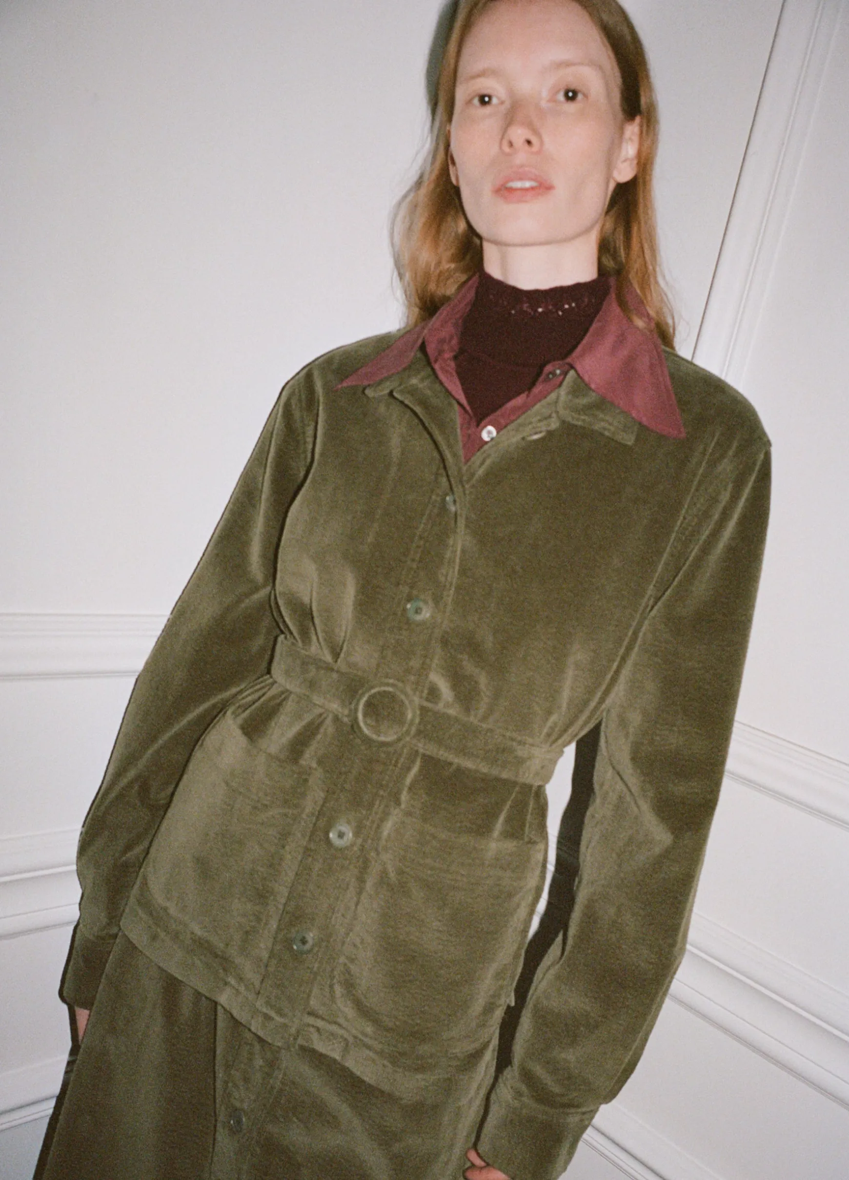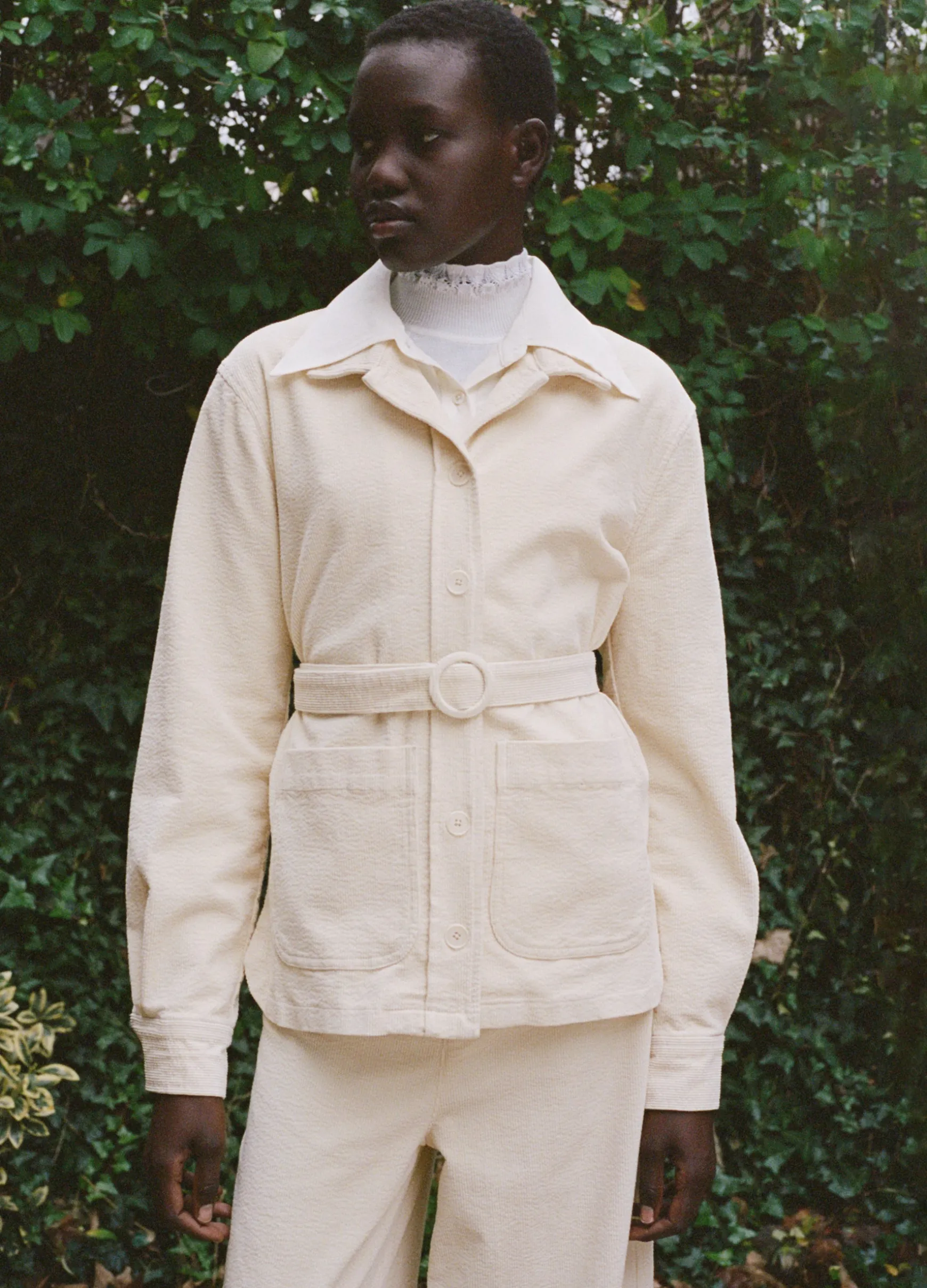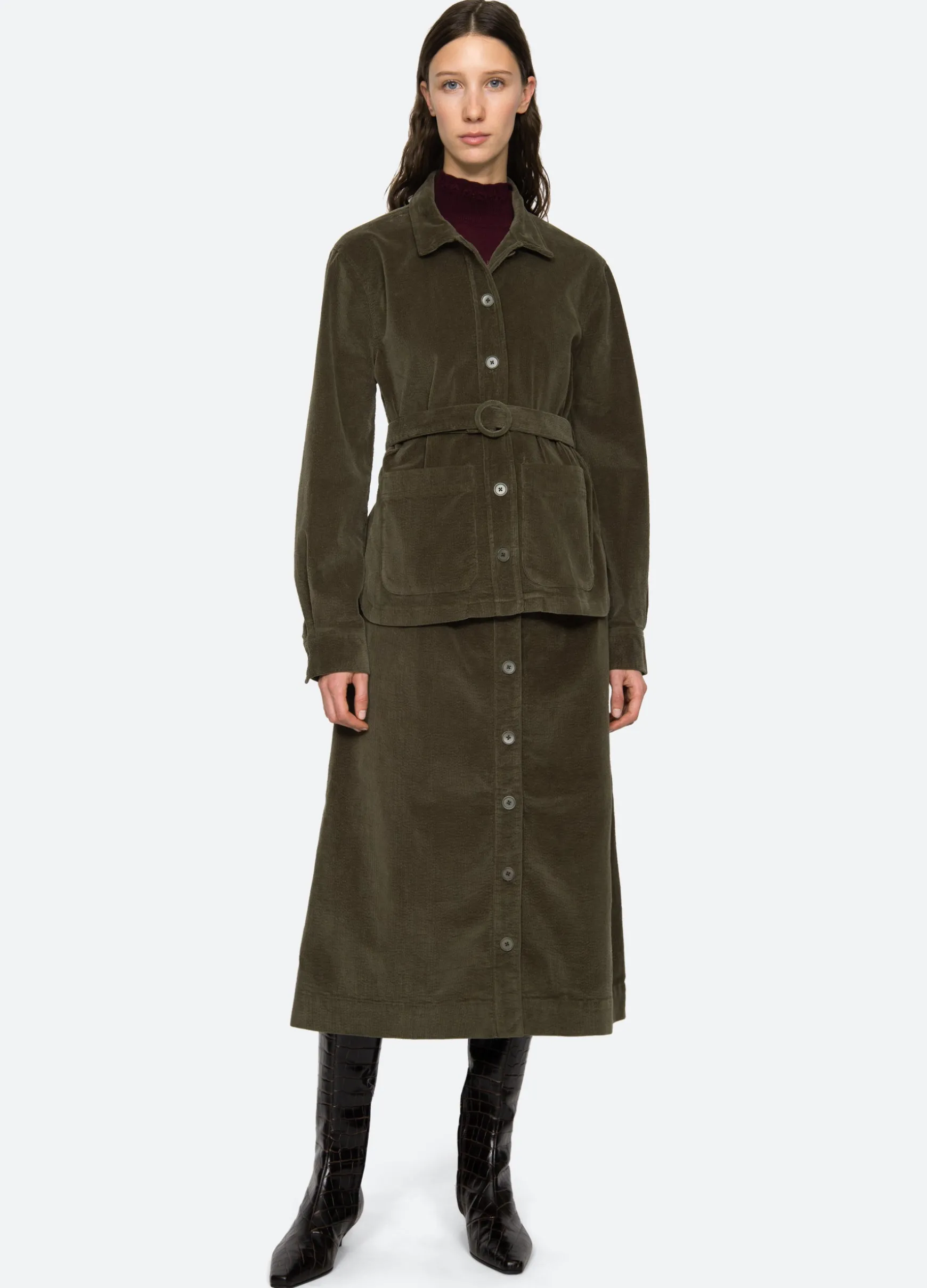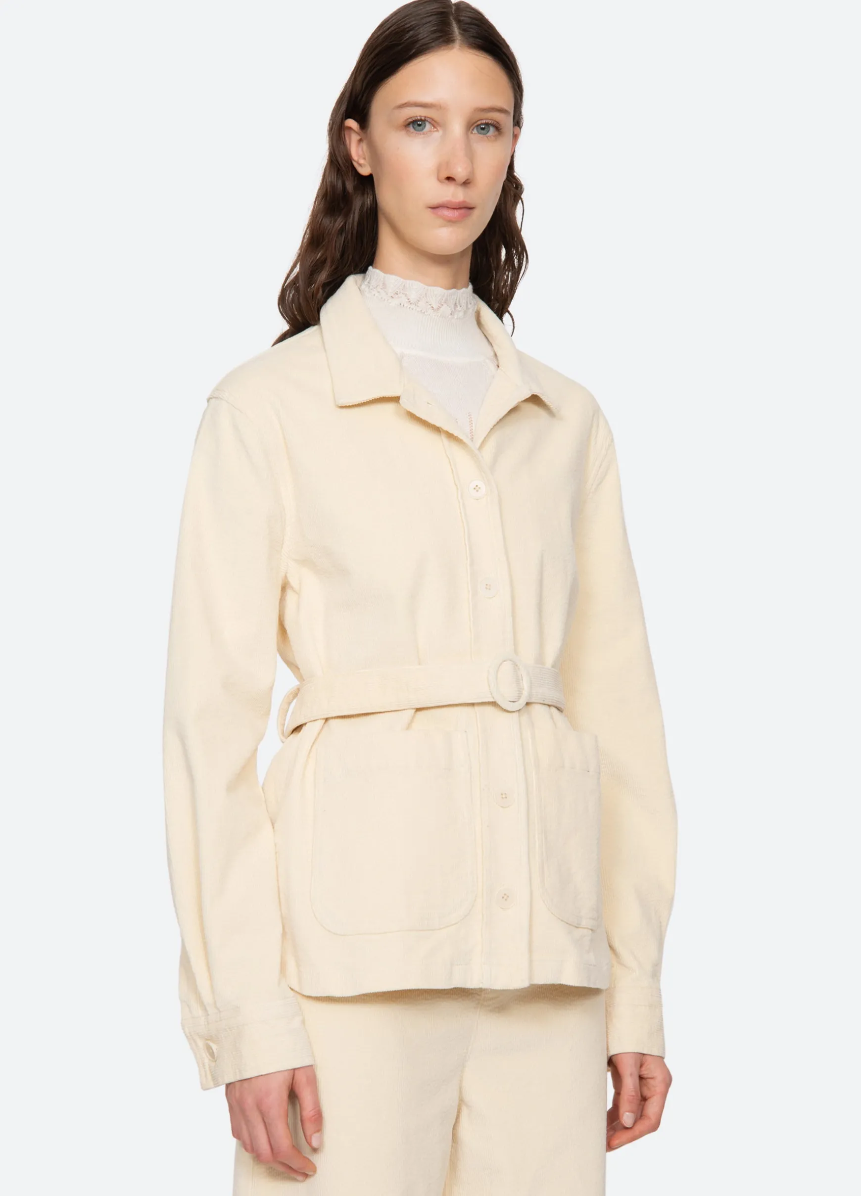 The Carine corduroy jacket features a removable belt and button front. Pairs perfectly with the Carine corduroy jeans.