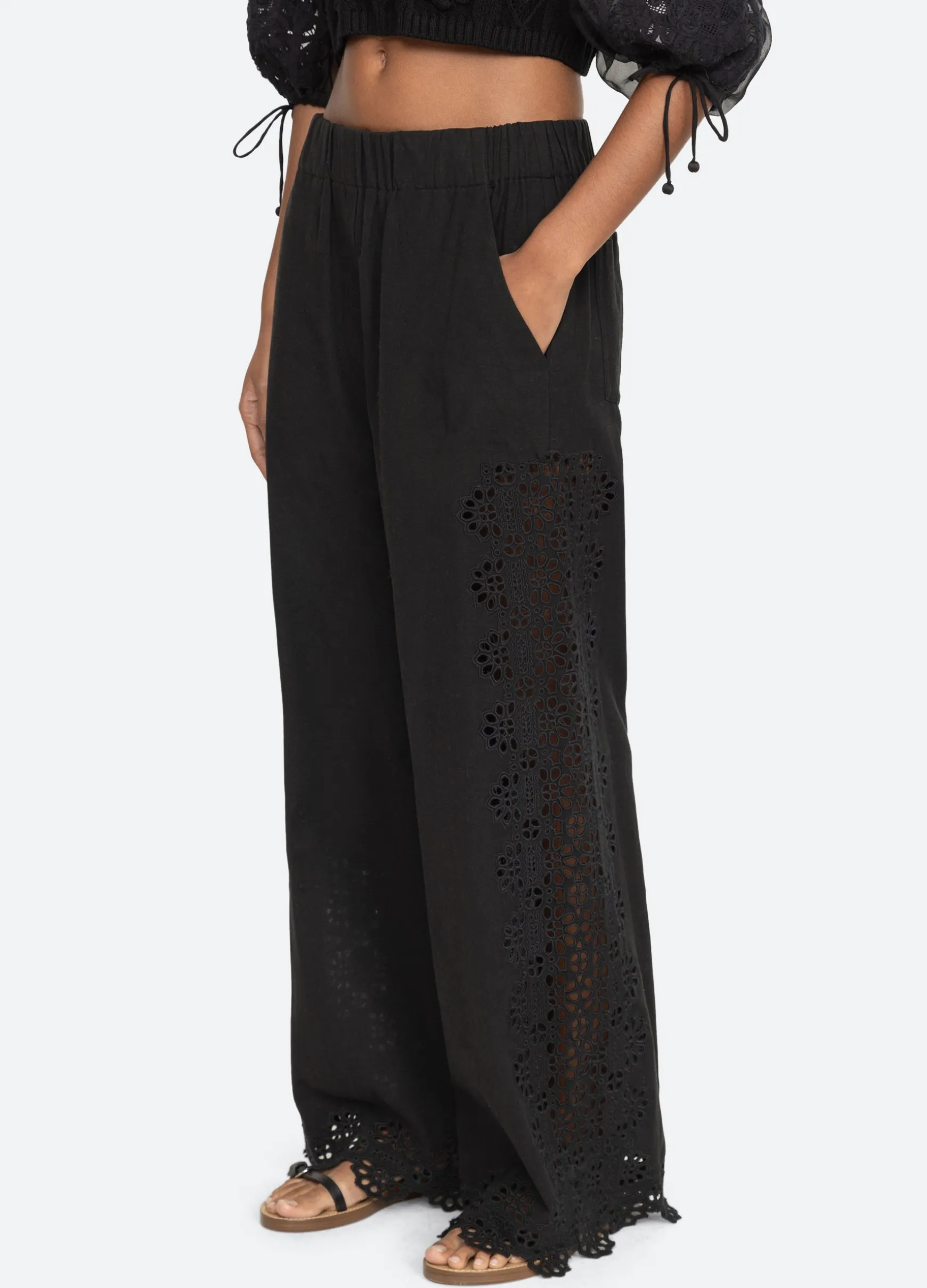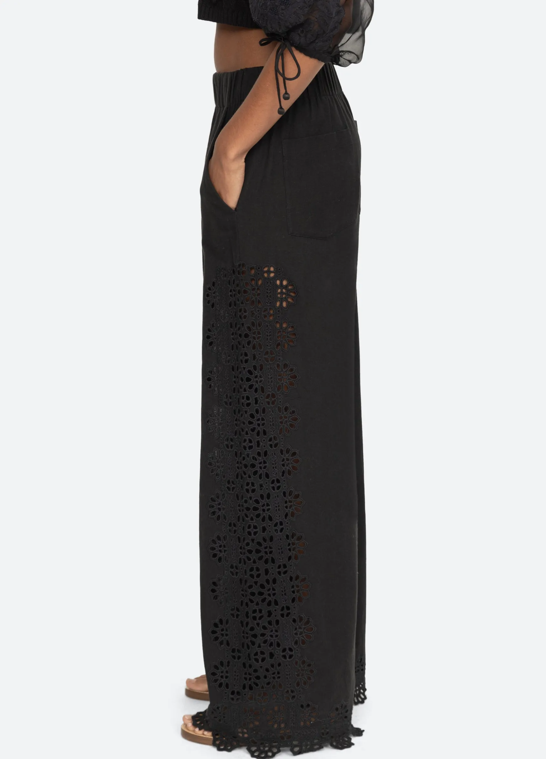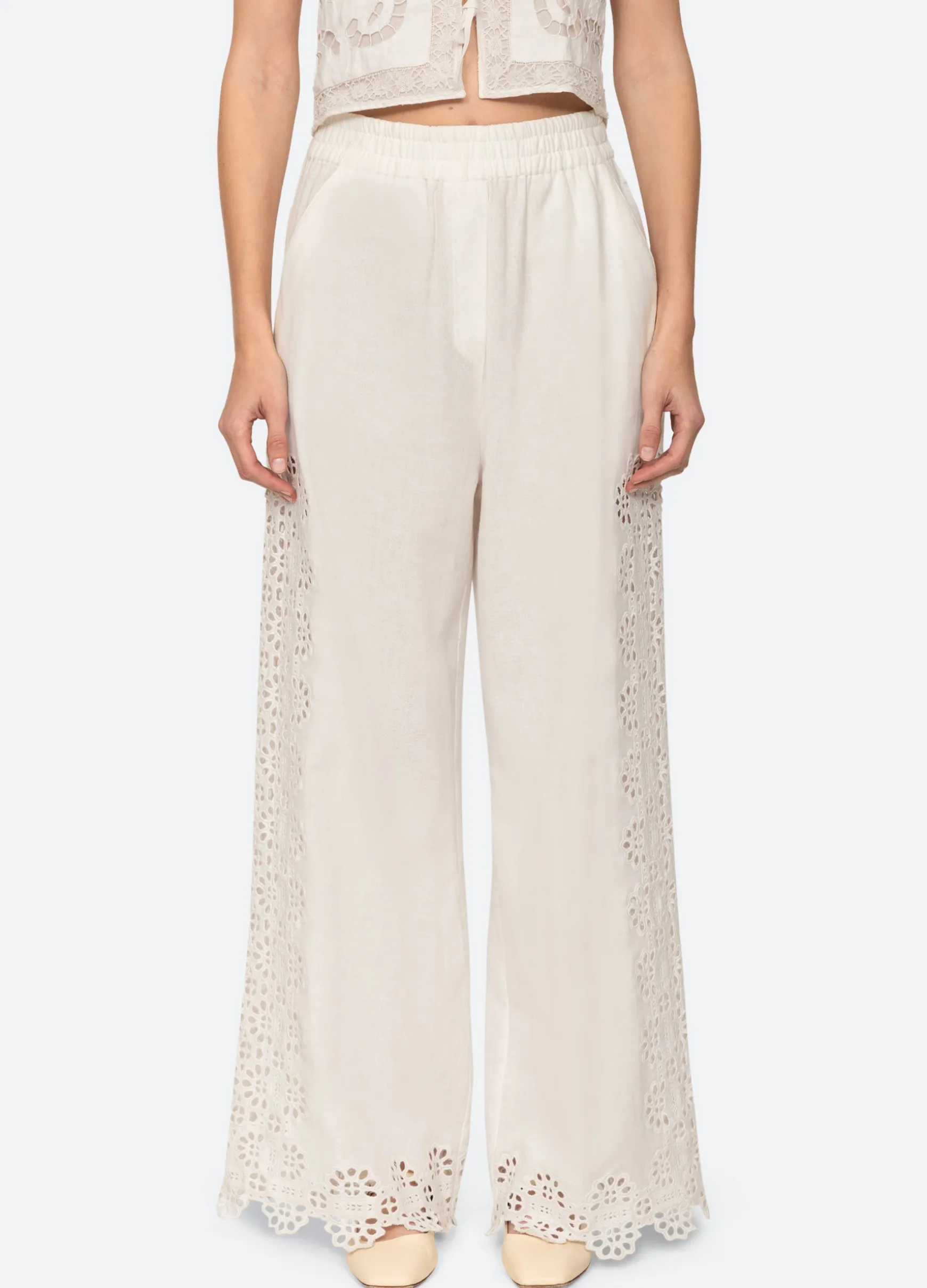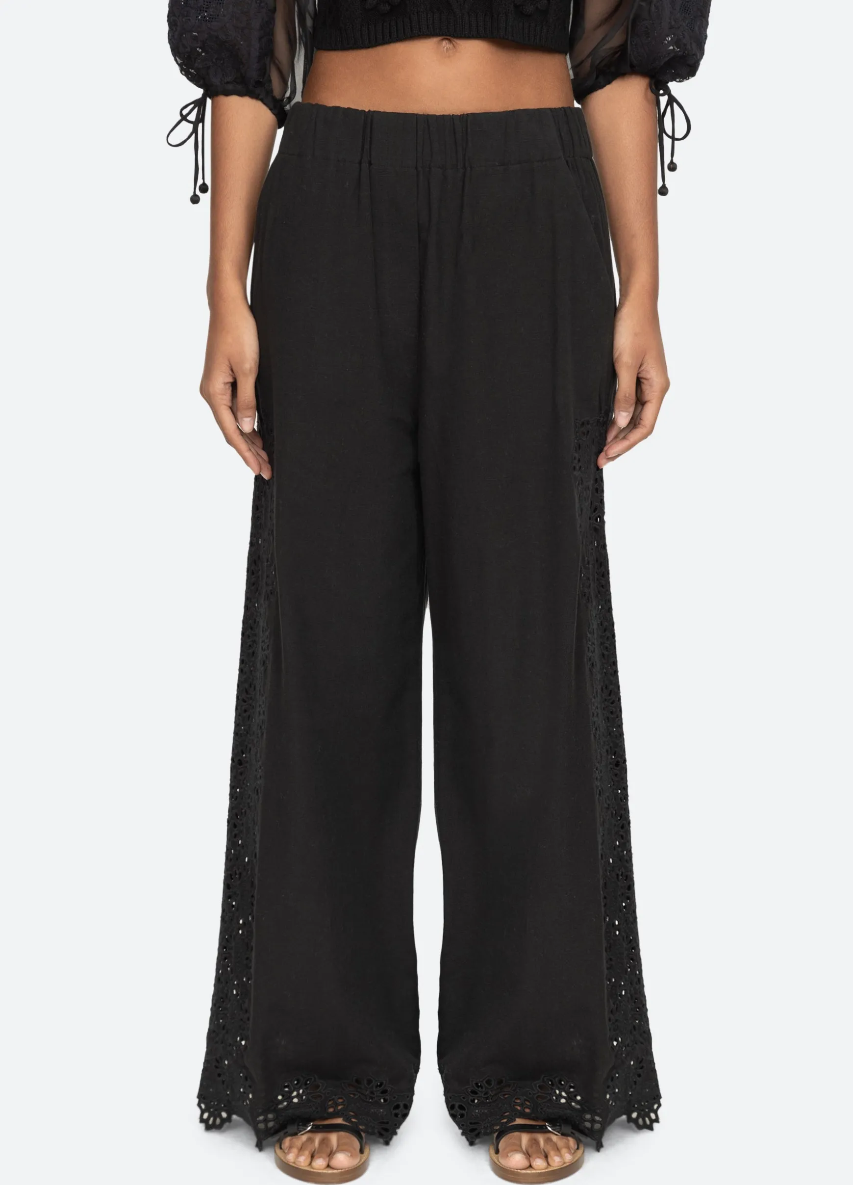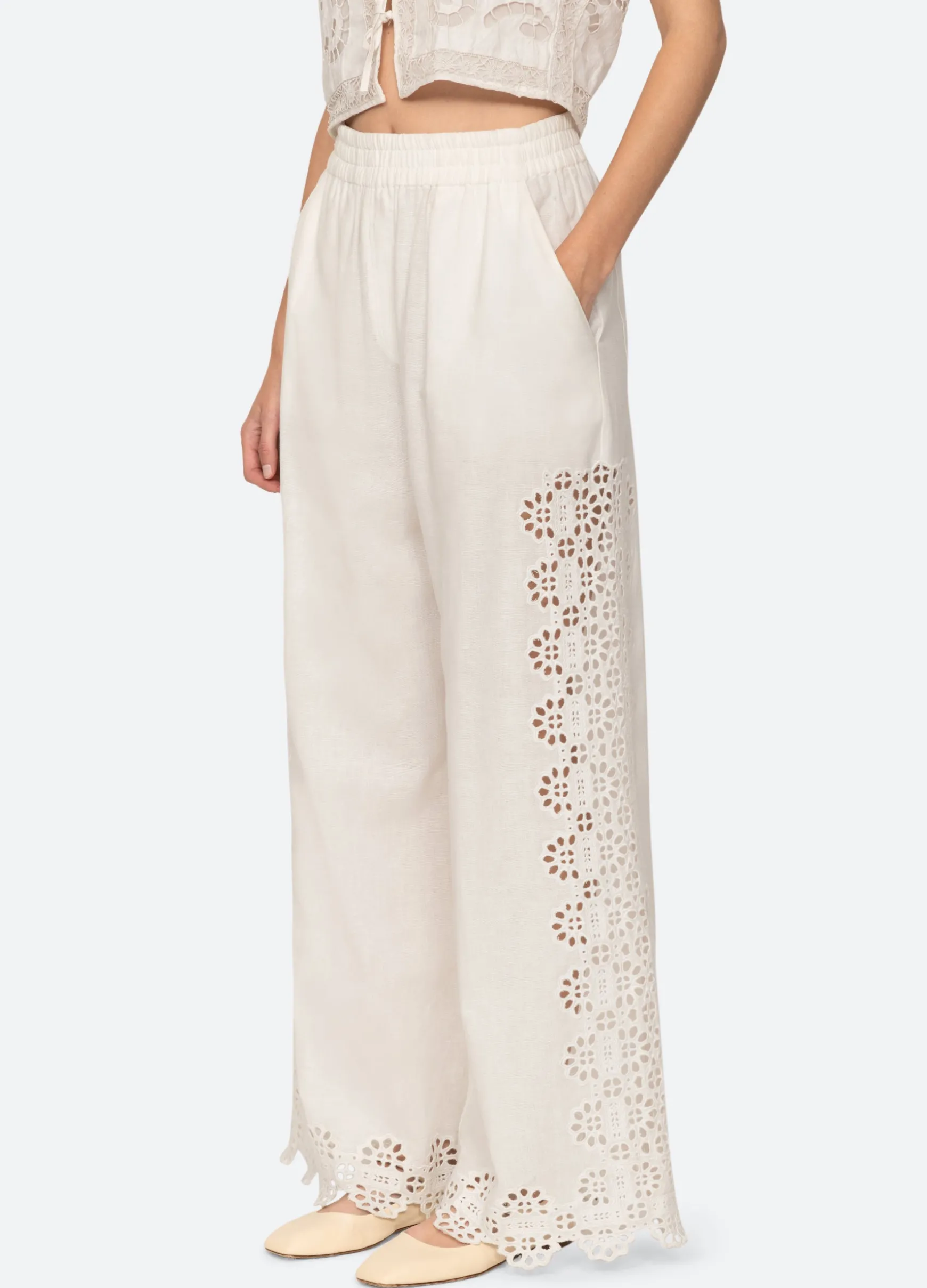 The Edith pants featurean elasticized waistband and embroidered detailing down the side of the leg. Designed for an easy, relaxed fit.