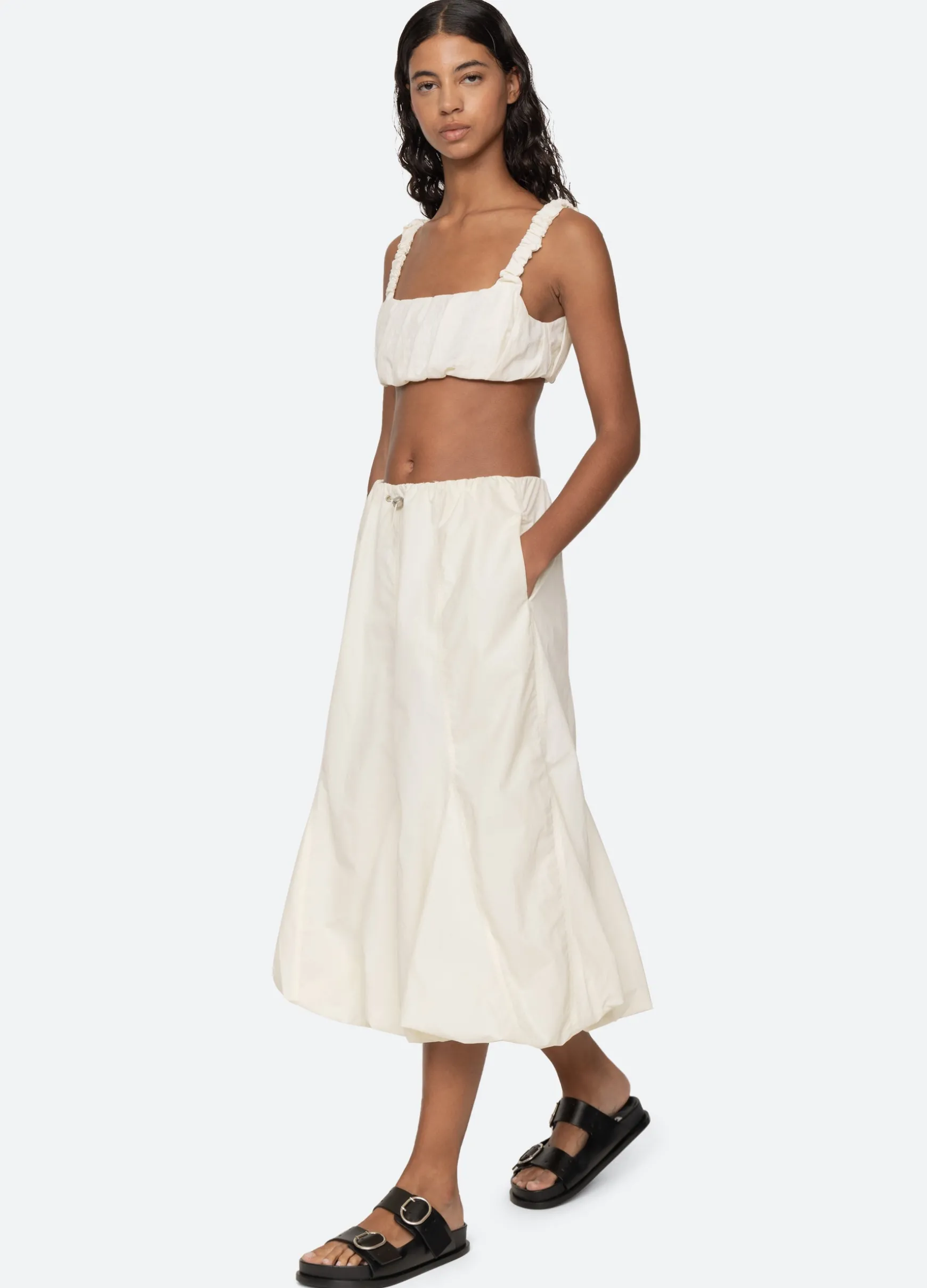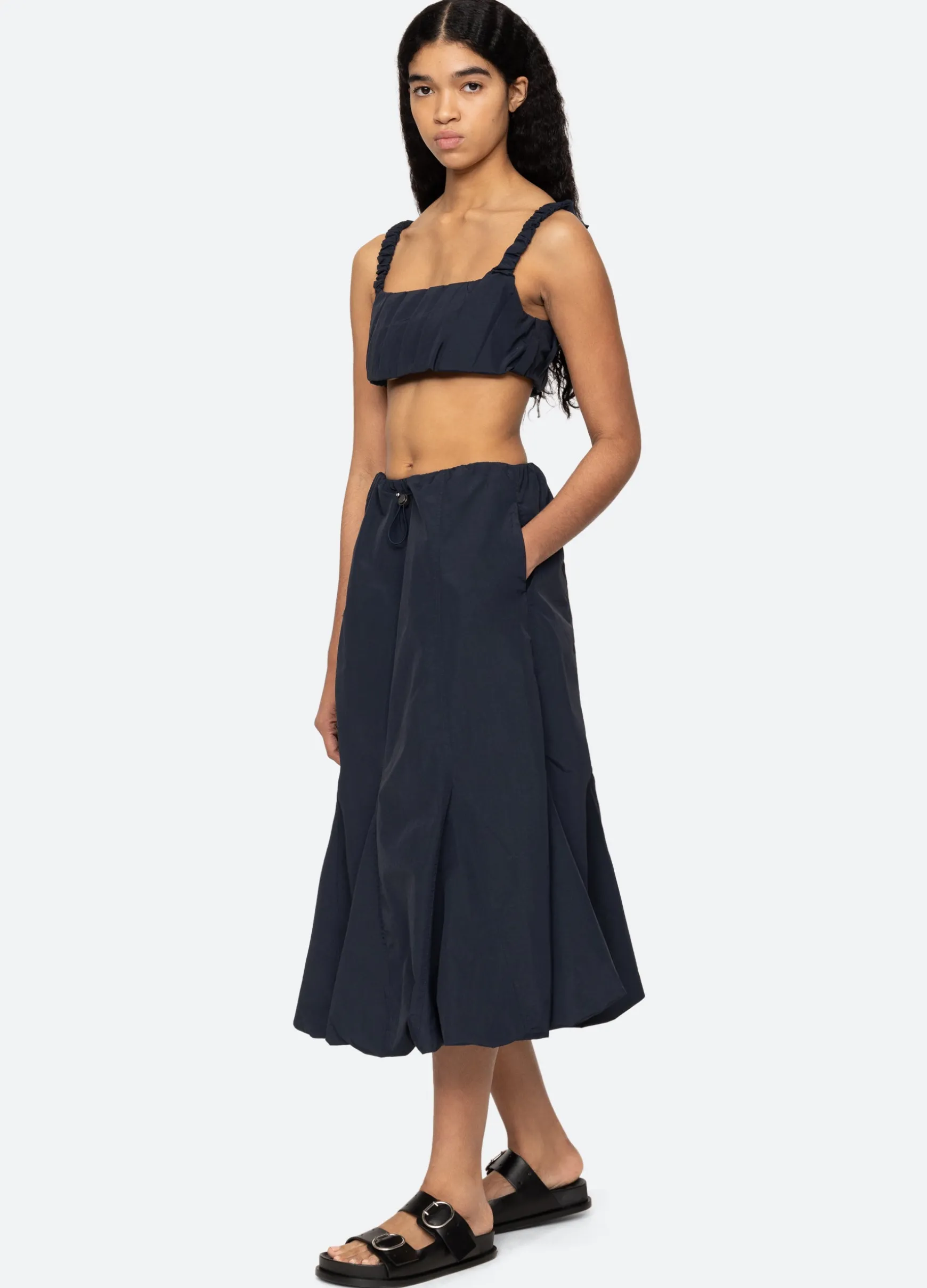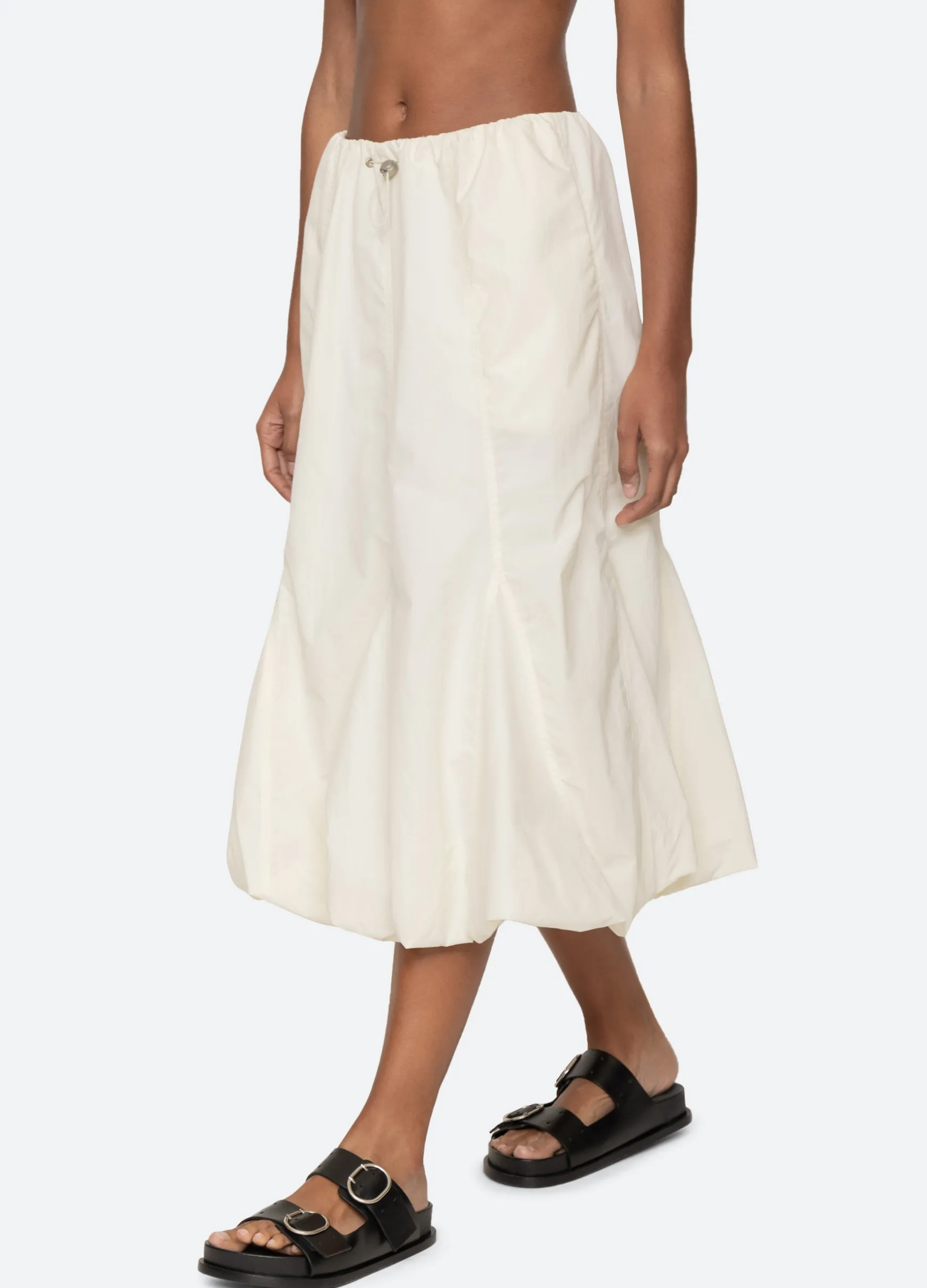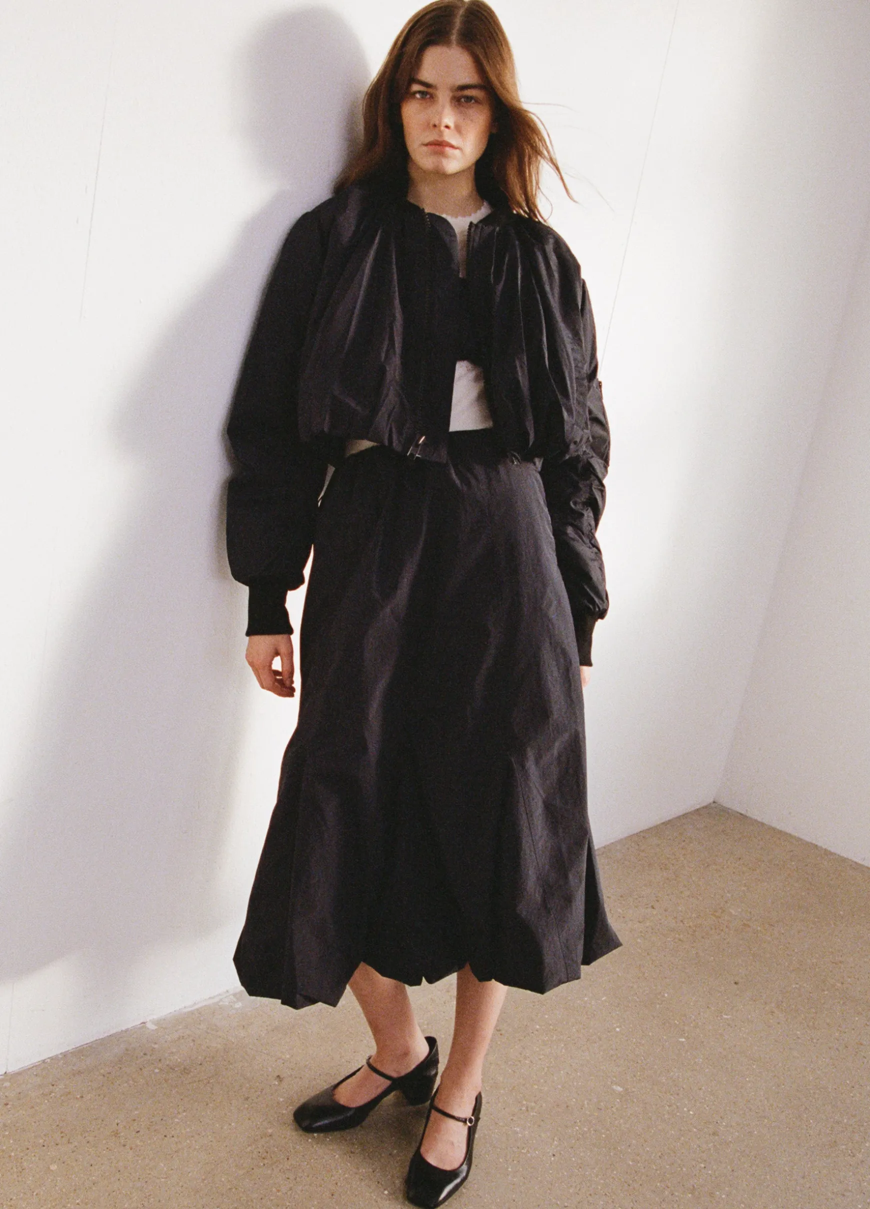 The Evelyn windbreaker skirt features avoluminous bubble hem and drawcord adjusters at the waist. Designed for an easy, relaxed fit.