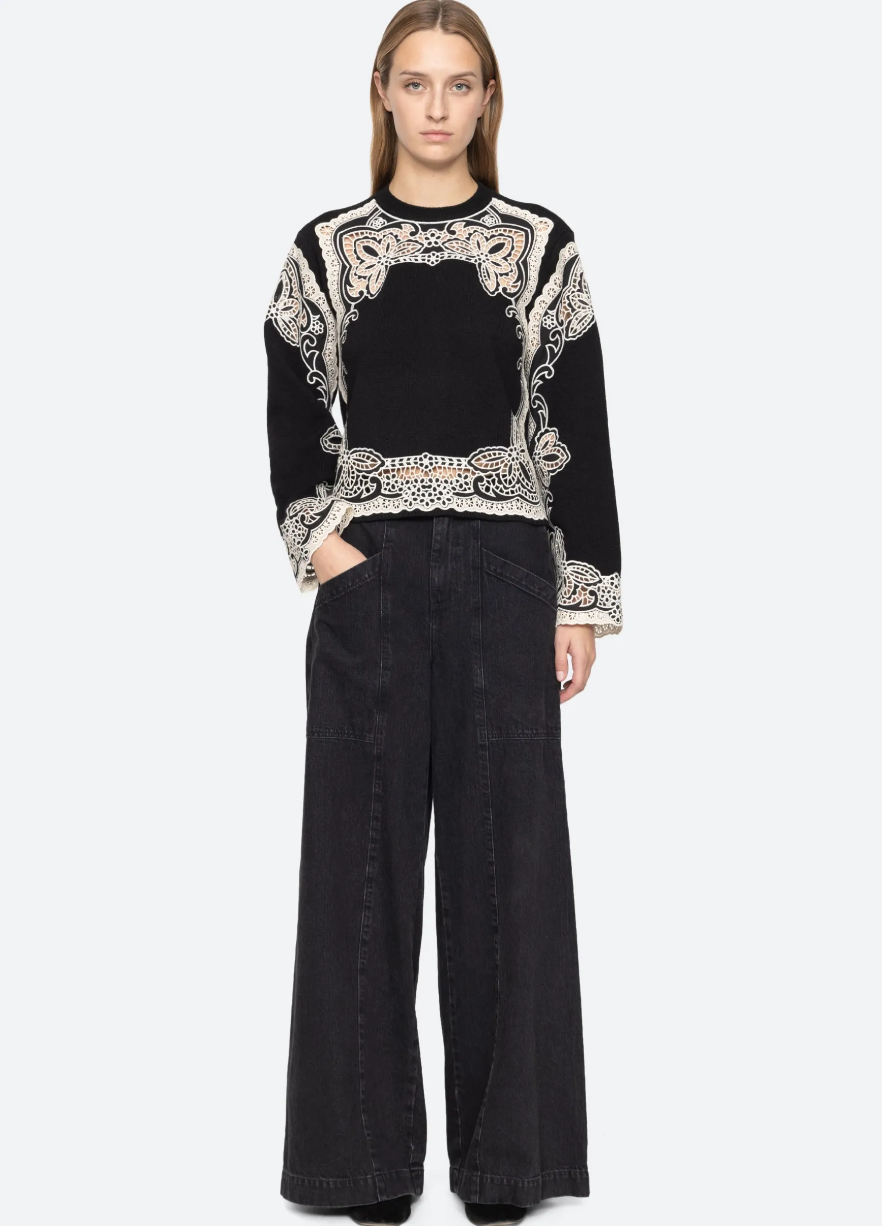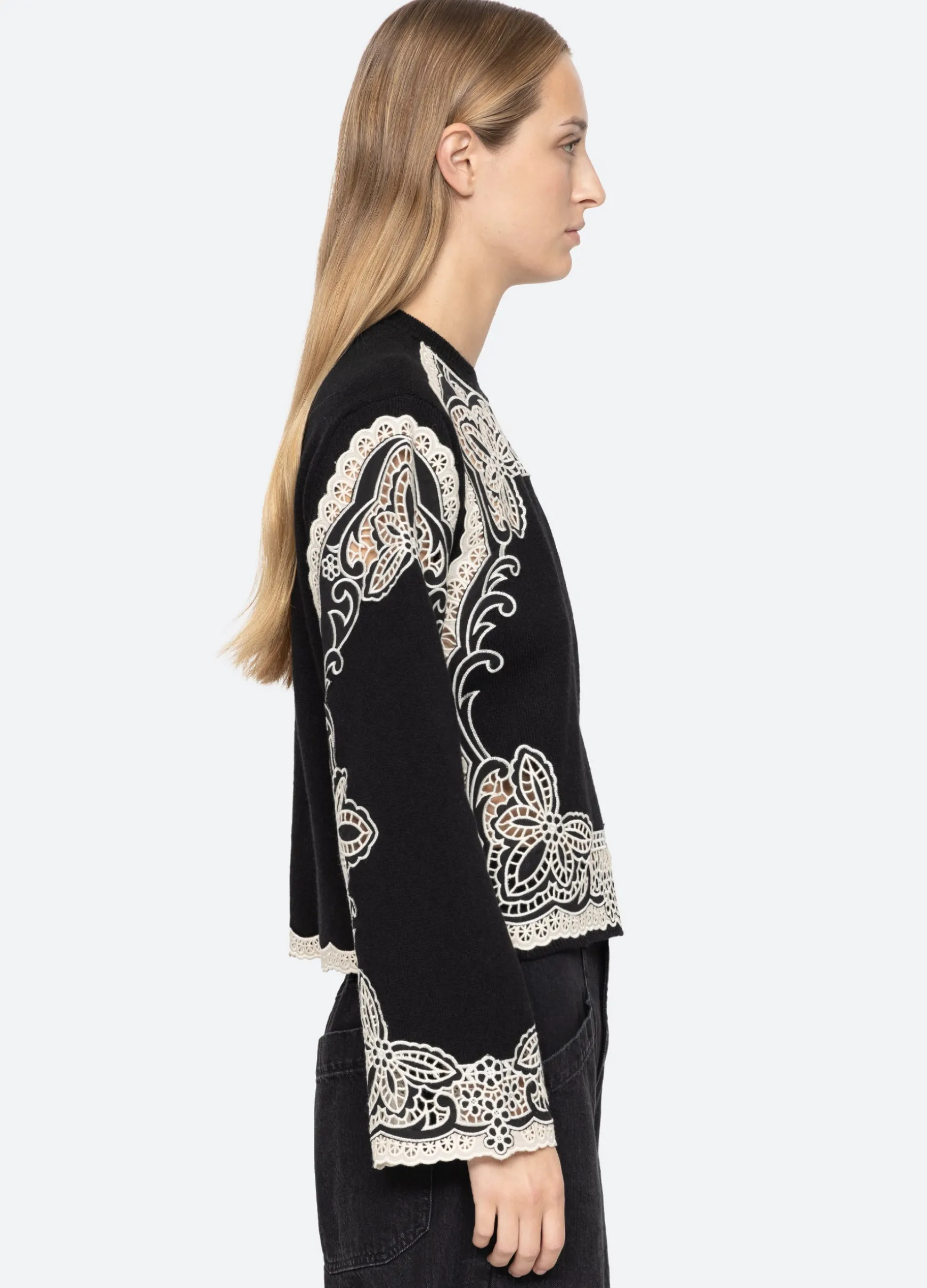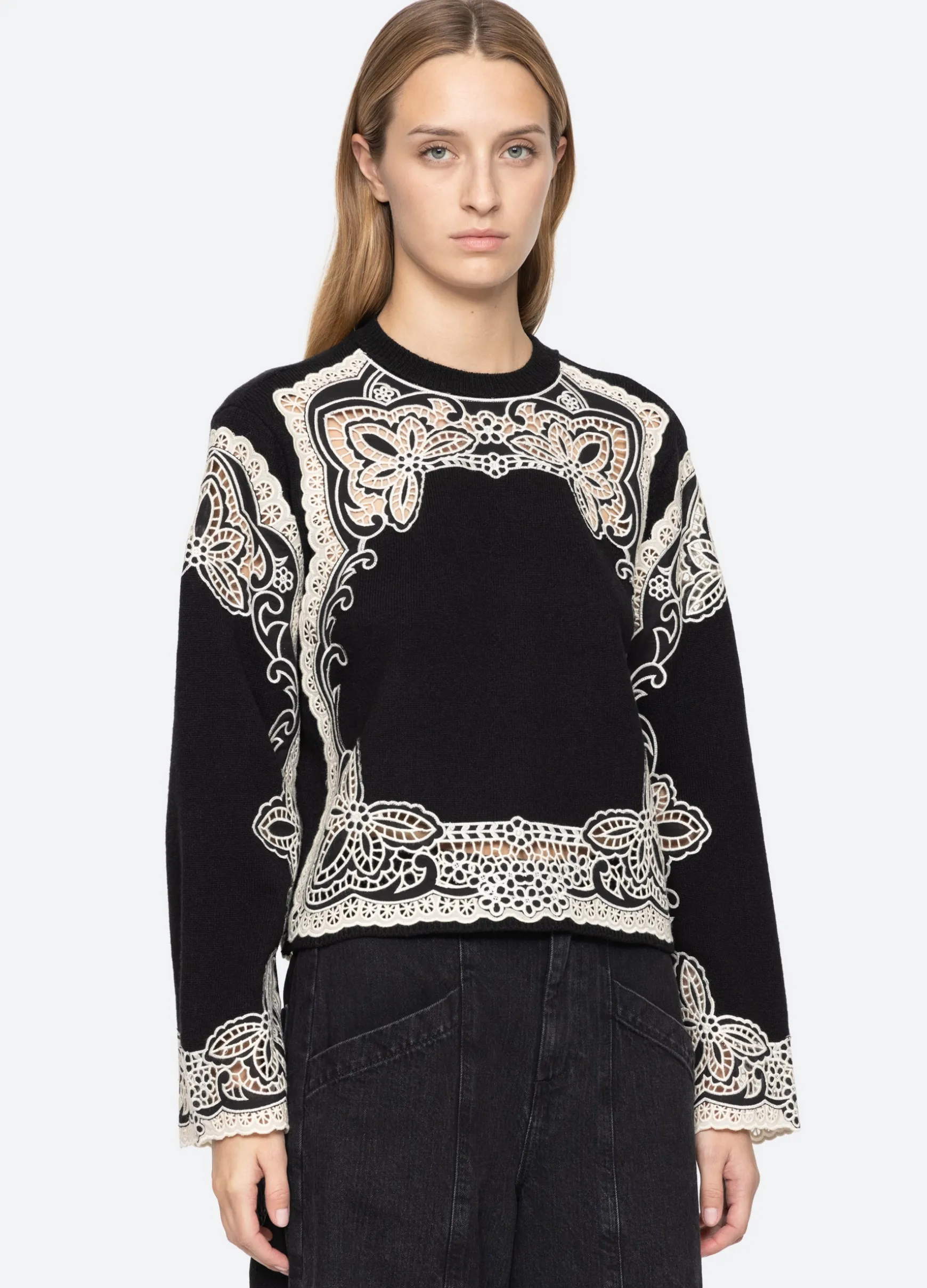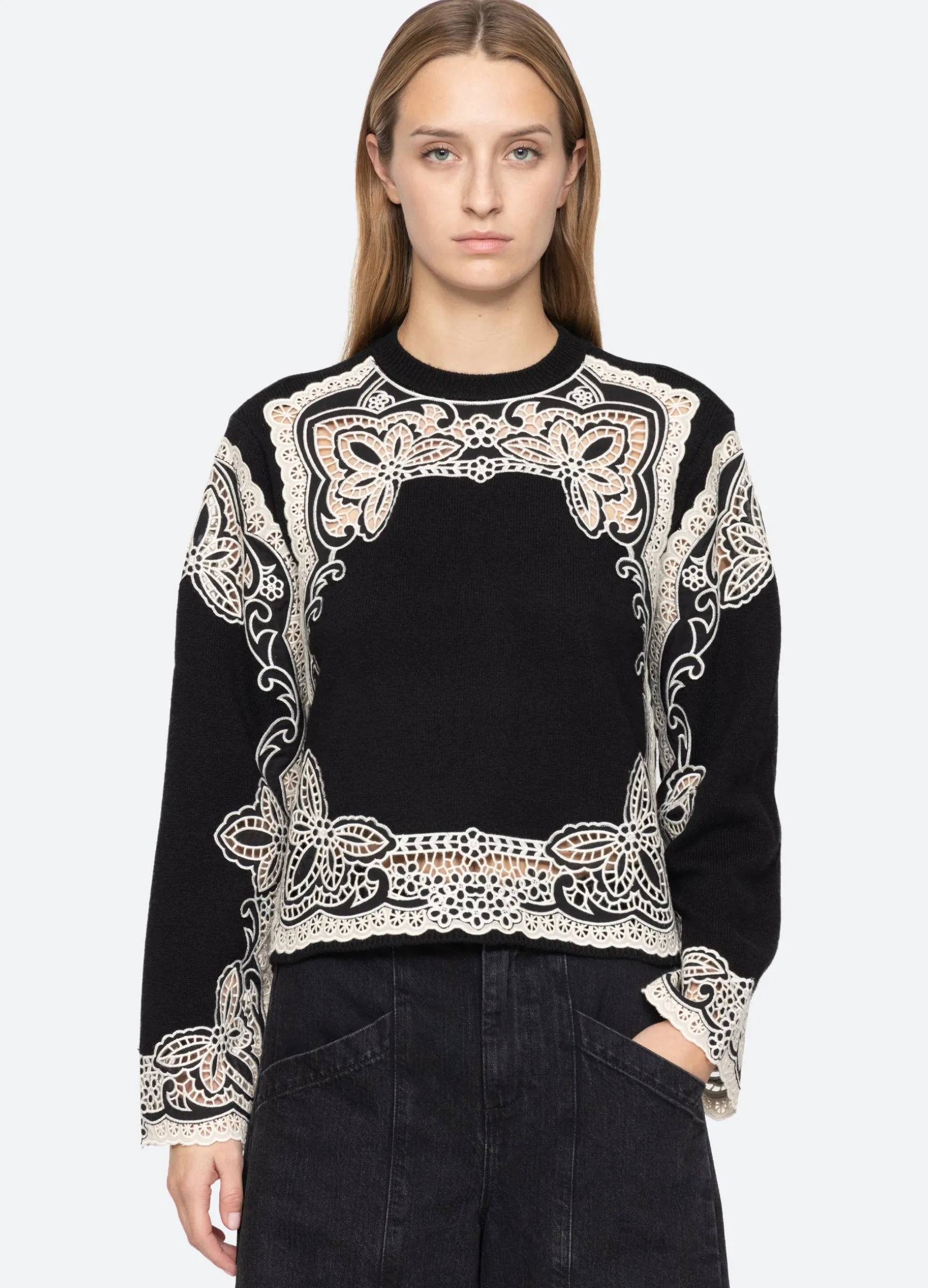 The Gianna knit combo sweaterfeatures embroidery and applique detailing throughout.