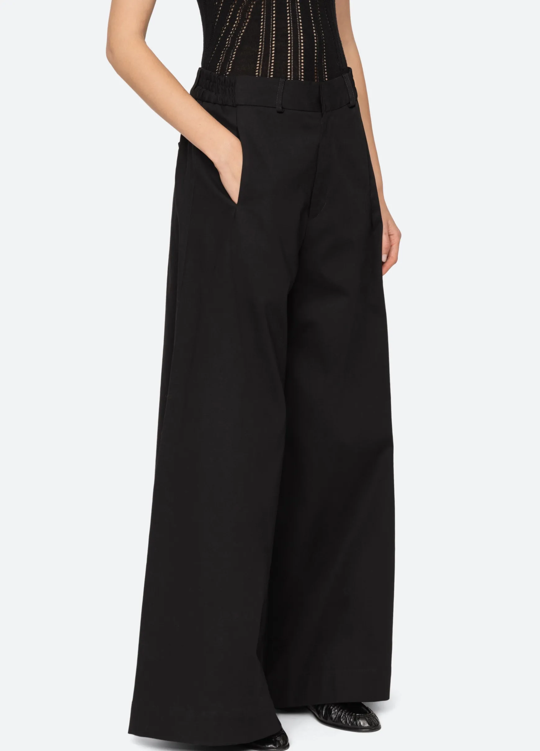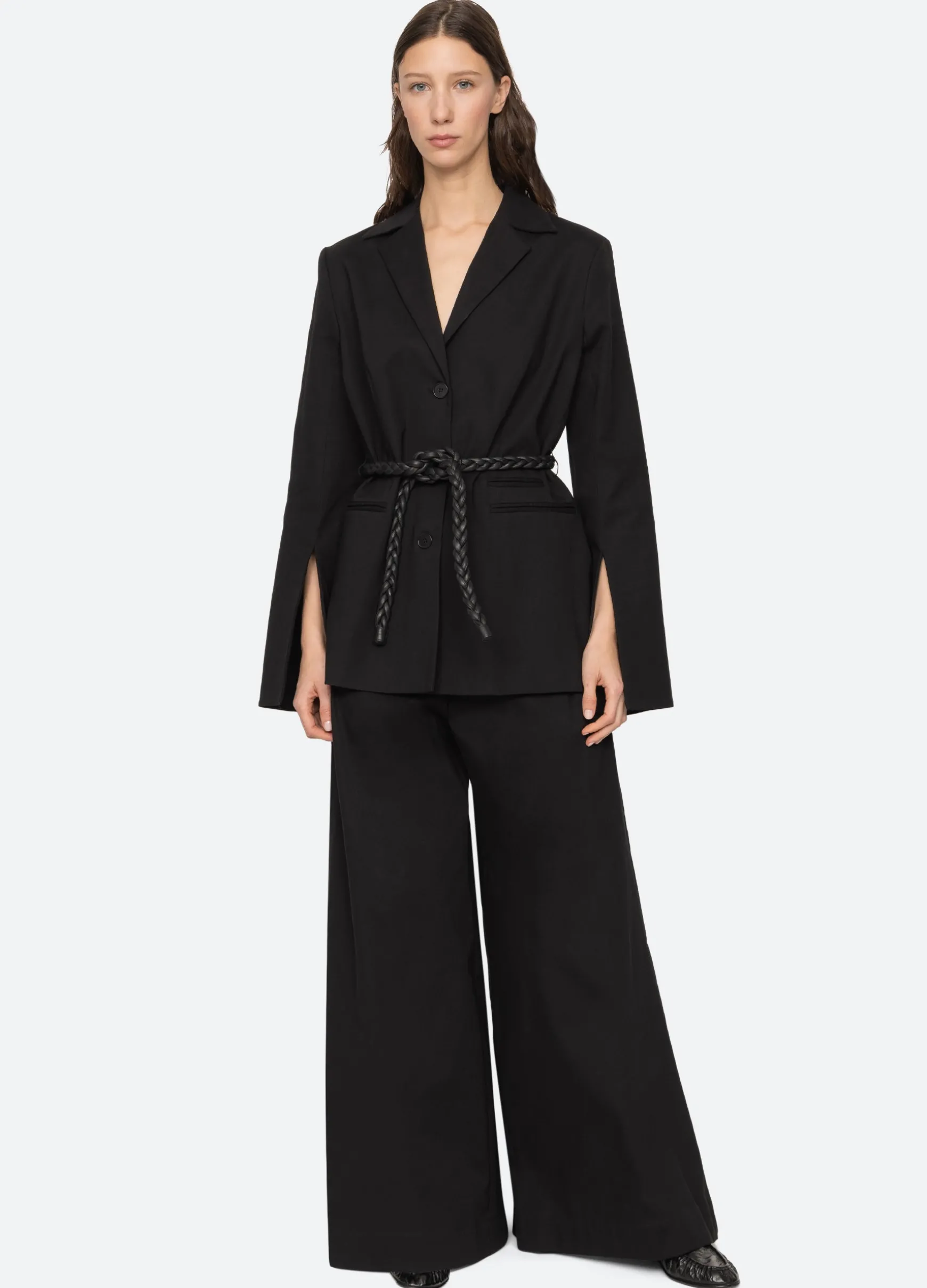 The Kerith pants feature a wide leg silhouette and elasticized back. Pairs perfectly with the Kerith jacket.
