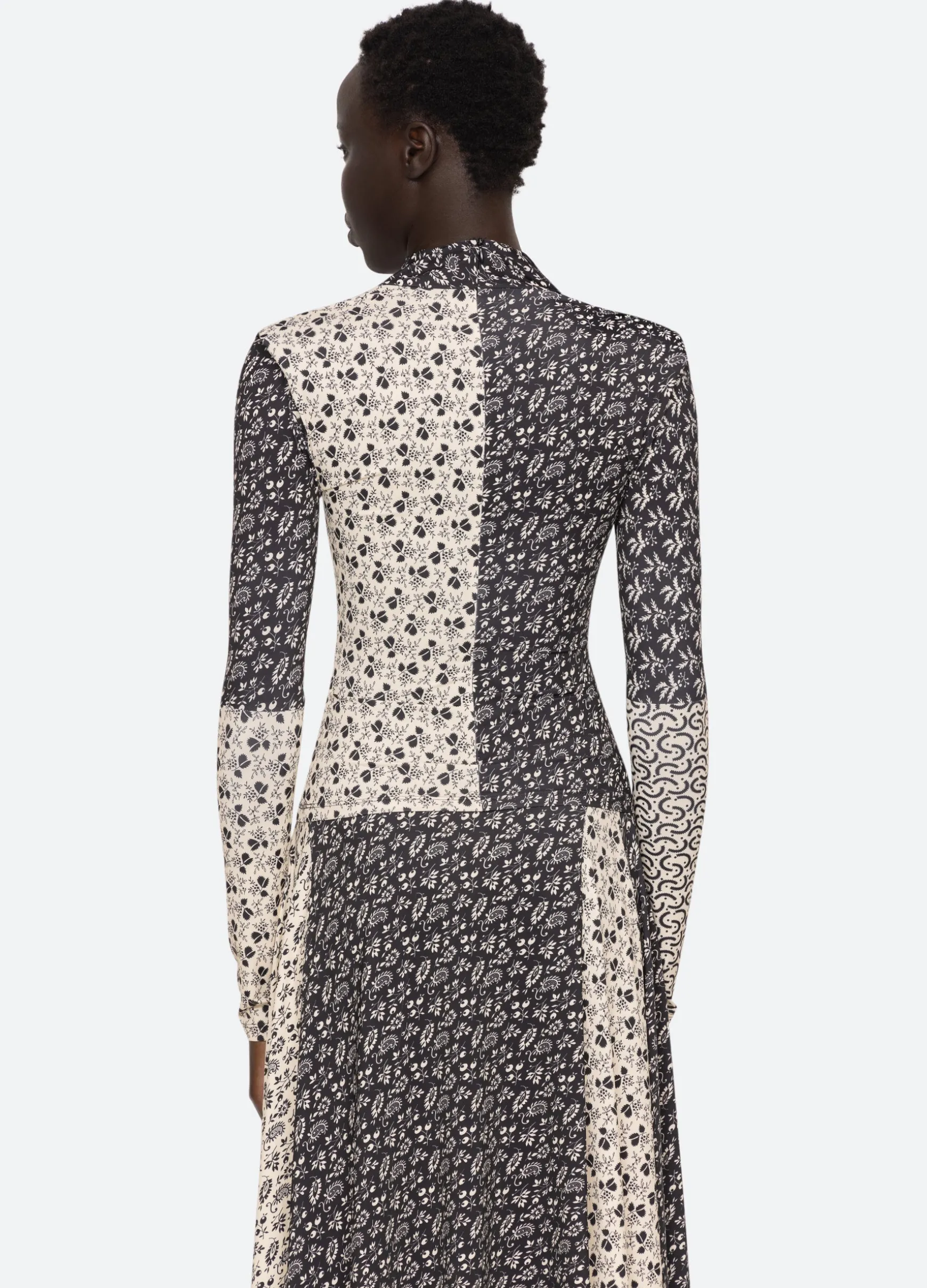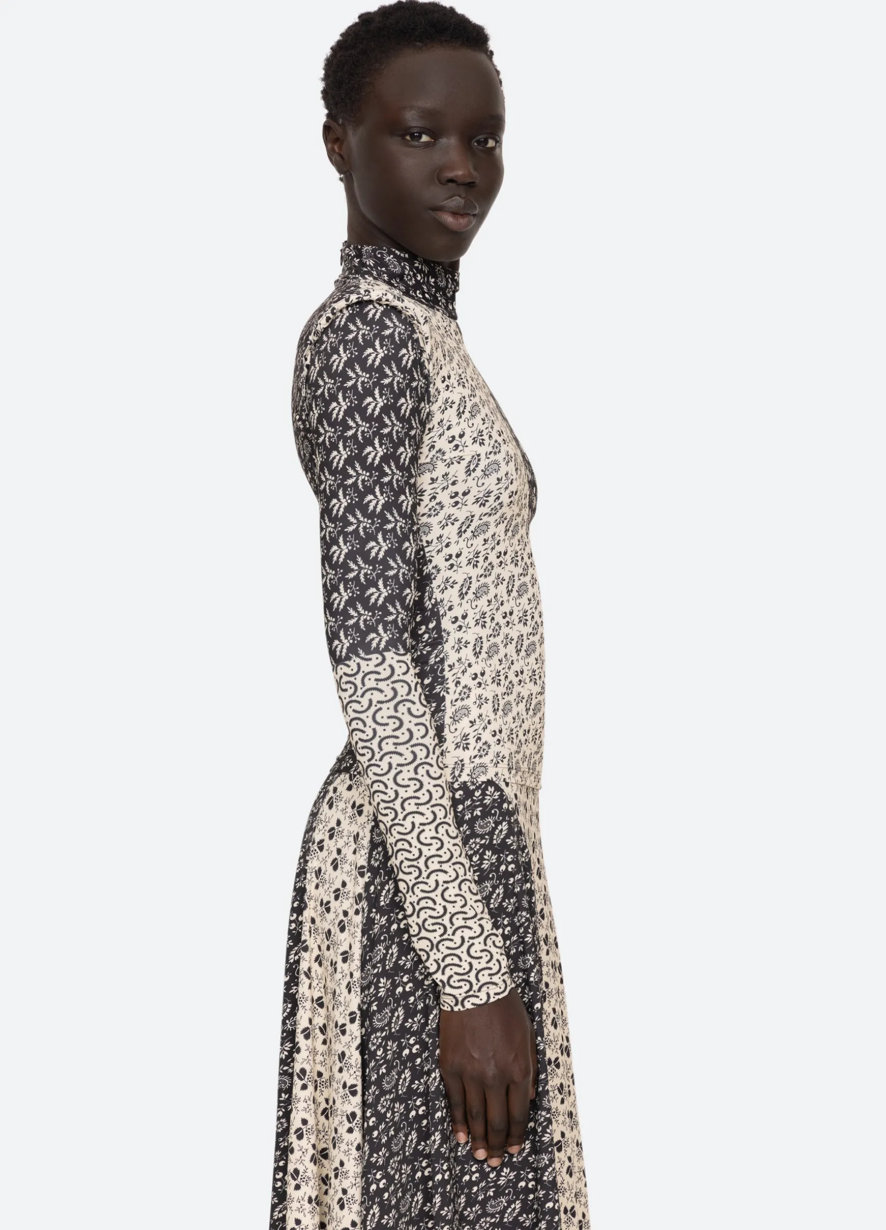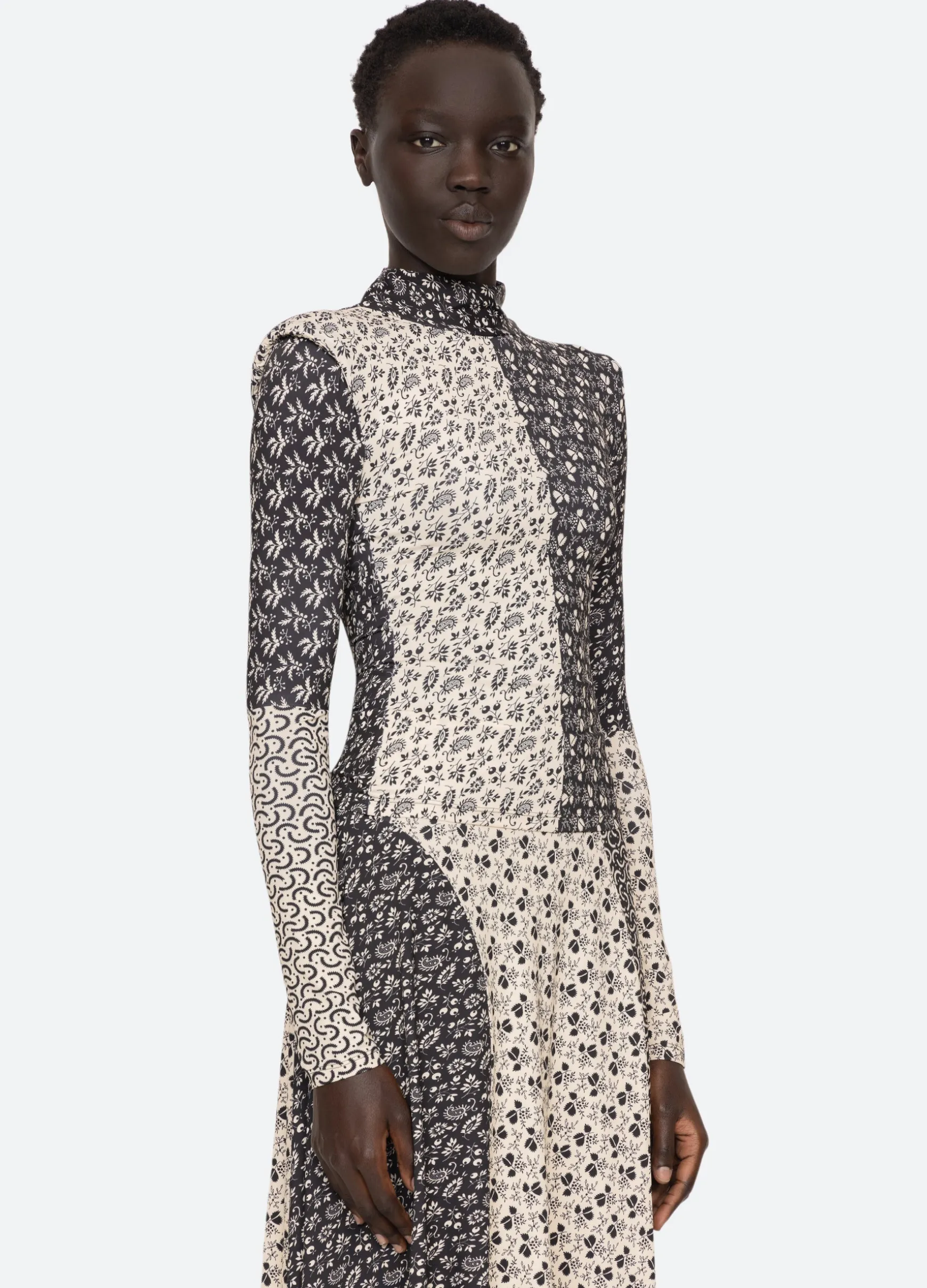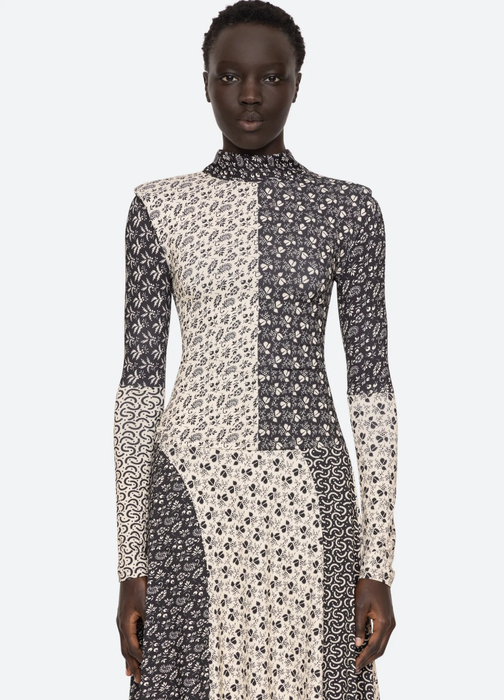 The Panna mix-up graphic print top features long sleeves, high neck and shoulder pads.