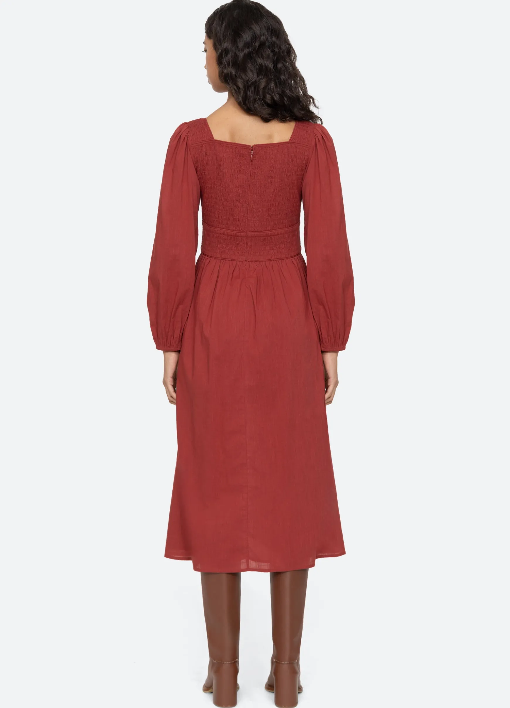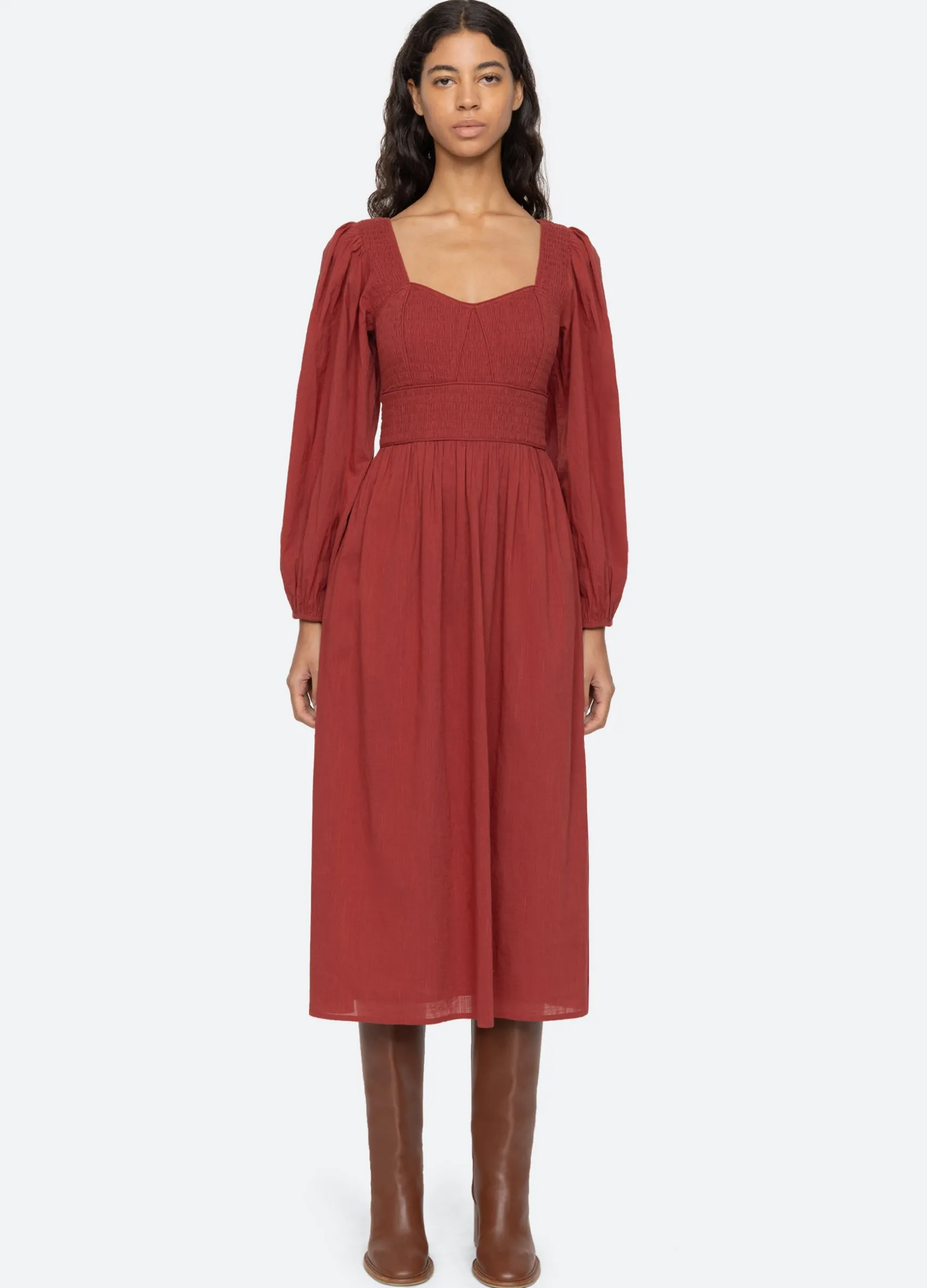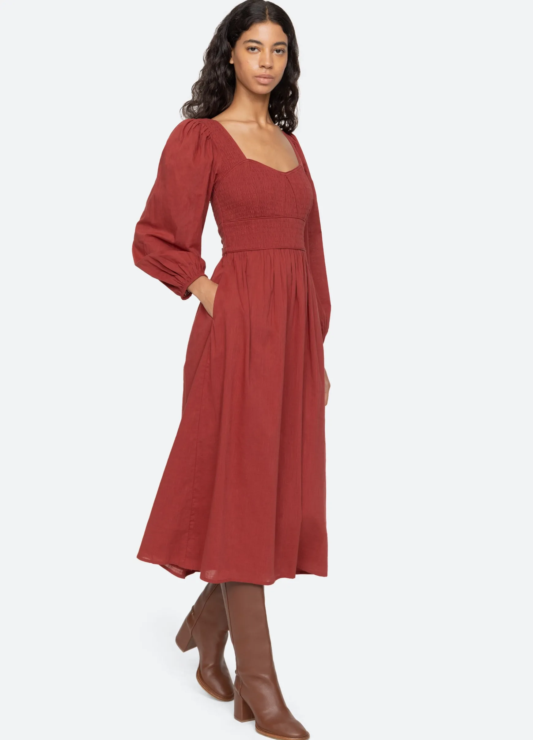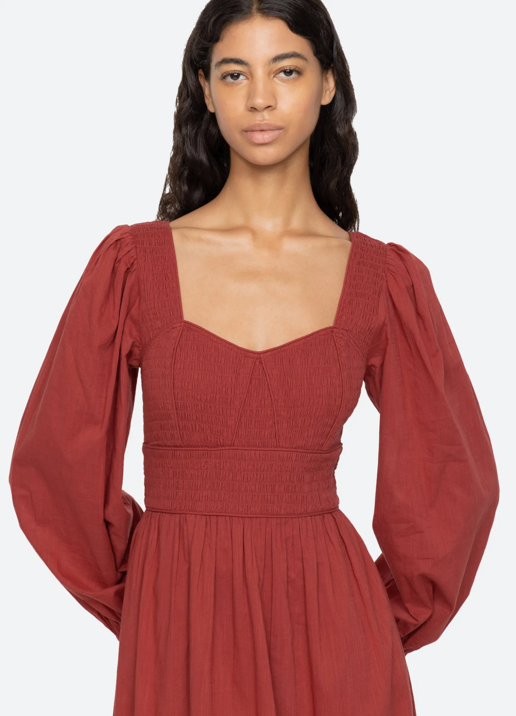 The Renata long sleeve dress features a sweetheart neckline, long puff sleeves and smocked bodice.
