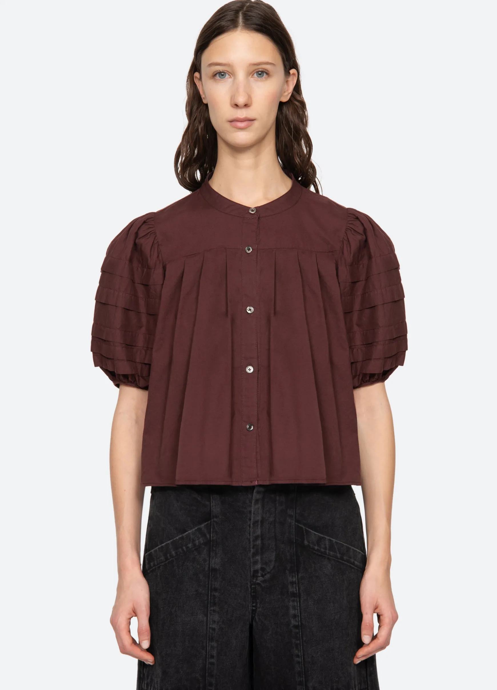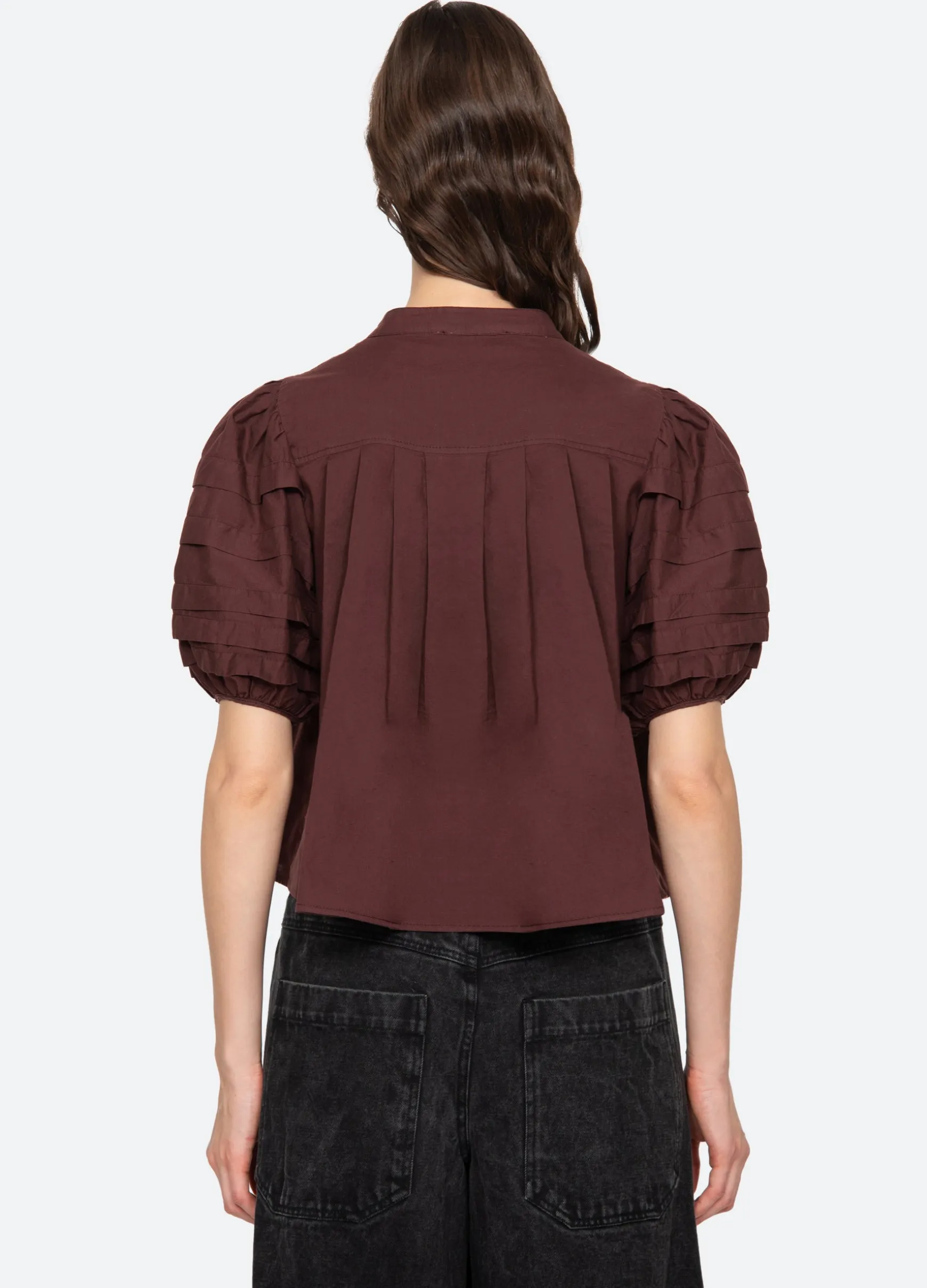 The Renata top features puff sleeves with pleated detailing and button front closure. Designed for an easy, relaxed fit.