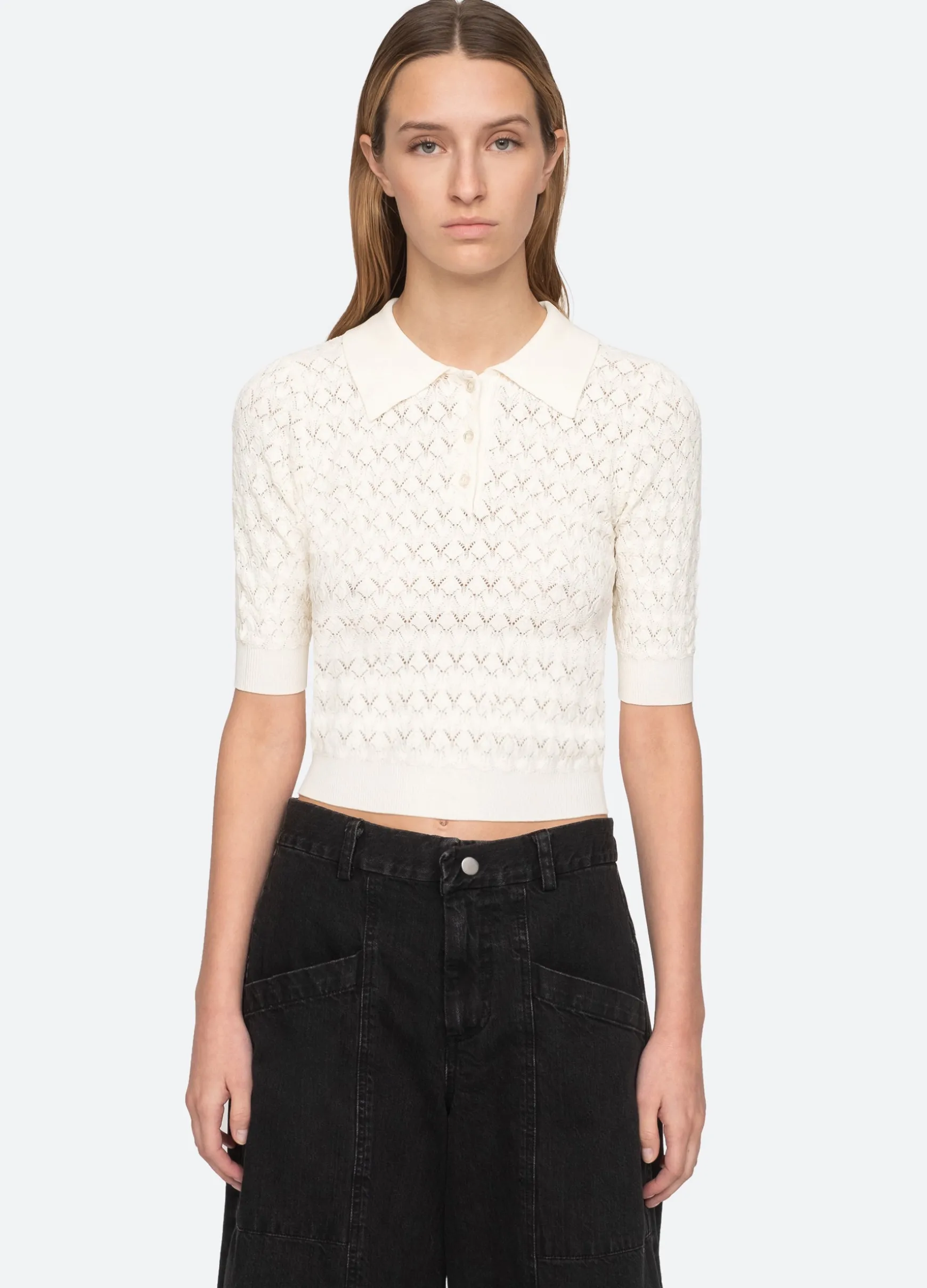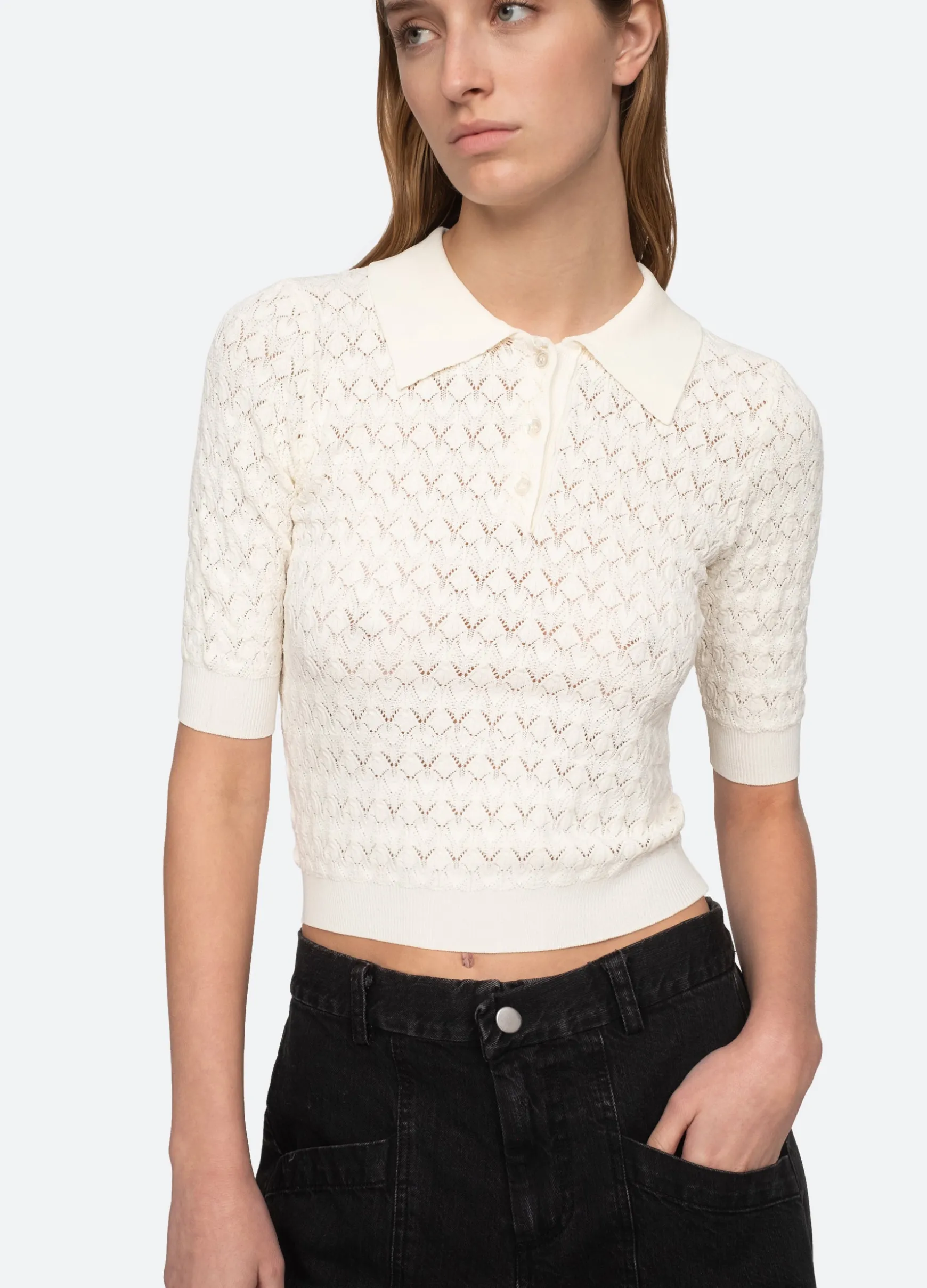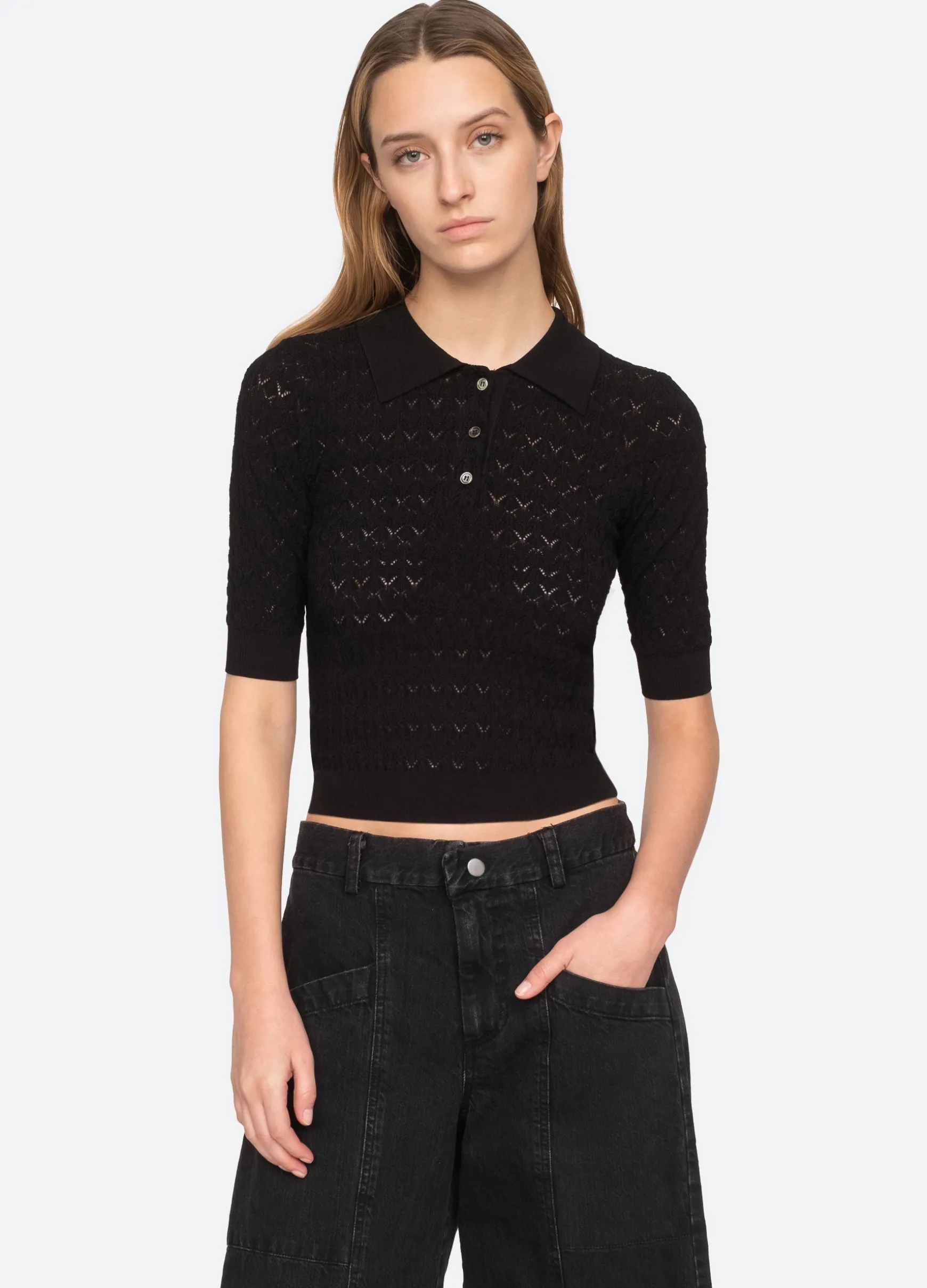The Rue fine gauge knit polo features short sleeves and is crafted for a slim fit.