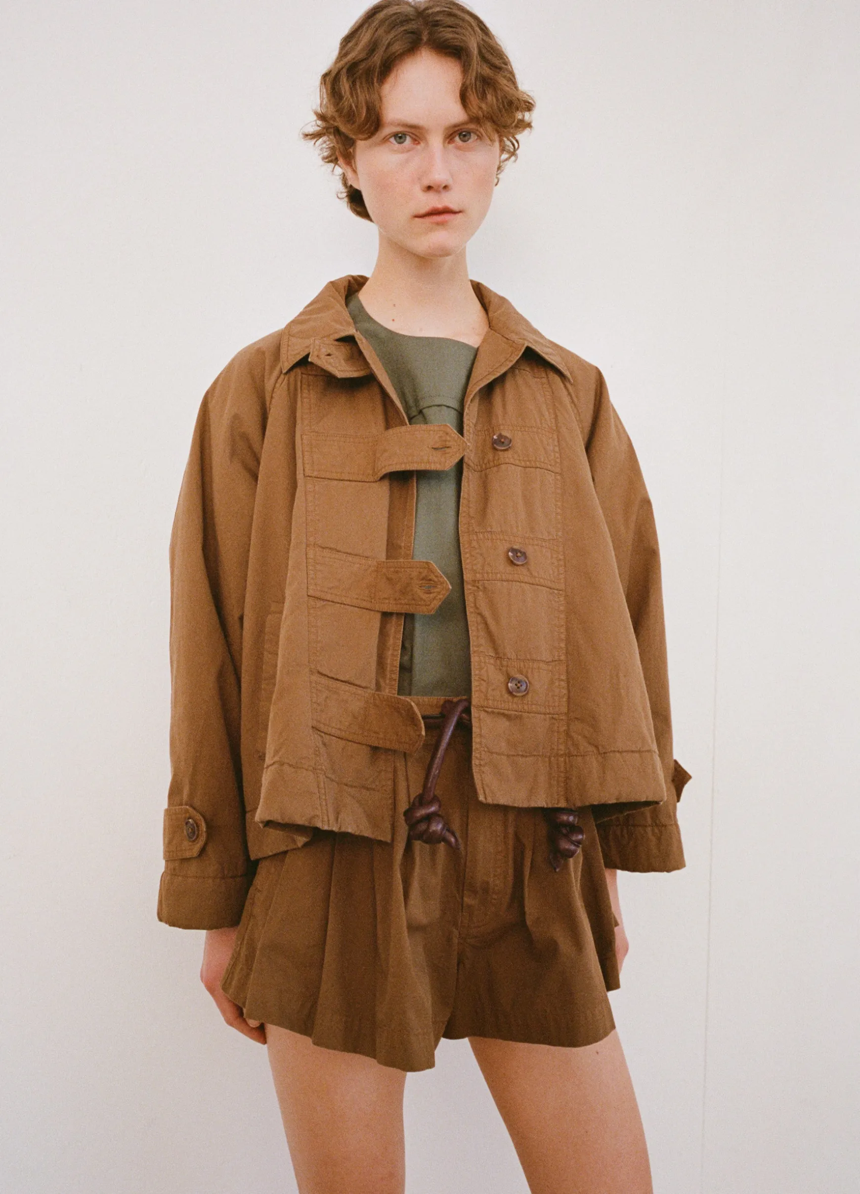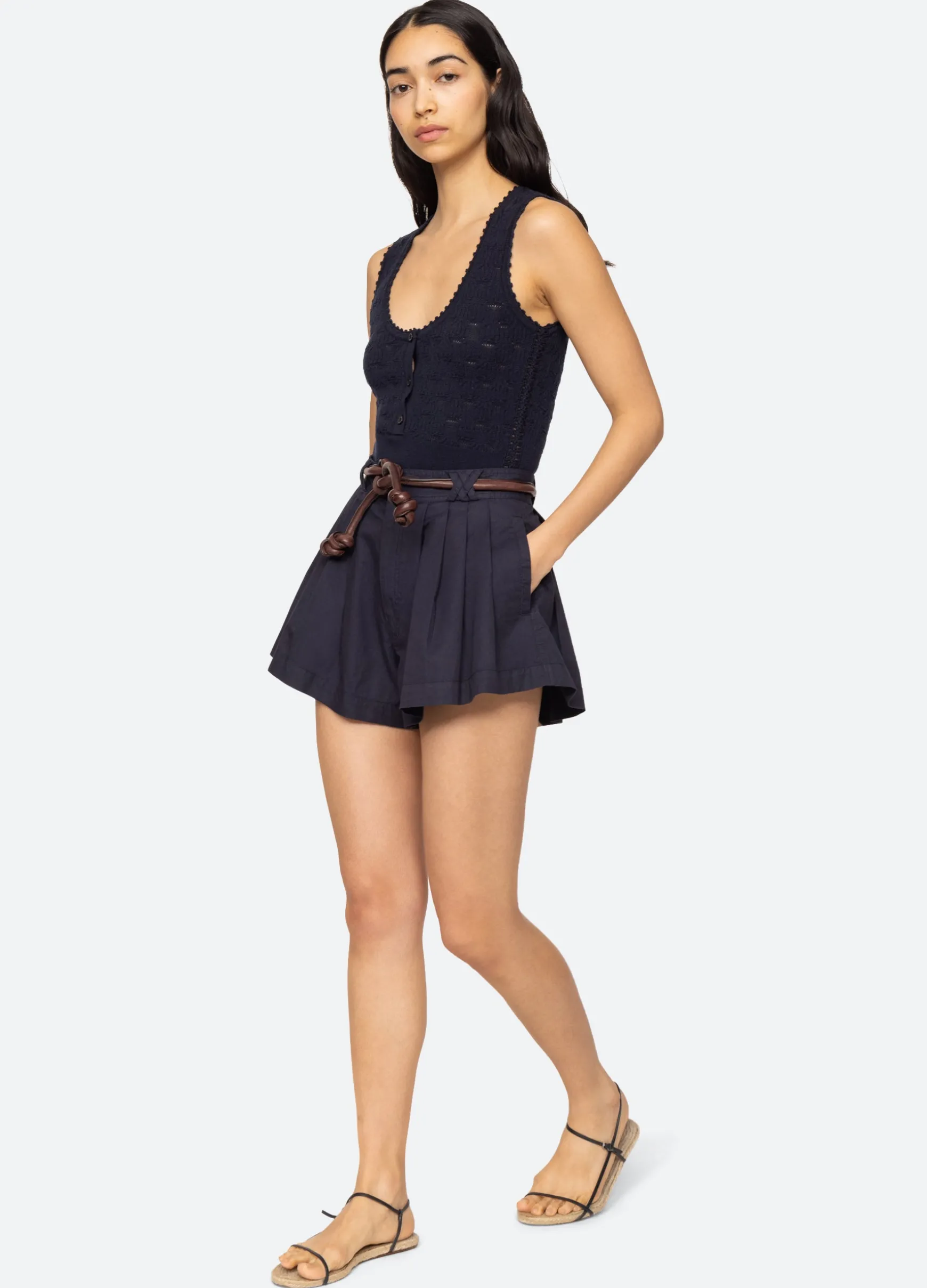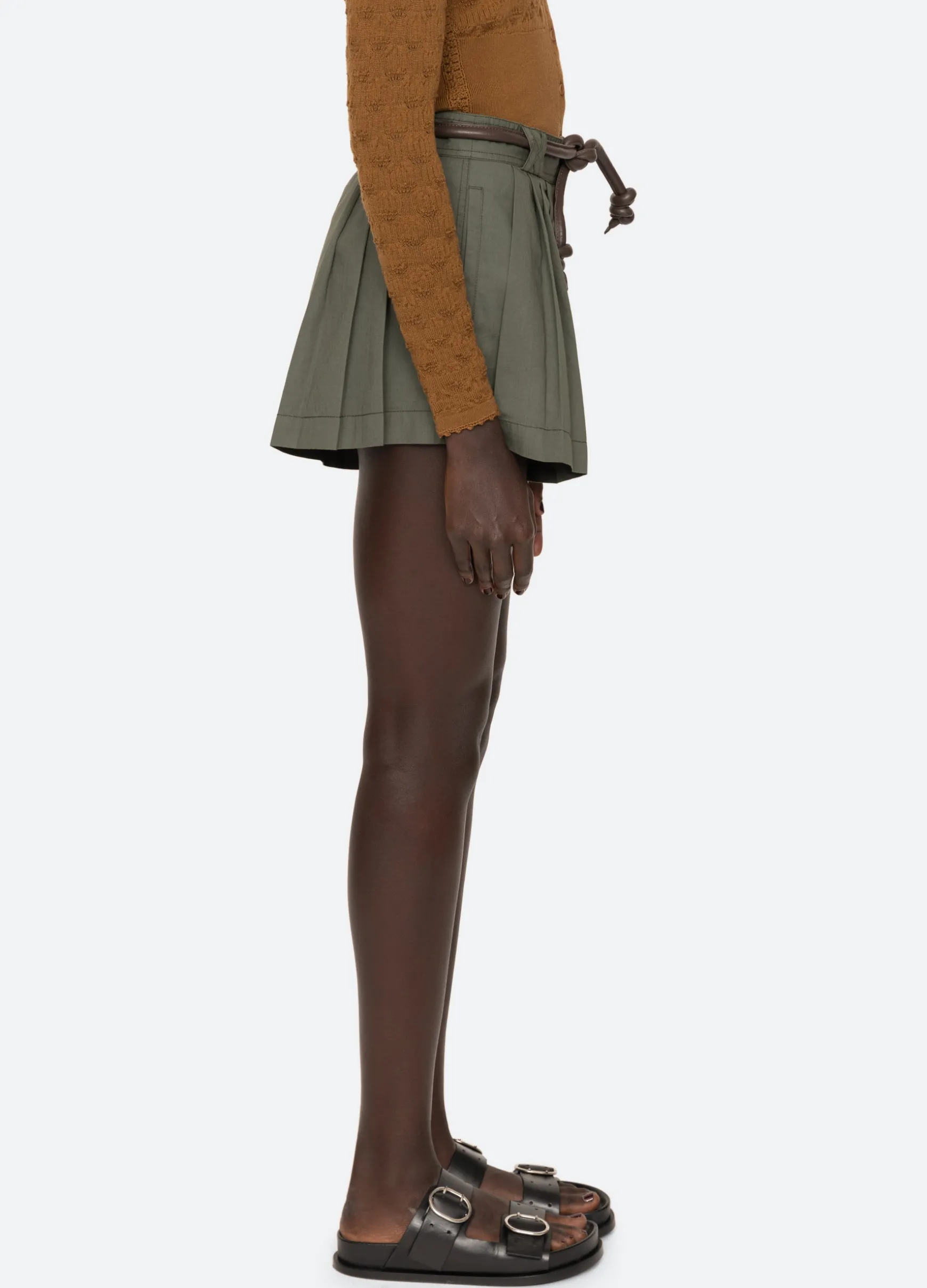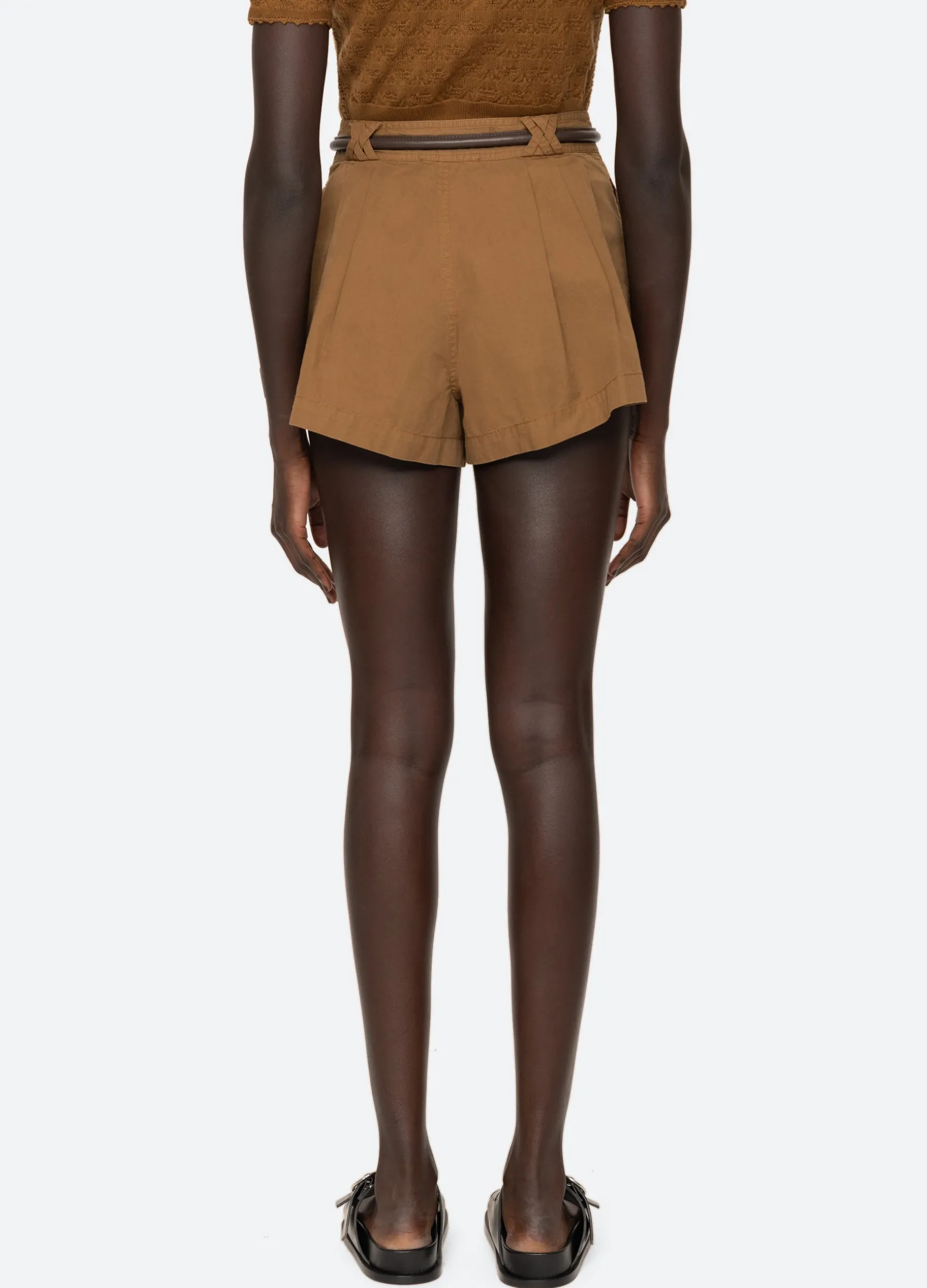 TheSamaka garment dyeshorts feature a high rise fit, pleated detailing and a removable leather belt.