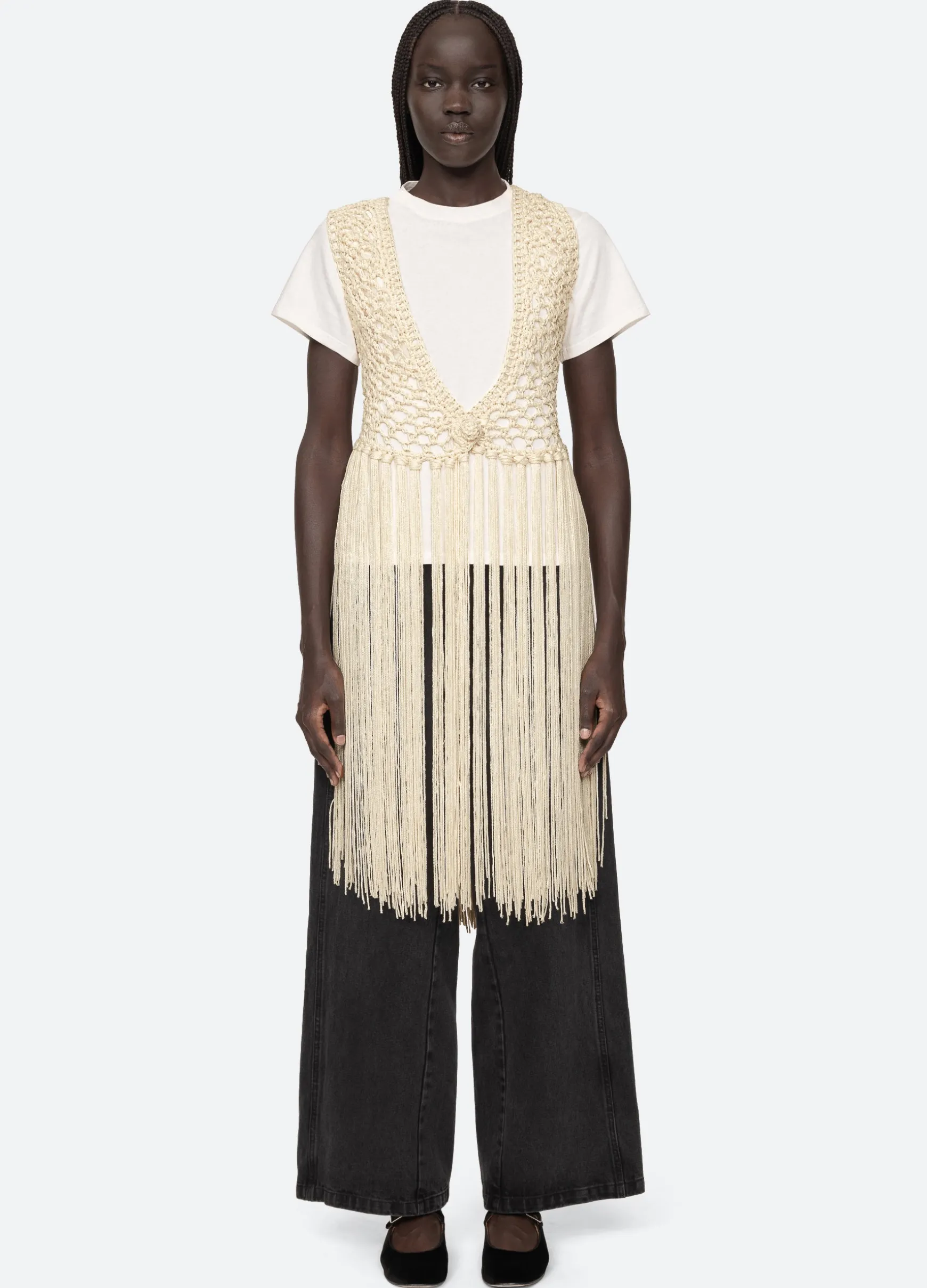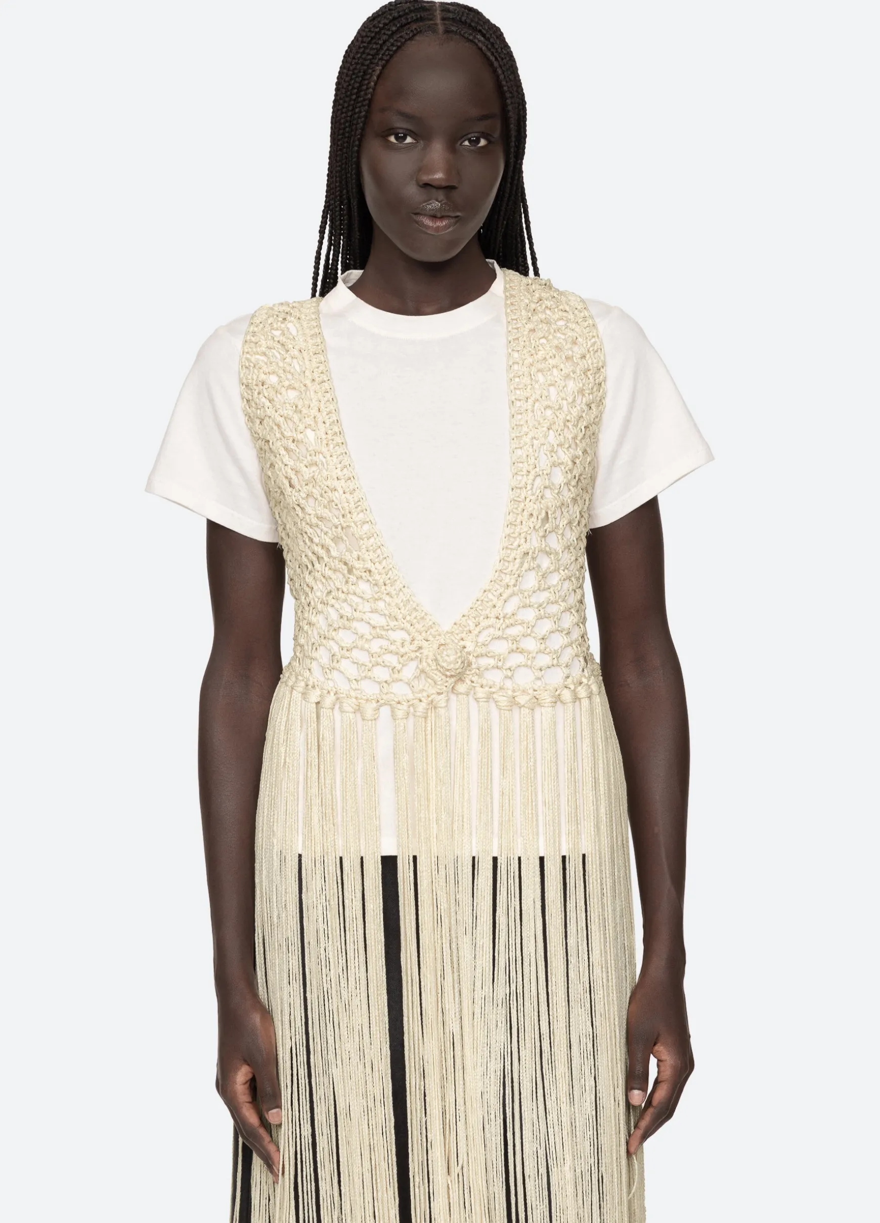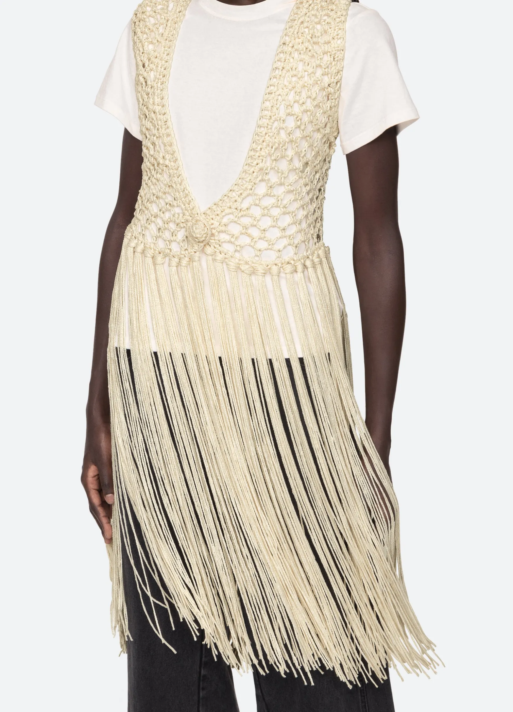 100% polyesterbutton front closuredesigned for a relaxed fitmodel is 5’10” and wearing a size S/MThe Simonne macramé v…