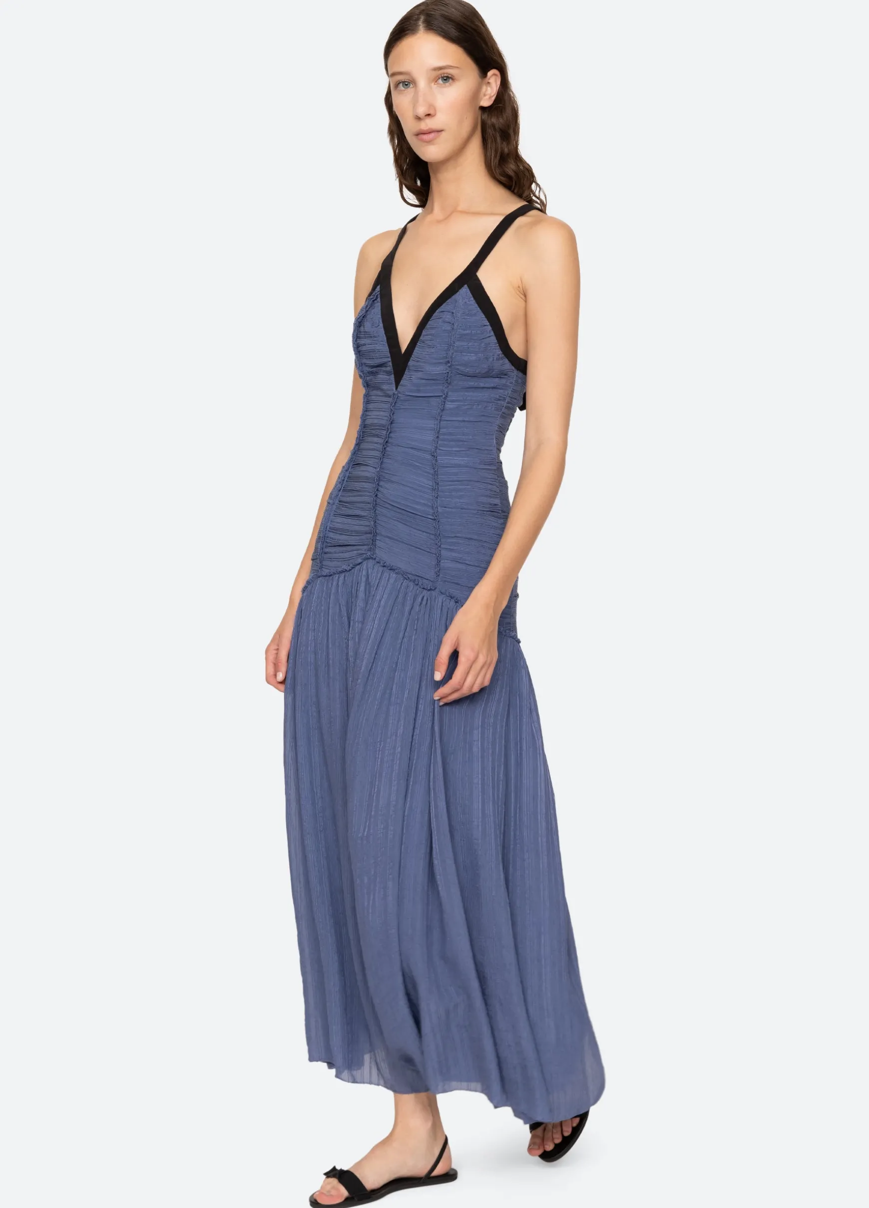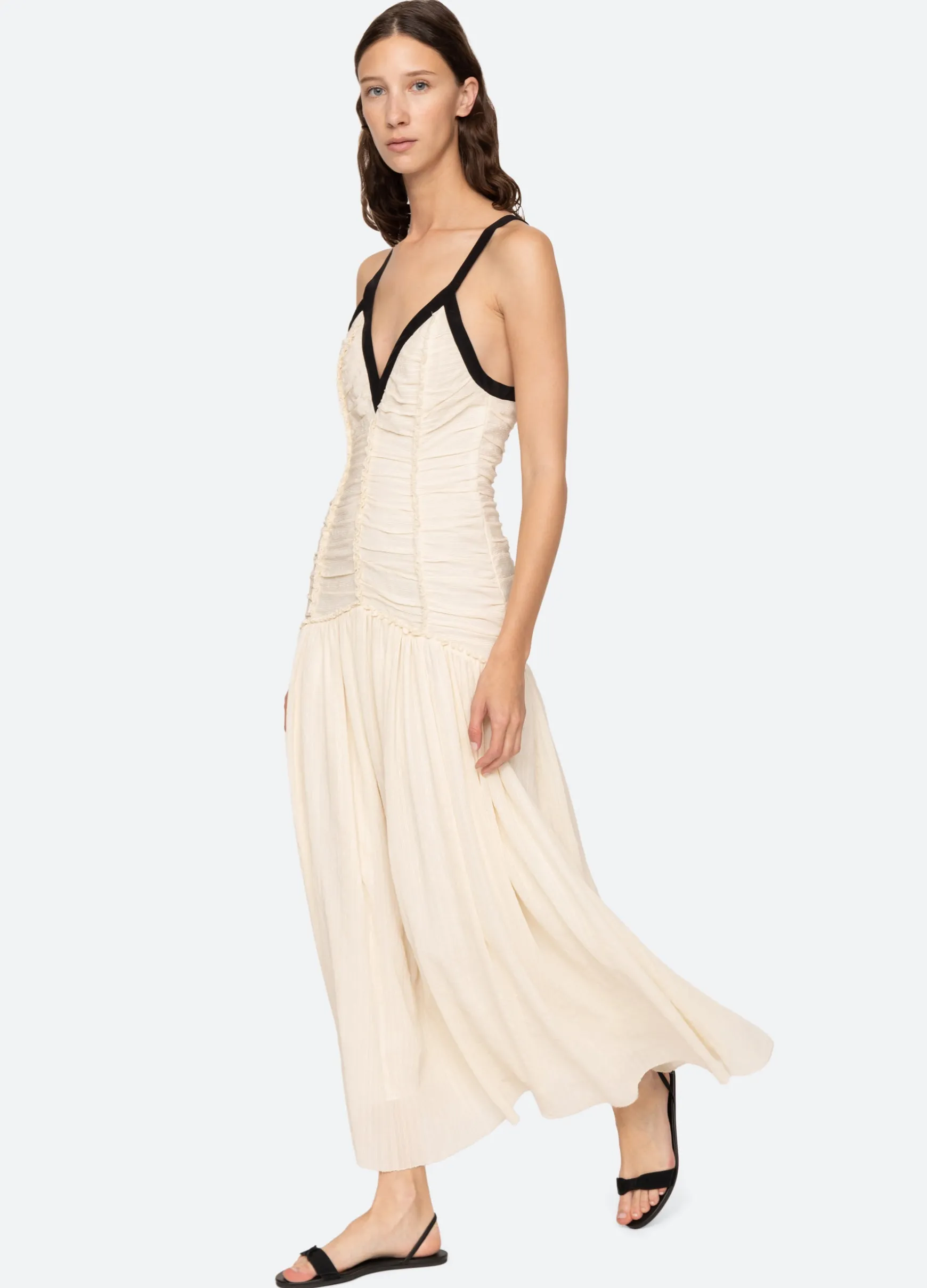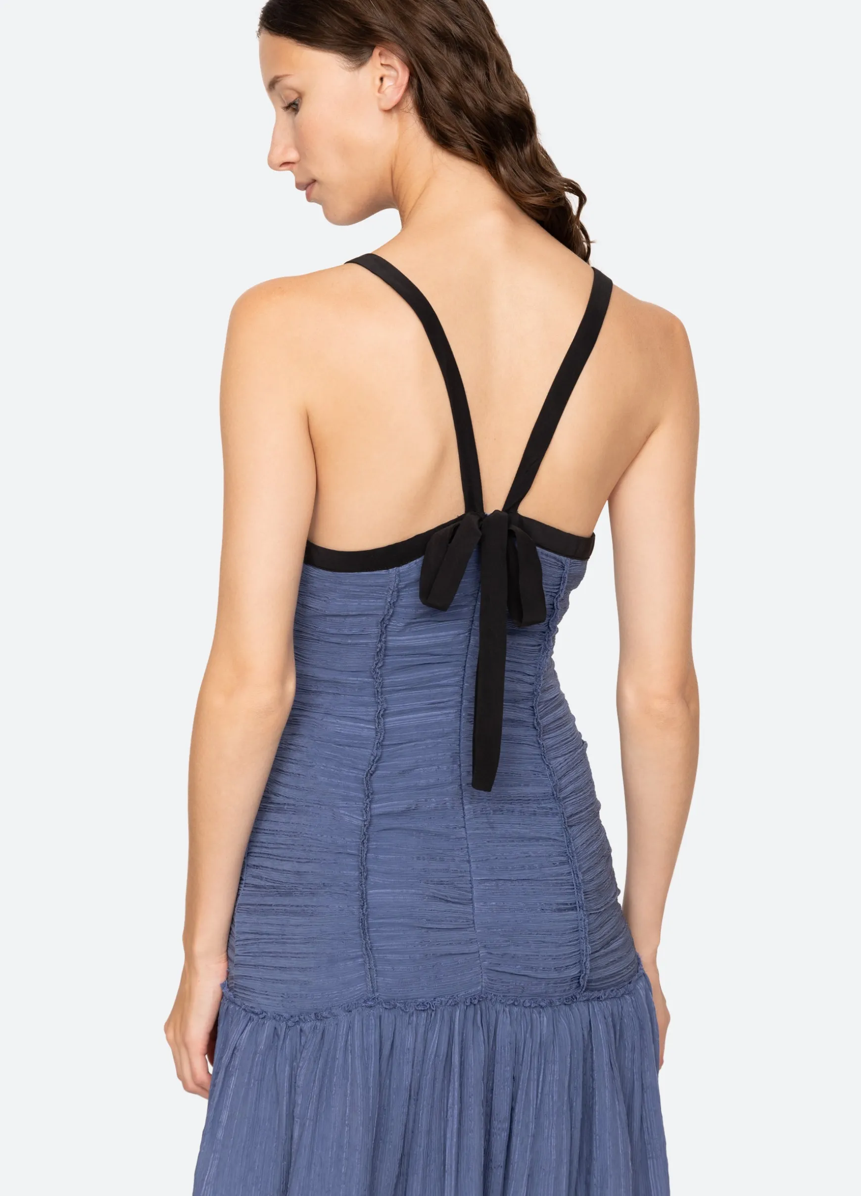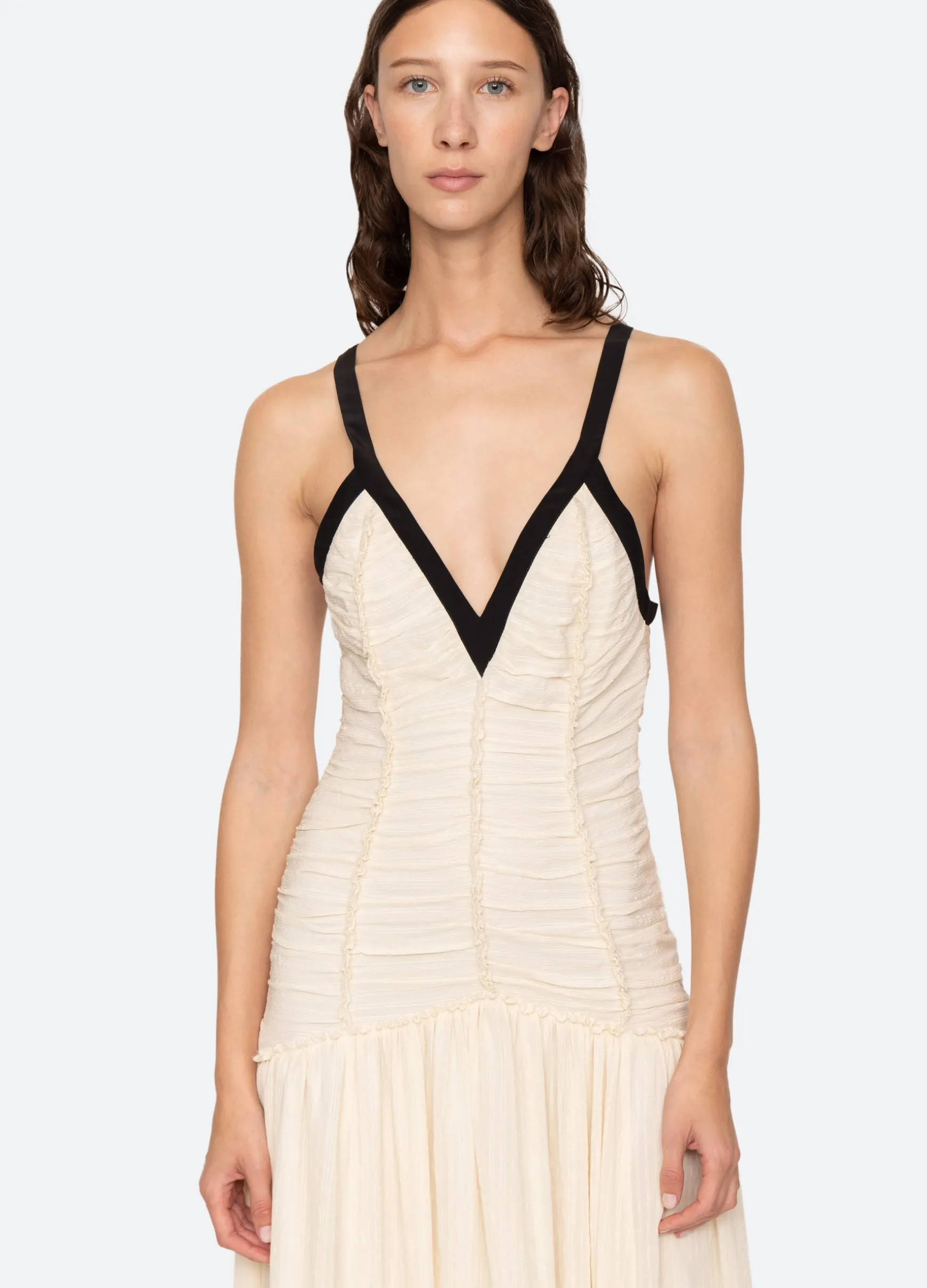 TheTatum dress features a v-neckline, ruchedbodicewithpleating and ruffle detailing.