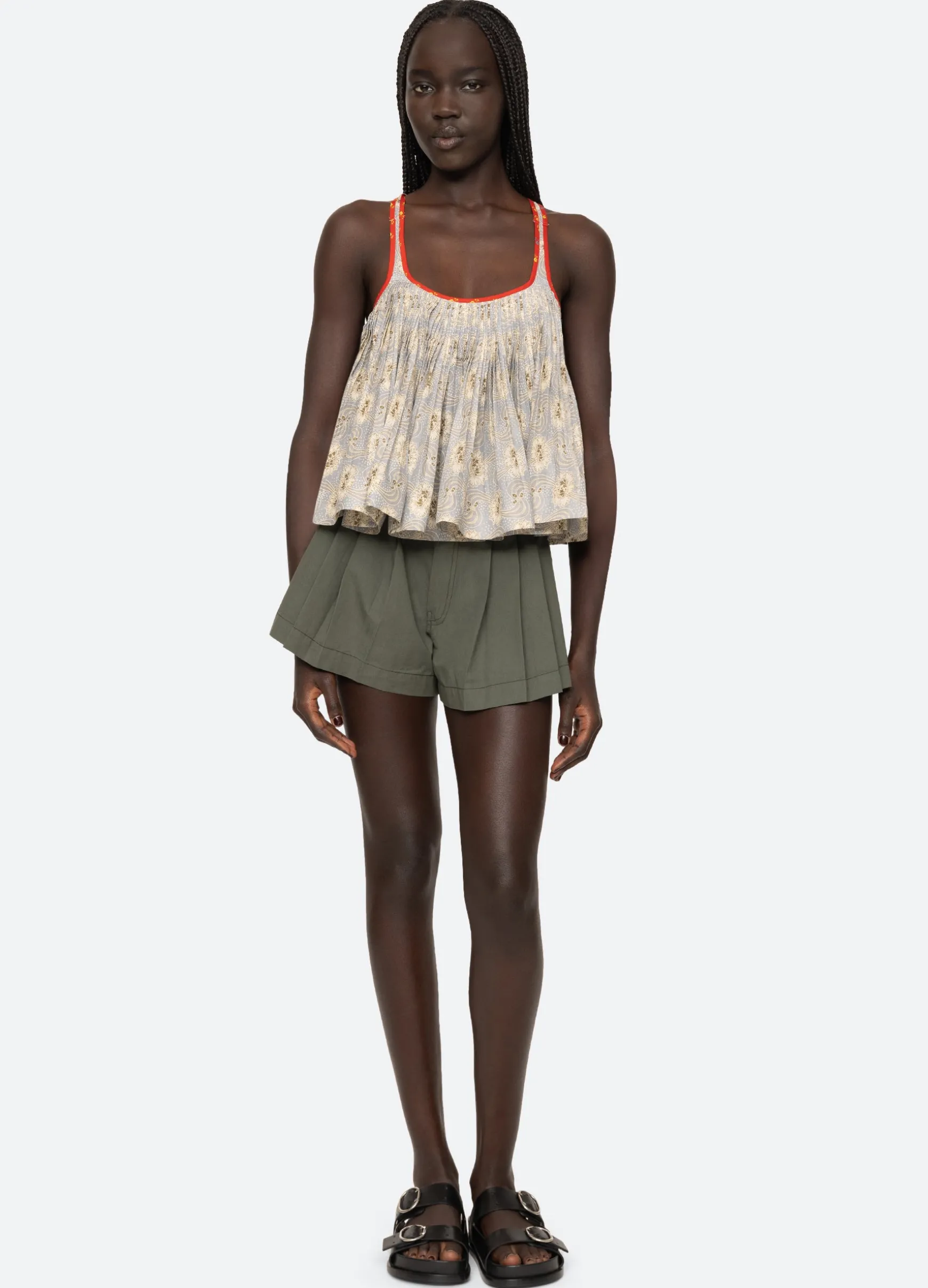 The Tima floral print top featurescontrast trim, pleated detailing andracerback.Designed for an easy, relaxed fit.