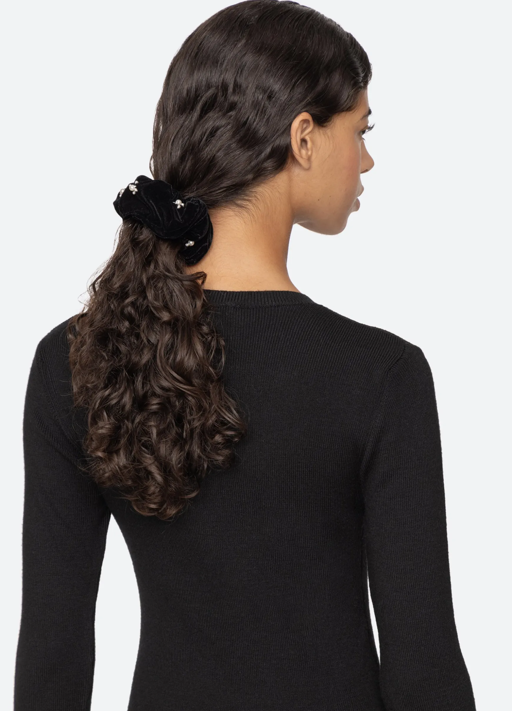 100% polyesterAn online and in store exclusive. The Velvet scrunchie features pearl accents.Details: